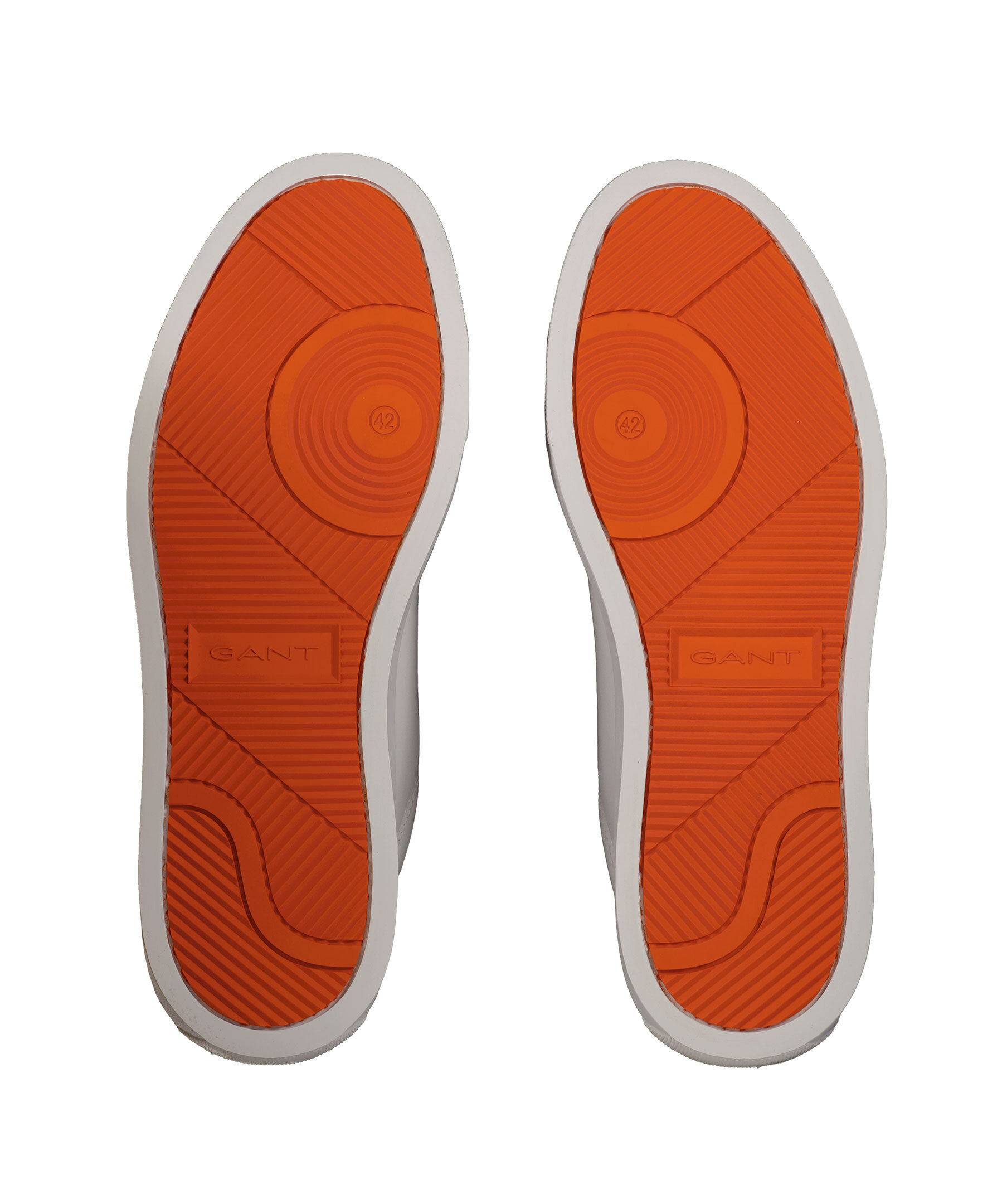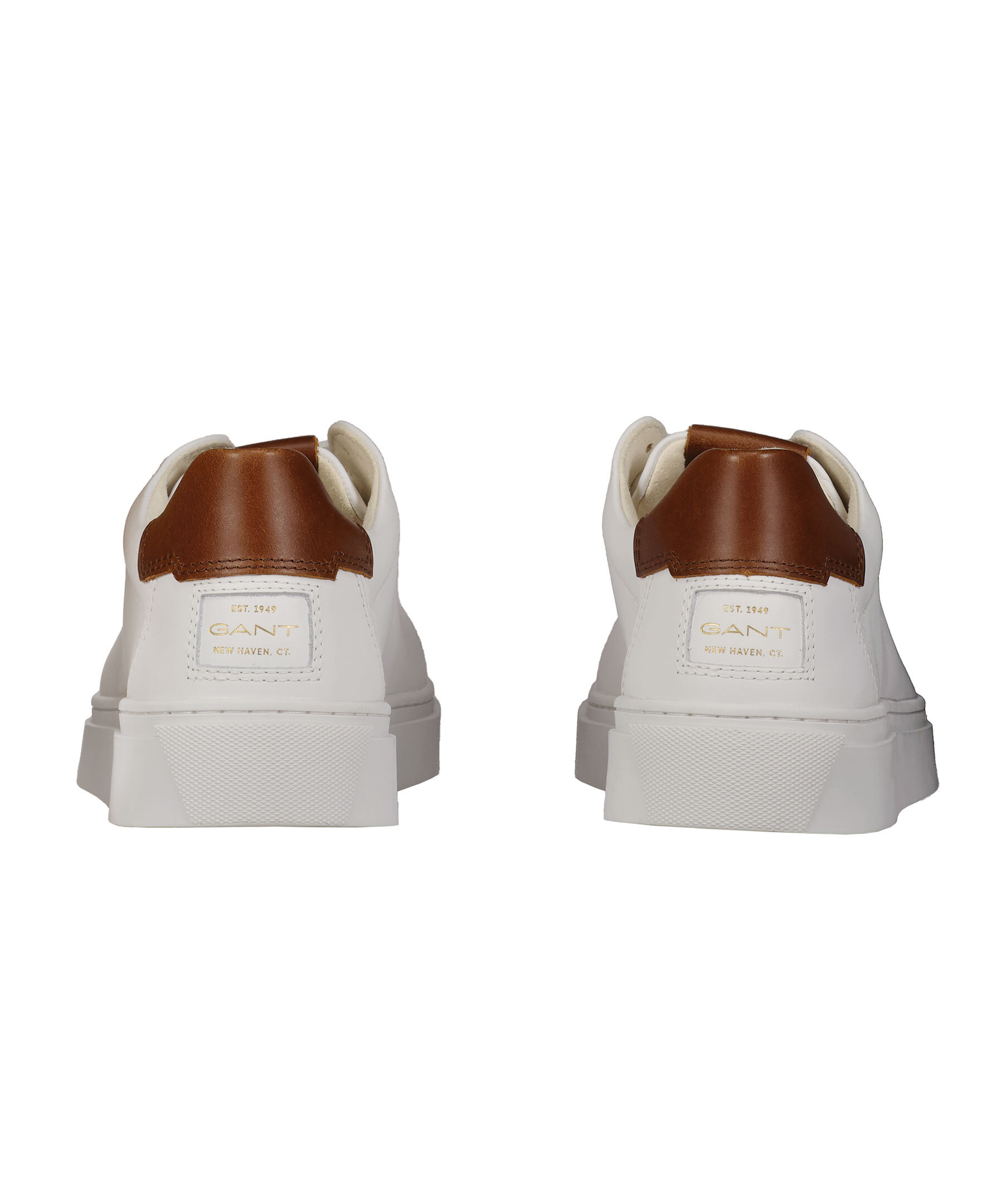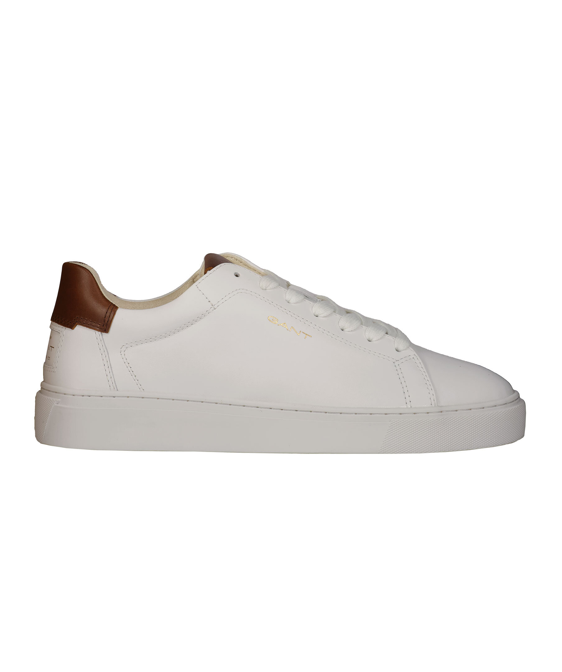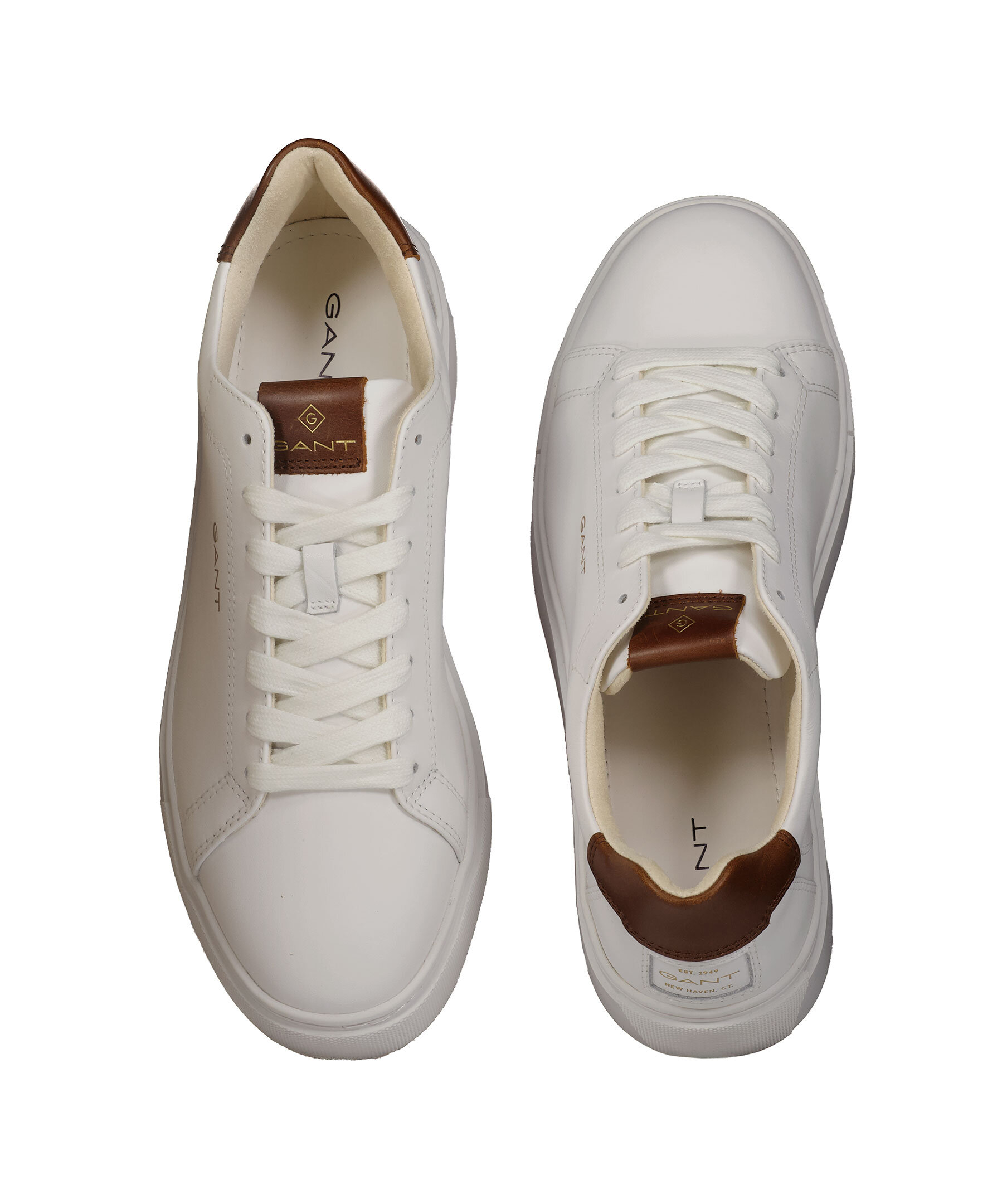 Vita sneakers tillverkade i läder från Gant. Brun patch på plösen samt hälen med logotyp. Vita platta skosnören. Logotyp på utsidan av skon.