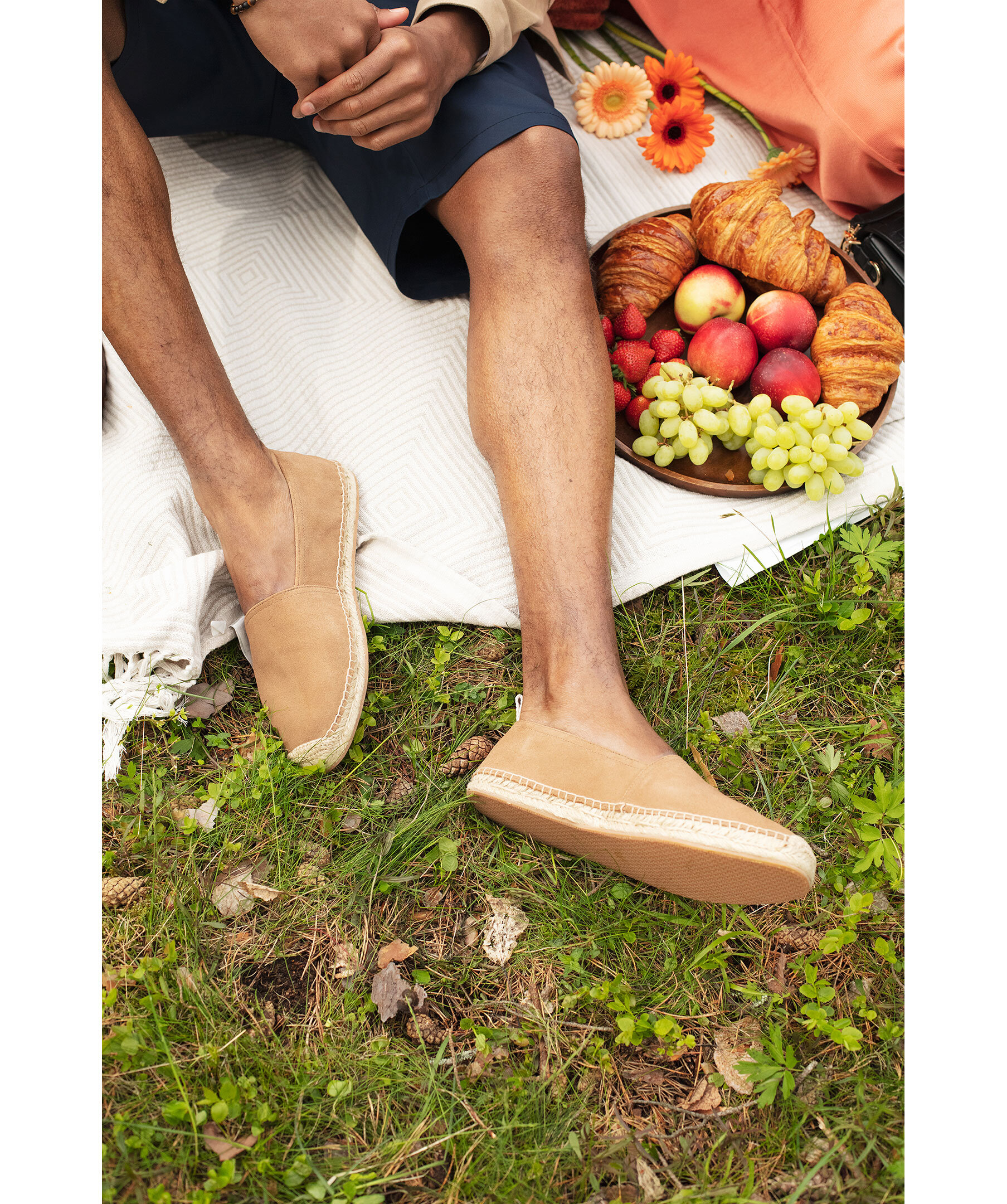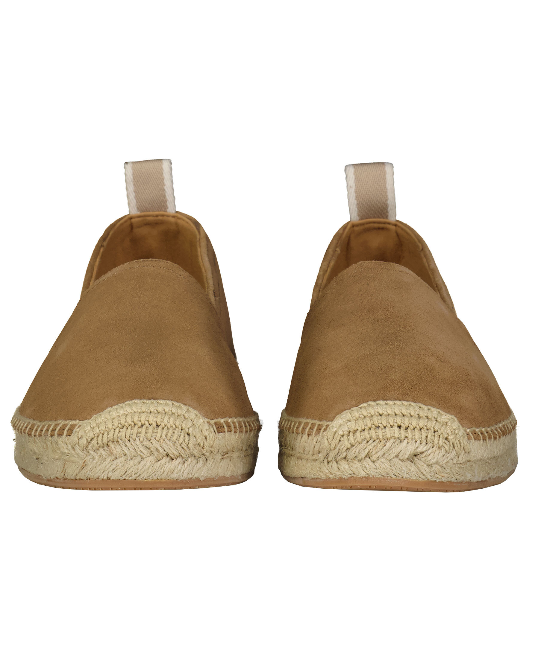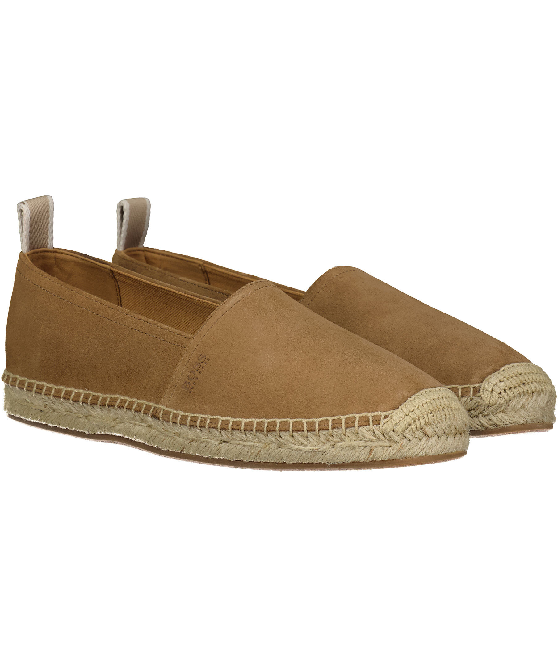 En ny tolkning av traditionella espadriller i färgen beige från Boss Business. Dessa espadriller är tillverkade i mjuk mocka och är detaljerade med en BOSS-logotyp på sidan och monogram på undersidan av gummisulan. Vit och grå ögla i hälen och flätade detaljer på sulorna.