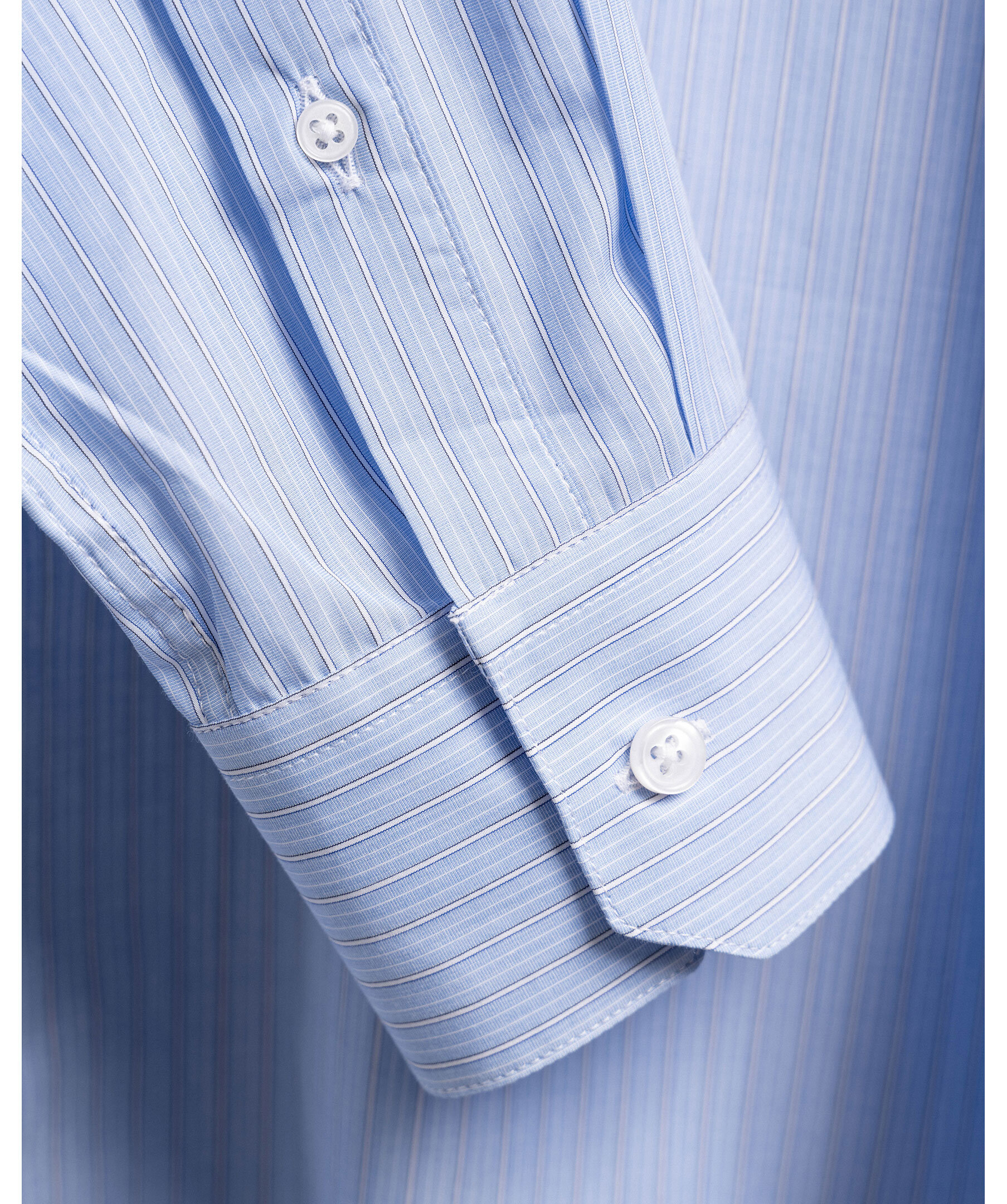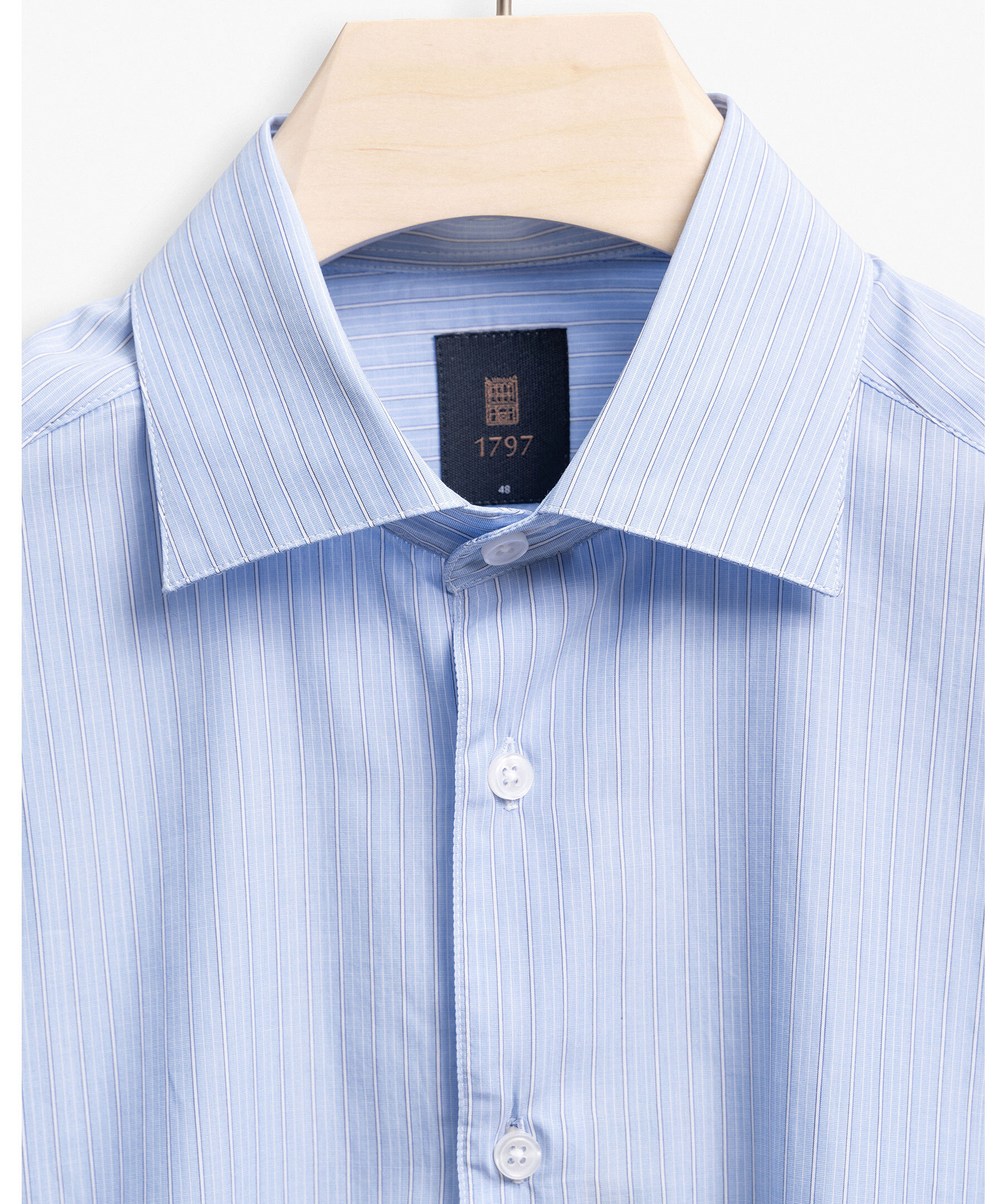 Blå, randig skjorta från varumärket 1797. Skjortan stängs med knappar framtill och har en cut-away krage. Tillverkad i 100% bomull.