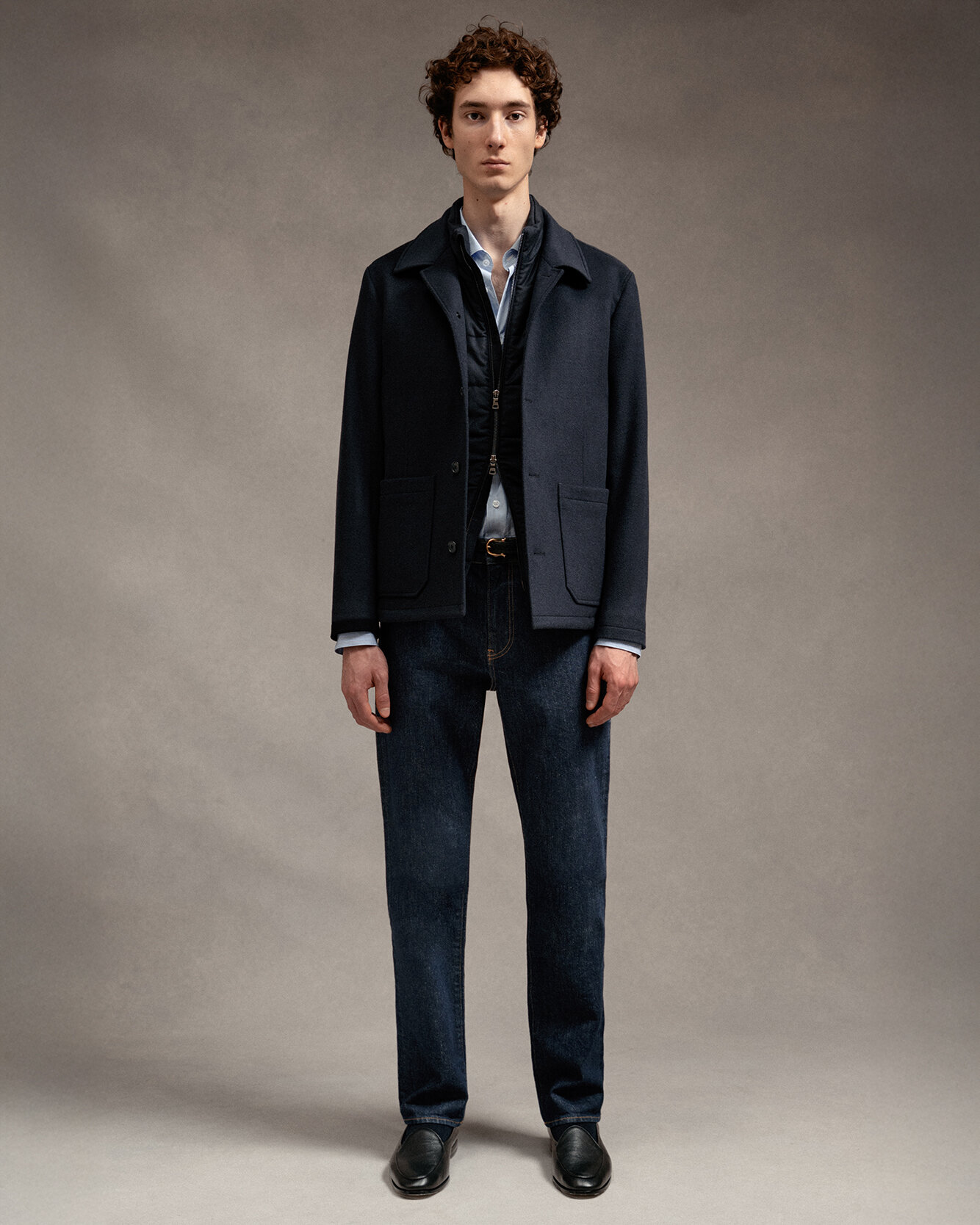 Mörkblå overshirt från varumärket 1797. Overshirten stängs med knappar framtill och har en öppen krage samt två påsydda fickor. Tillverkad i en mjuk ullkashmirblandning.