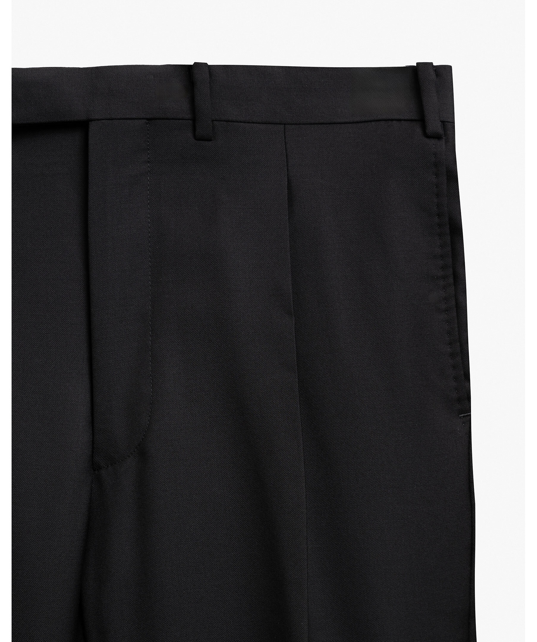 Svarta kostymbyxor från varumärket 1797. Byxorna har bälteshällor i midjan, två sidfickor, två passpoalfickor baktill med knapp samt pressveck. Tillverkade i 100% ull med foder i polyeten. Matcha med Darnell kavajen.