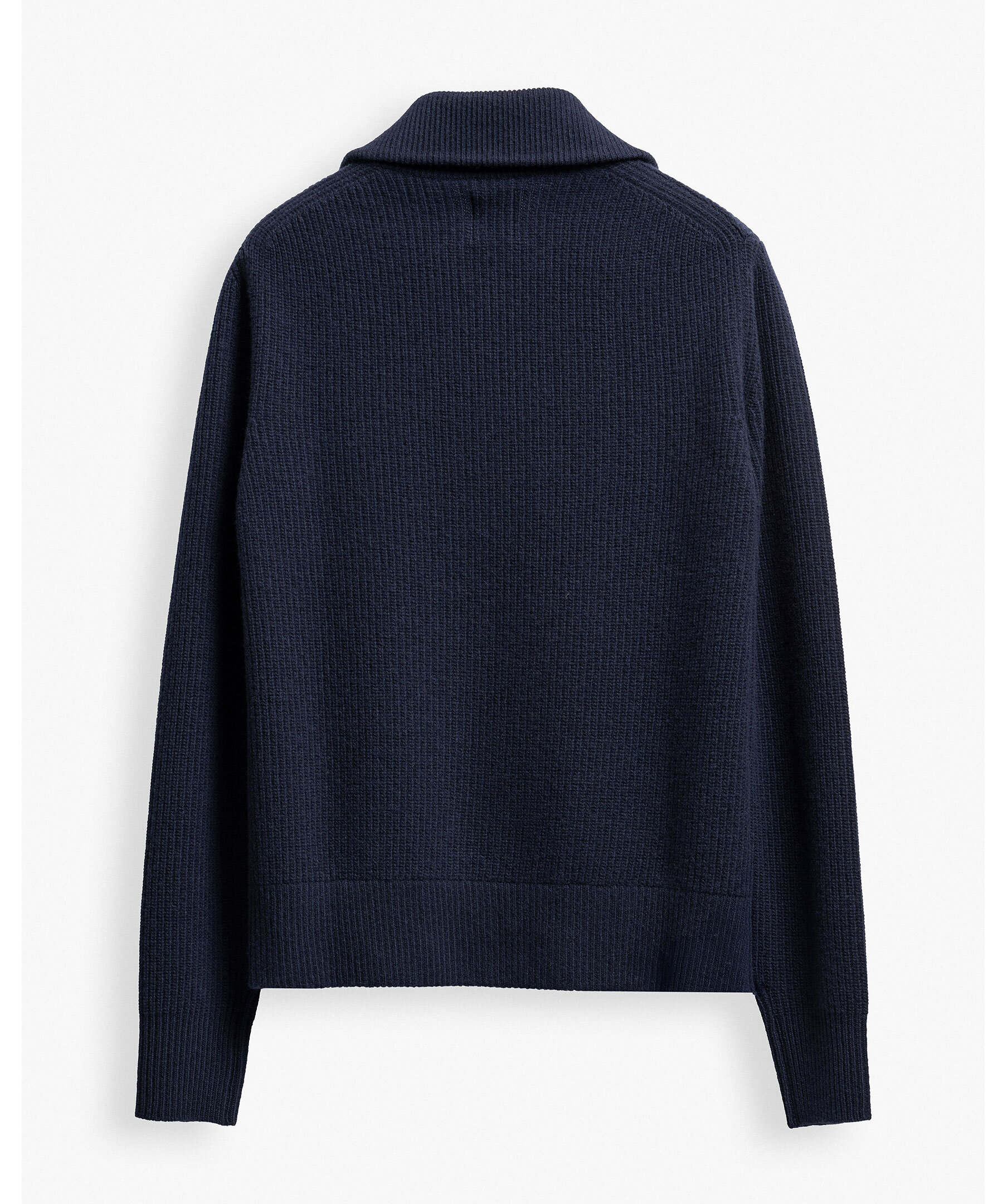 Marinblå ribbstickad zip-tröja från varumärket 1797. Tillverkad i en mjuk och exklusiv italiensk merinoull . Denna eleganta och mångsidiga cardigan har en stilren ståkrage och är utrustad med tvåvägsdragkedja för optimal komfort och funktion.