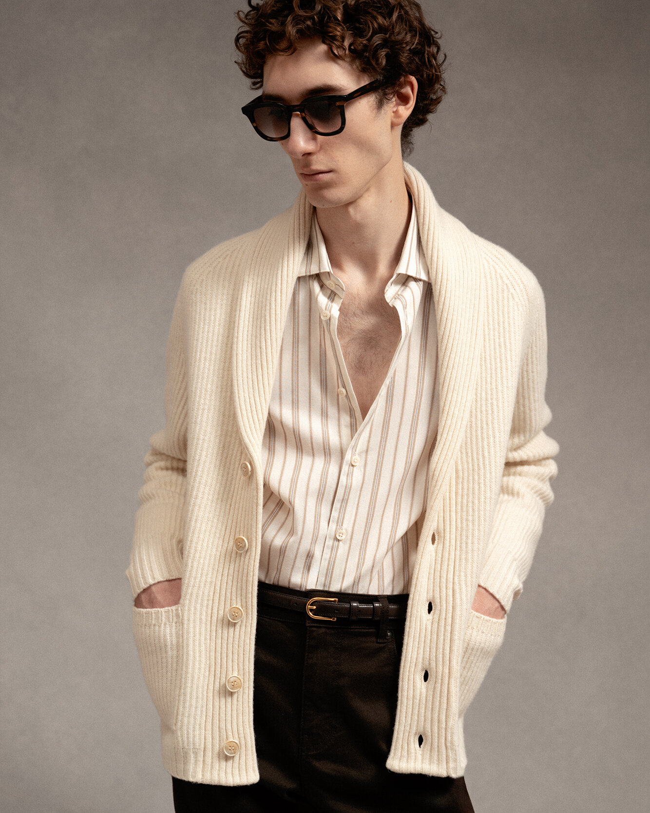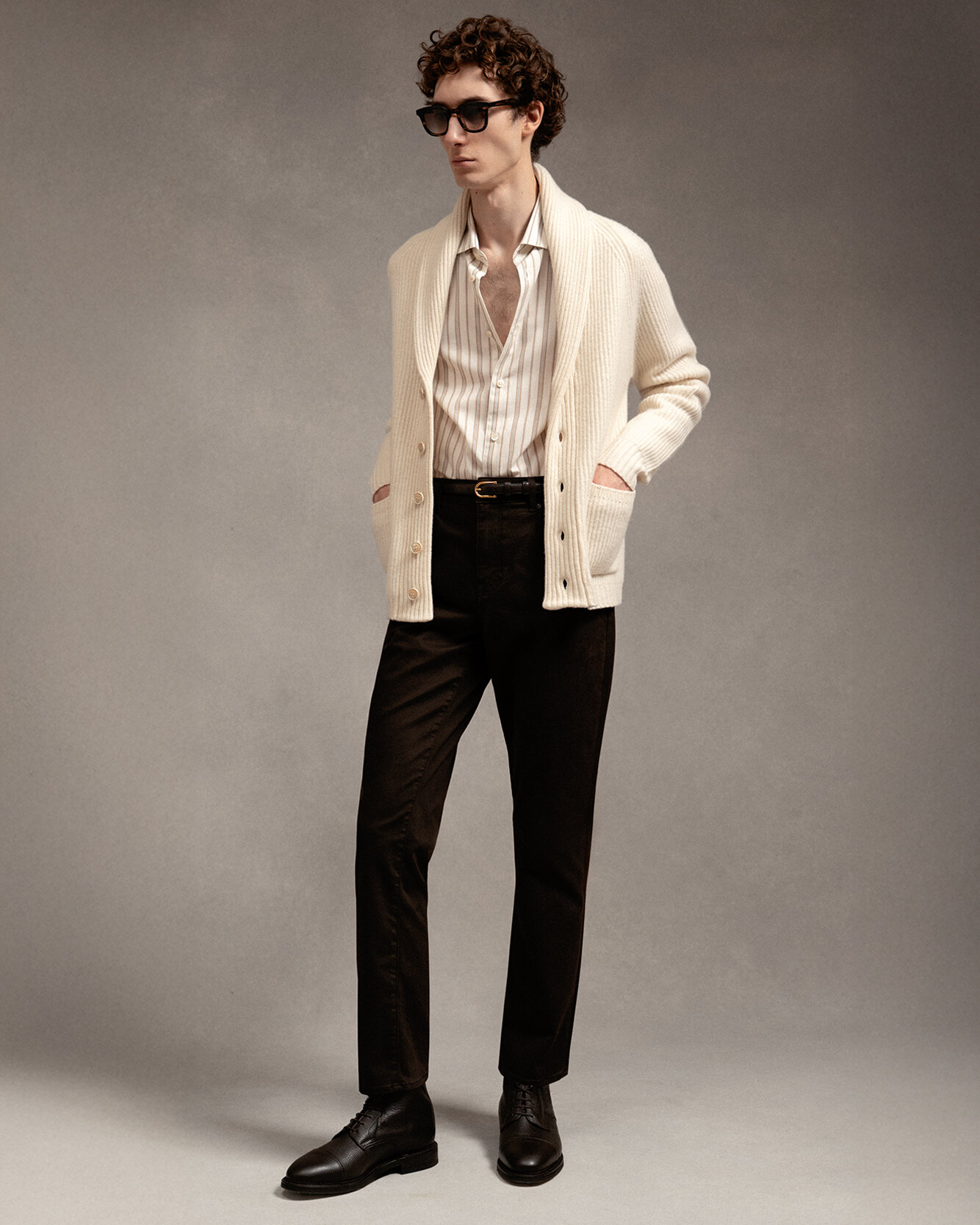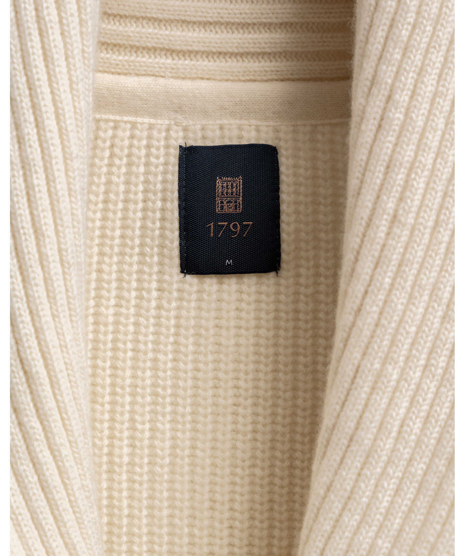 Lyxig cardigan med sjalkrage från varumärket 1797. Tröjan är gjord i ett högkvalitativt italienskt garn med extra mjuk känsla. Ribbstickad struktur och stängs med knappar framtill.