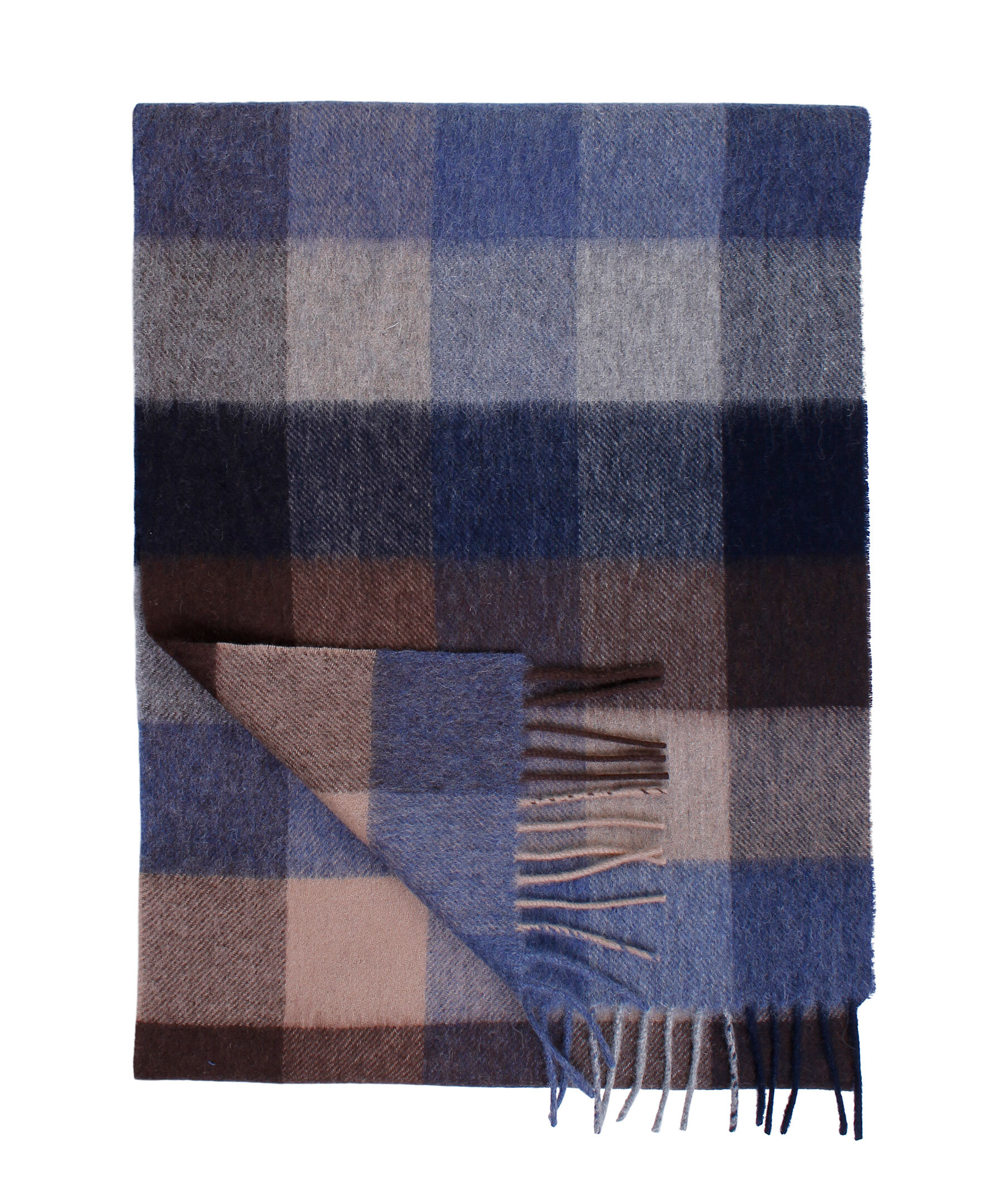 Multifärgad, rutig halsduk med fransar från Amanda Christensen. Tillverkad i ull. Mått: 180x30cm.