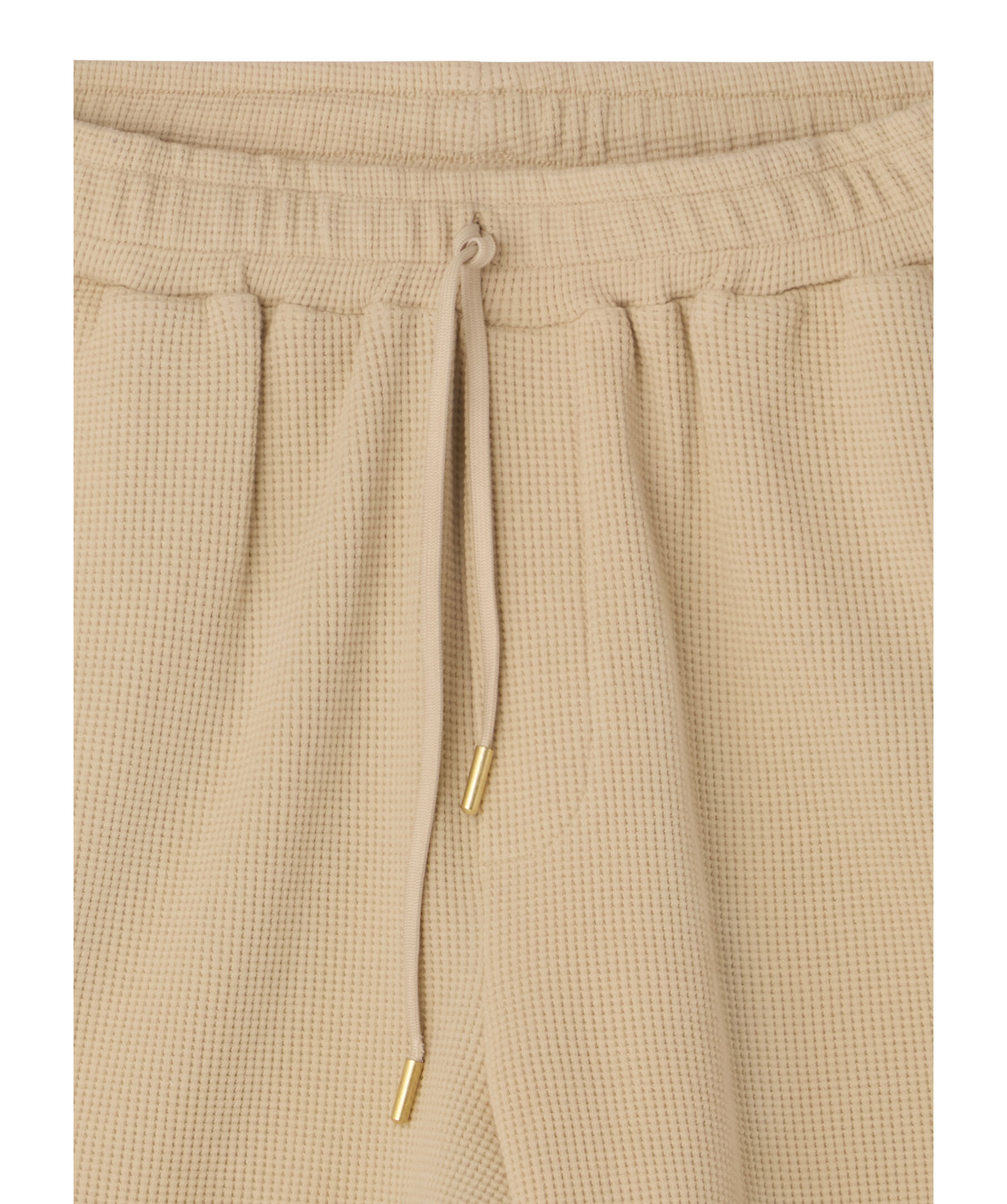 Beigea shorts med våffelstruktur från Aveny. Shortsen har ett elastiskt midjeband med dragsko och praktiska sidfickor. Subtilt broderad logotyp i nederkant. Tillverkade i 100 % ekologisk bomull.