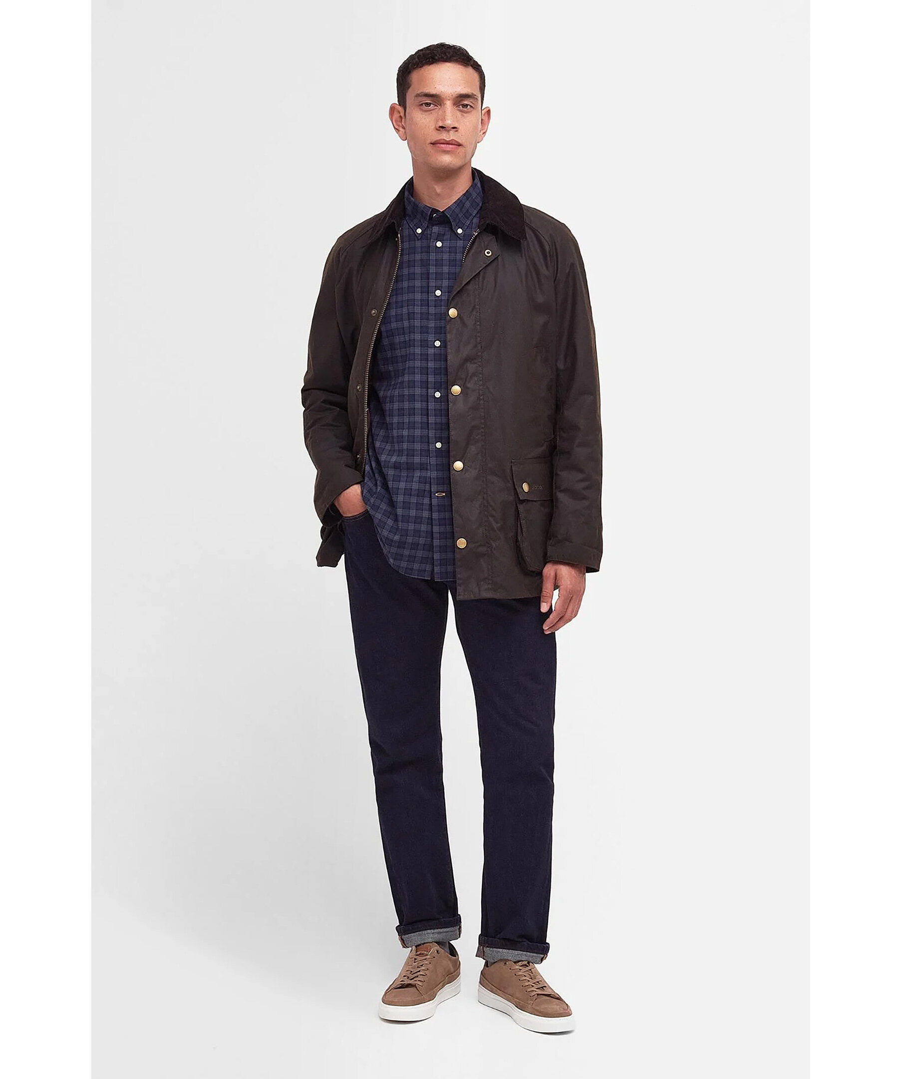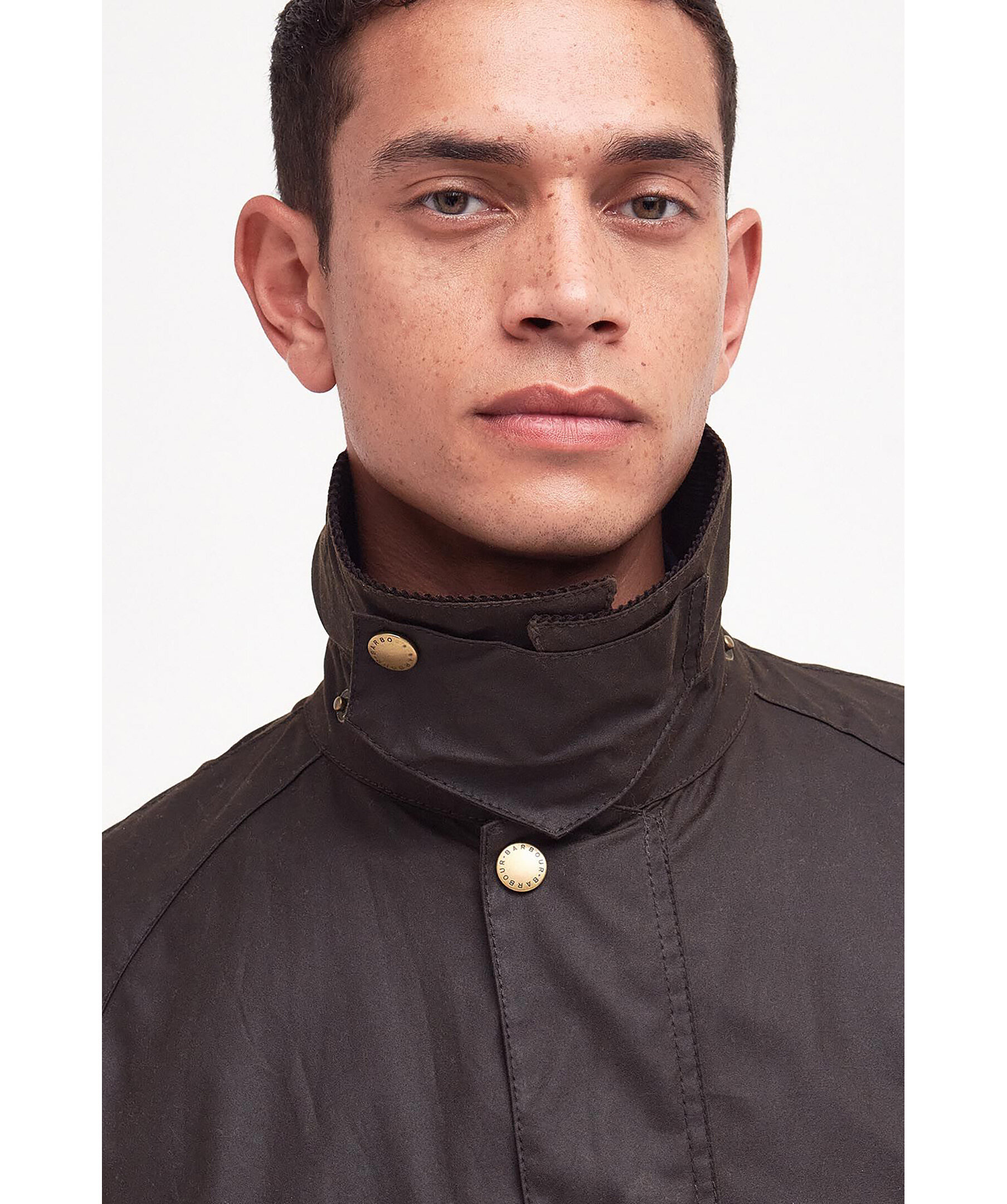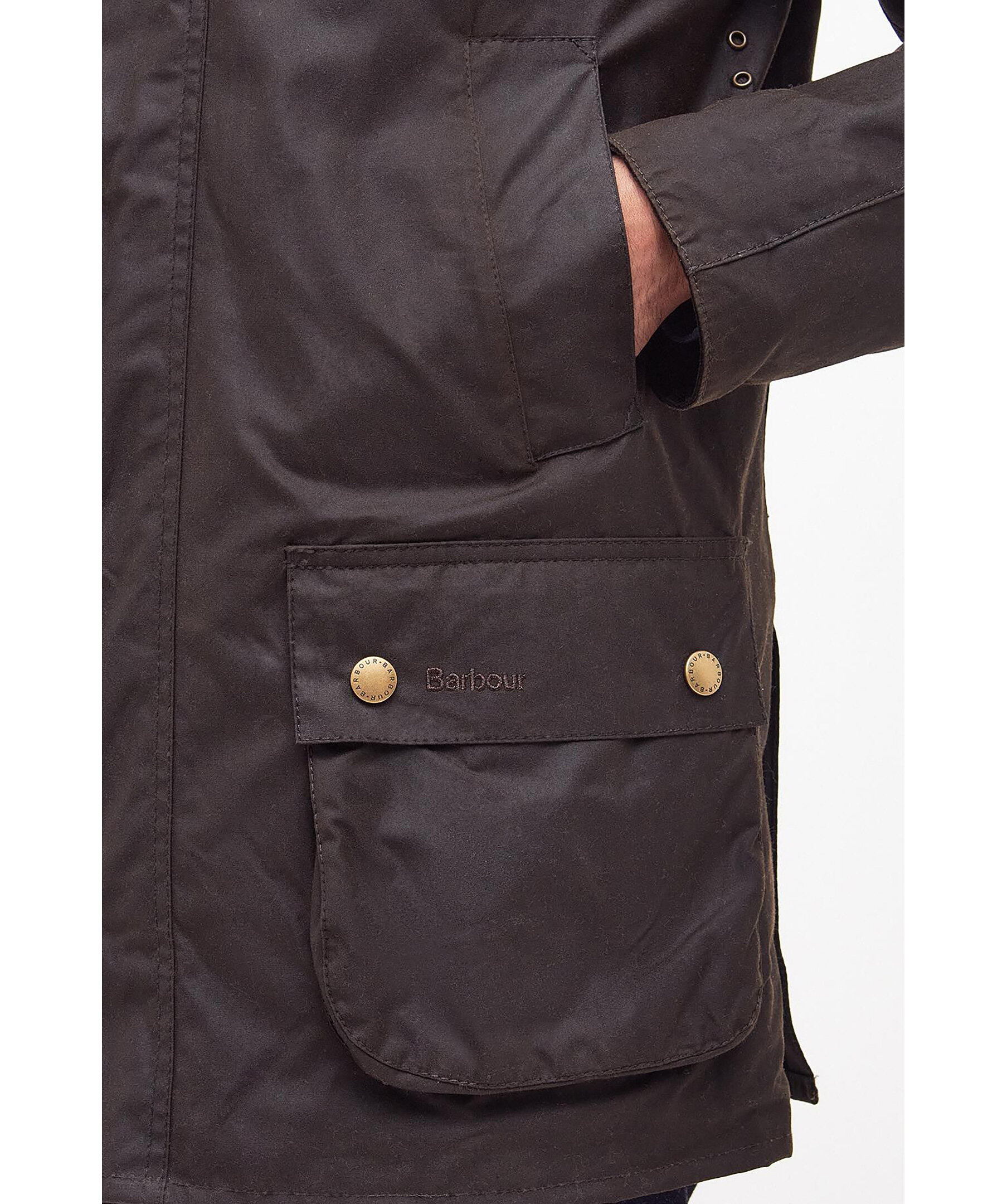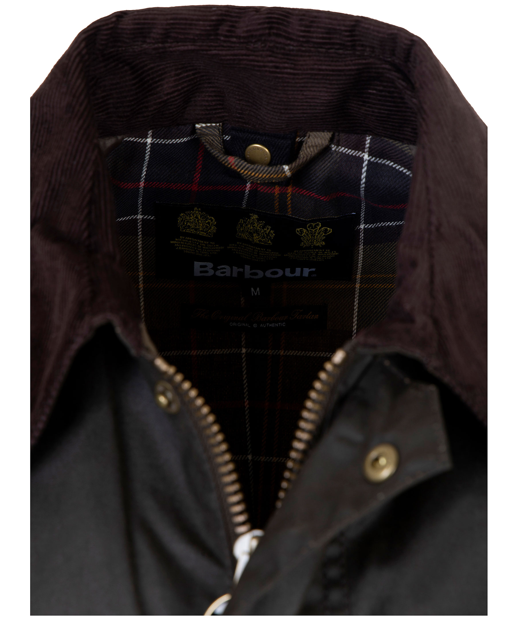 Klassisk oljerock med fyra framfickor och en innerfickan stängs med dubbel dragkedja samt tryckknappar. Kragen och detaljer på insidan i manchester, från Barbour.