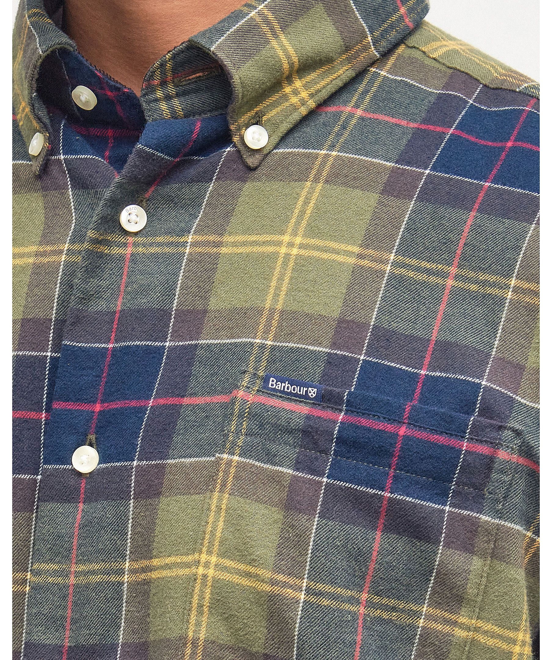 Grön, rutig skjorta från Barbour. Skjortan har button down krage, bröstficka med liten logotyp i tyg, samt vita knappar fram och i ärmslut. Tillverkad i mjuk bomull.