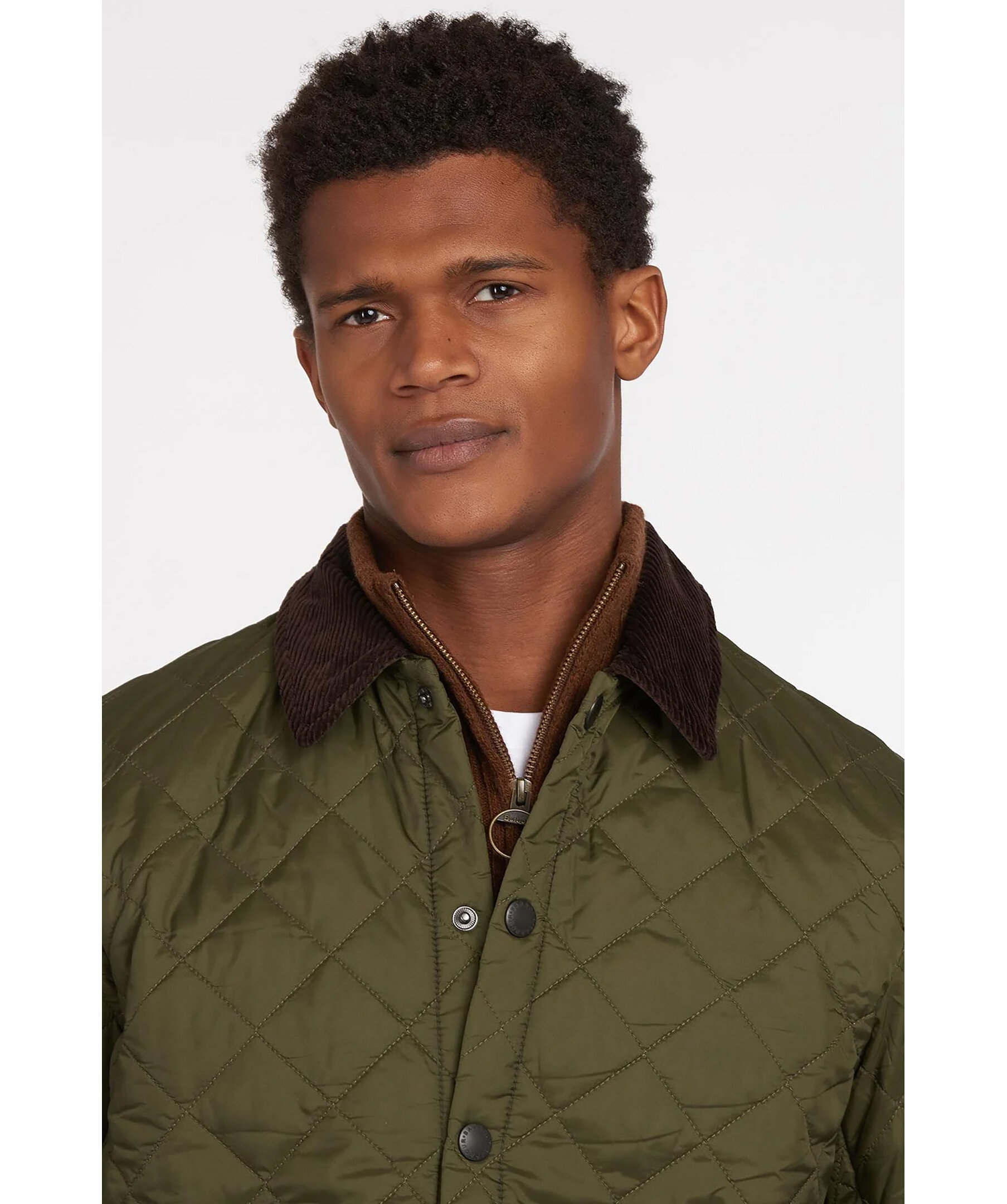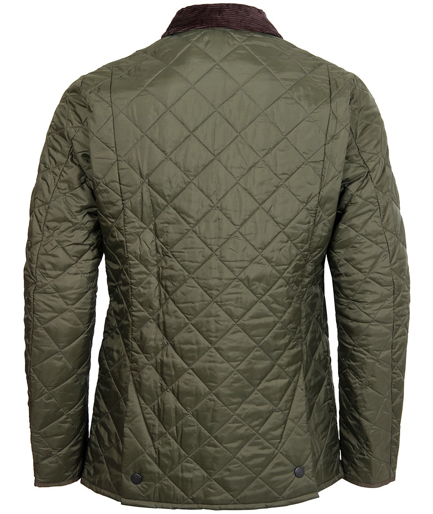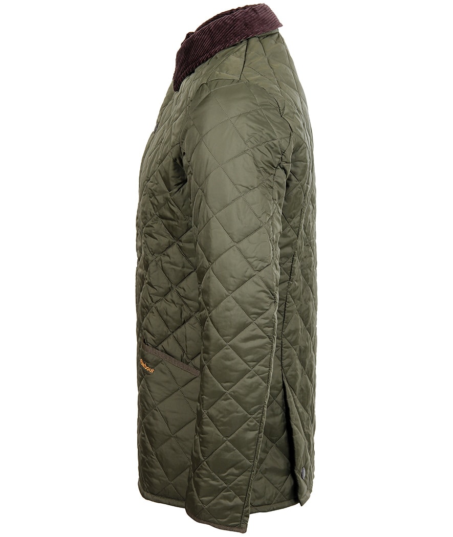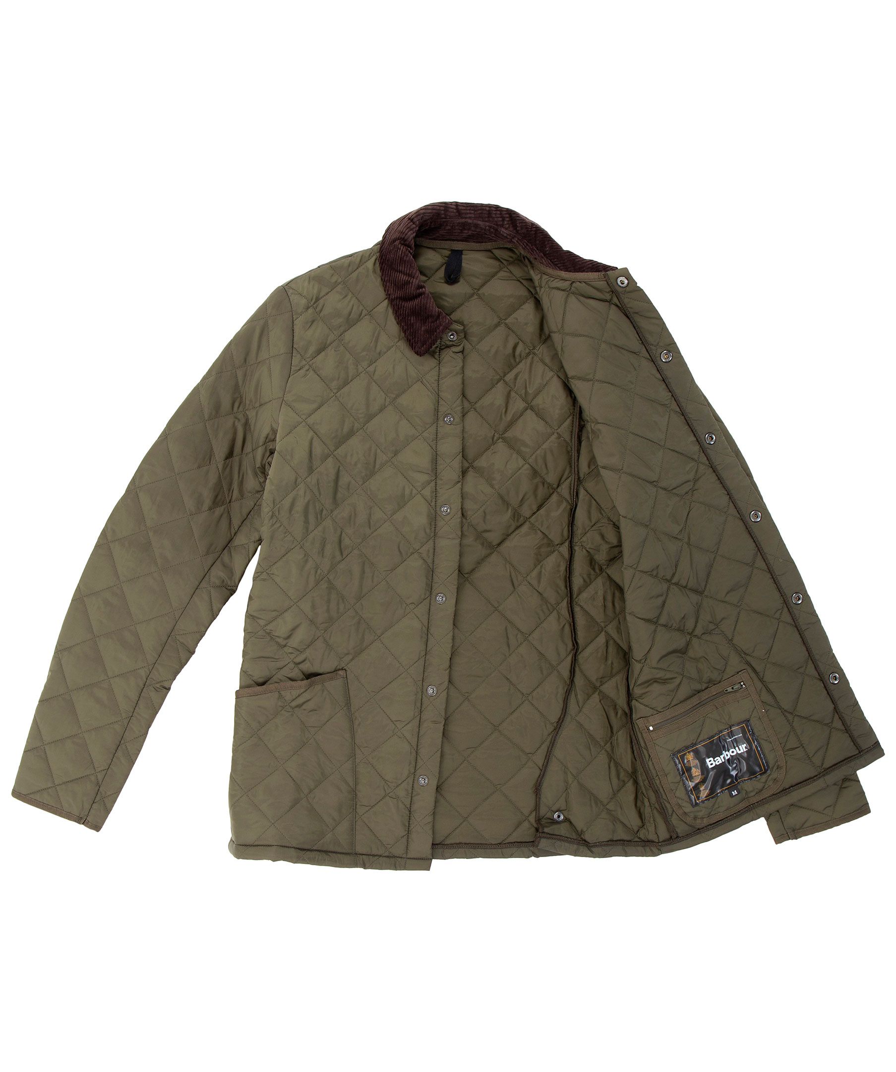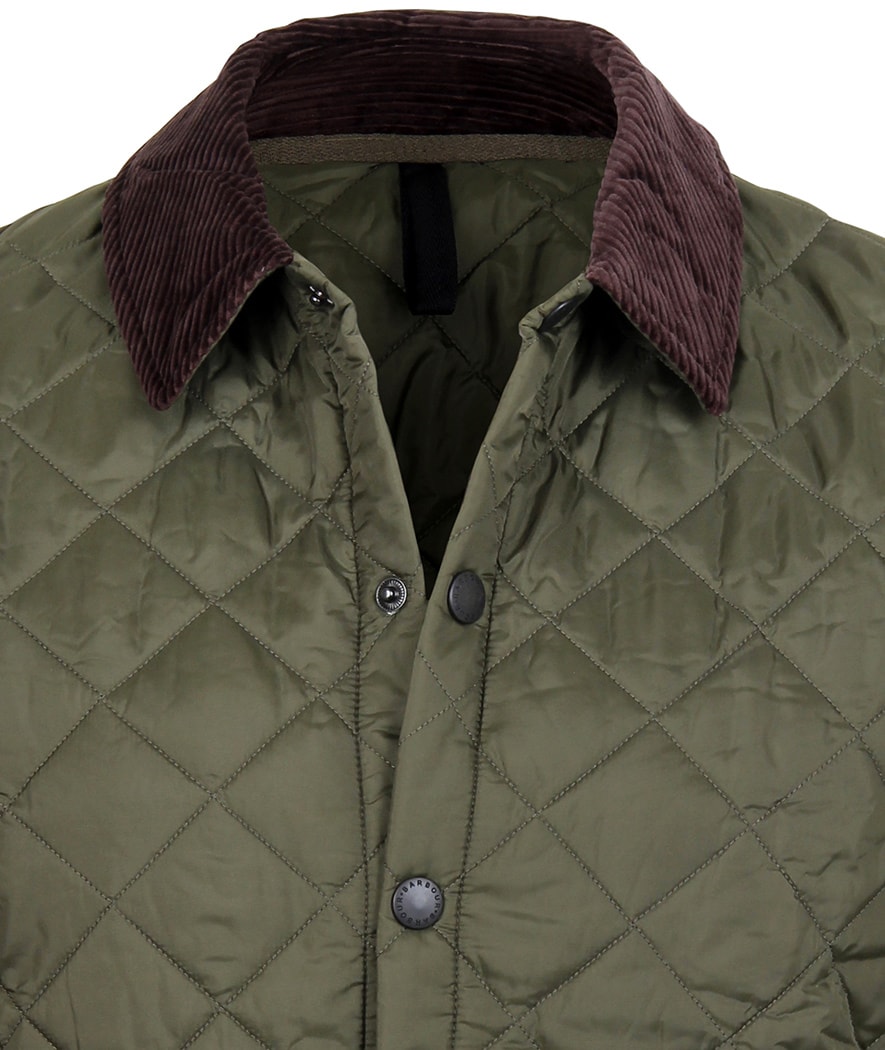 Skogsgrön quiltad jacka från Barbour. Jackan har två ytterfickor och en innerficka med dragkedja. Brun krage i manchester. Jackan stängs med tryckknappar. Liten logotyp på vänstra ytterfickan.