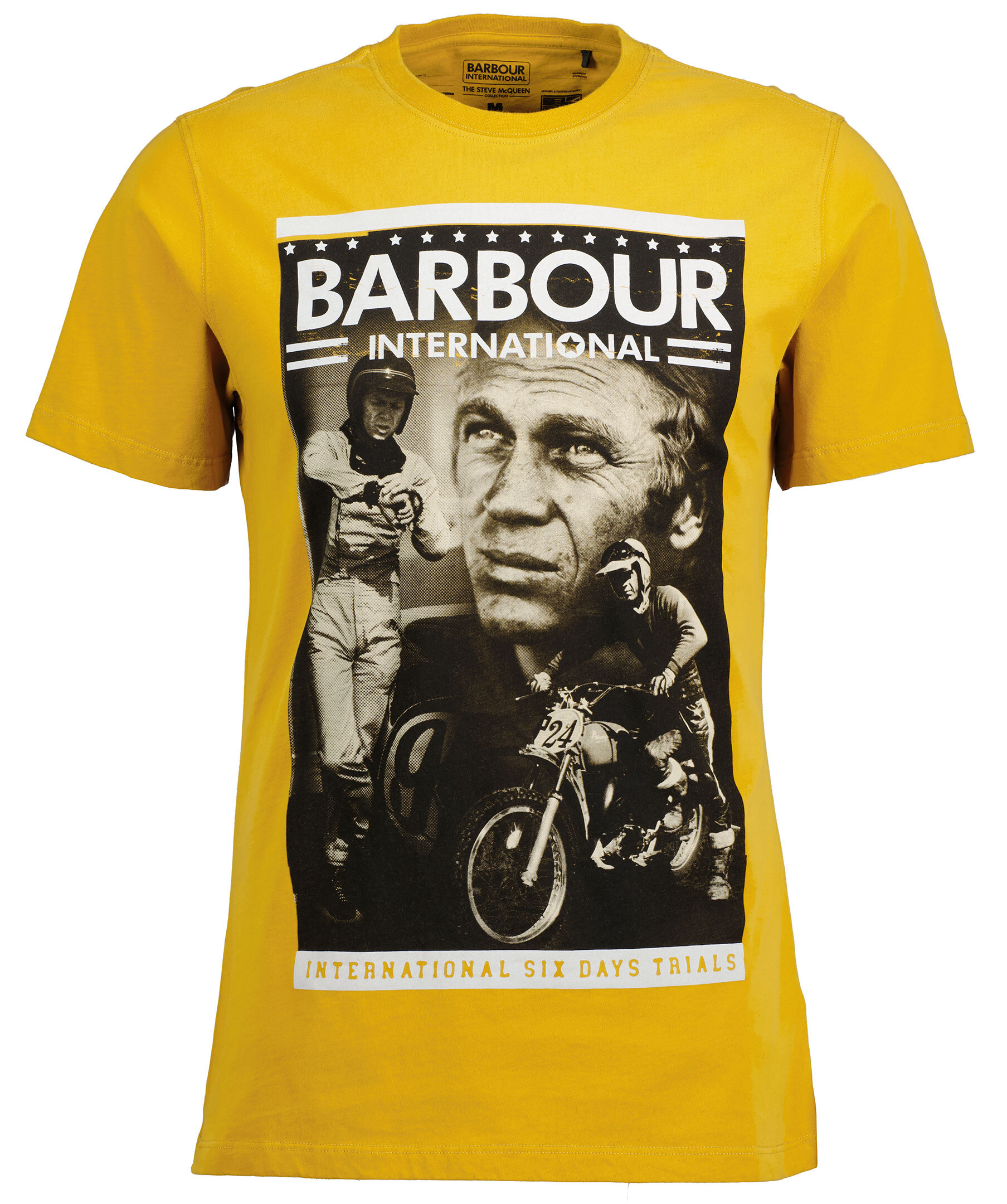 Mörkgul t-shirt från Barbour International gjord i 100% bomull. Stort tryckt på bröstet och rundad hals. *100% Bomull *Stort tryck fram *Crewneck