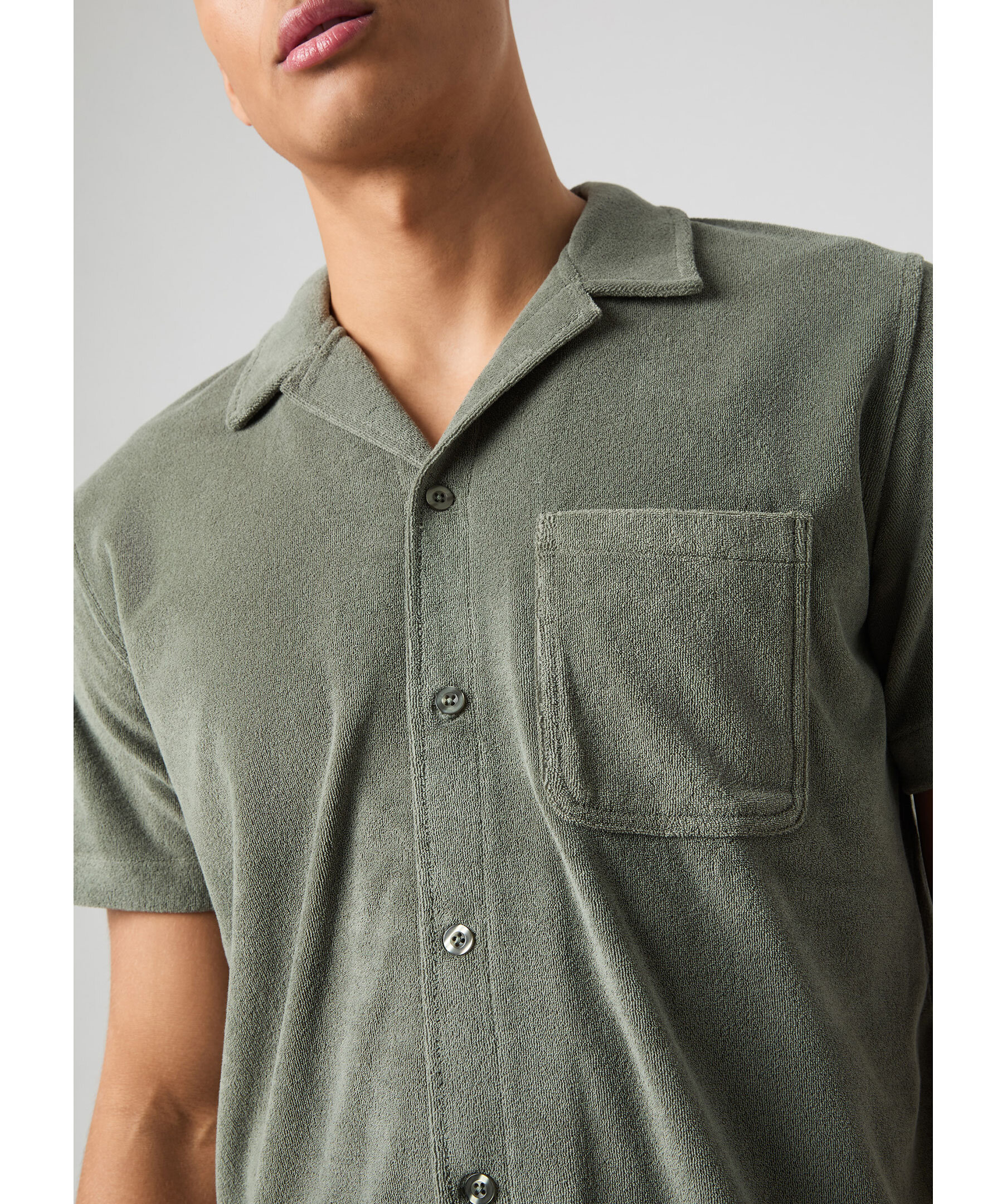 Grön, kortärmad skjorta i ett frottétyg från Björn Borg. Skjortan stängs med knappar framtill och har en bröstficka. Tillverkad i en polyester- och bomullsblandning.