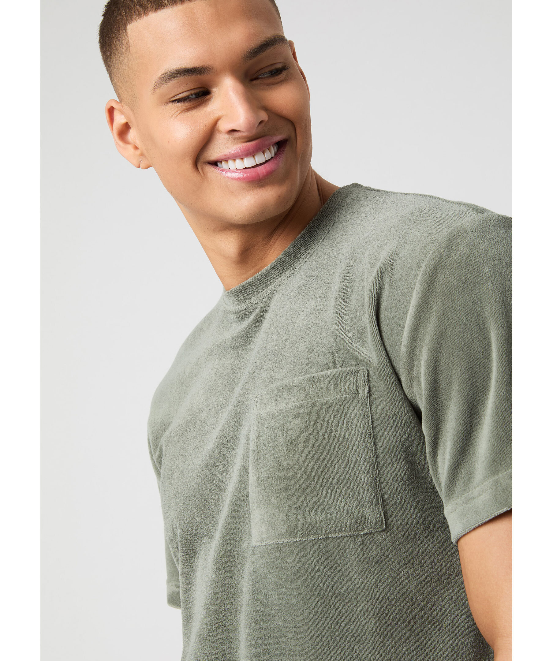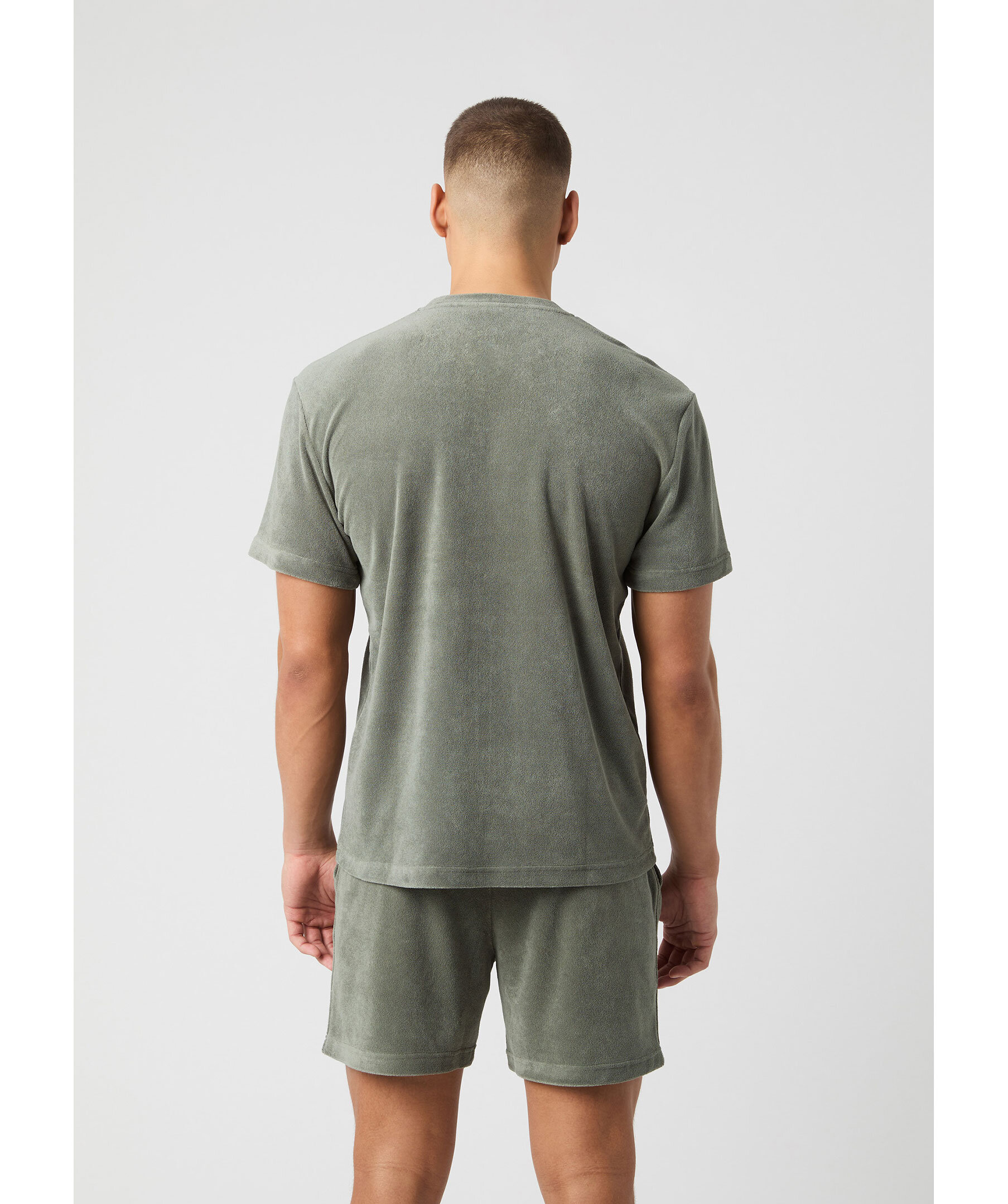 Grön t-shirt i ett frottétyg från Björn Borg. T-shirten har rundad halsringning, korta ärmar och en bröstficka. Tillverkad i bomull.