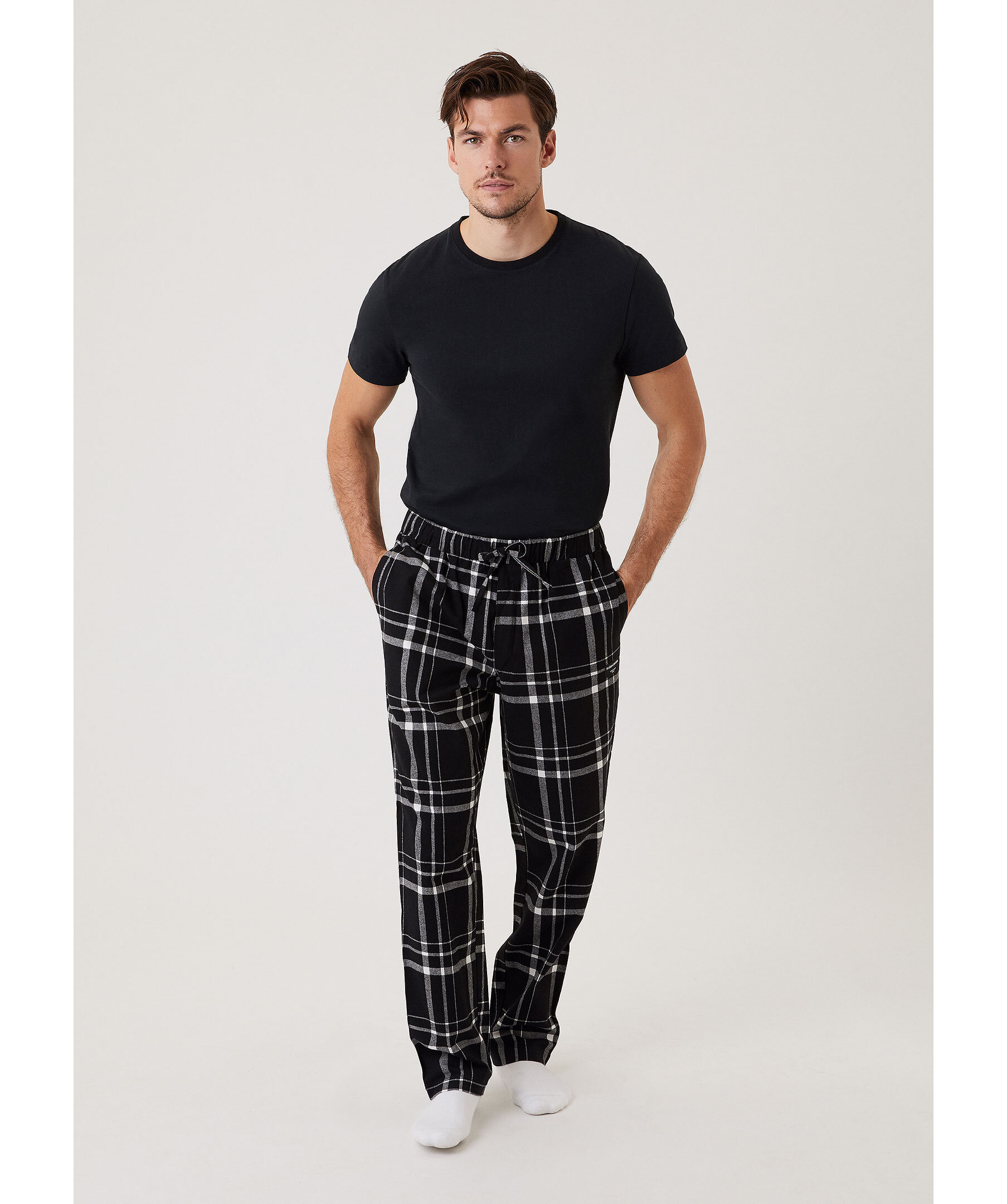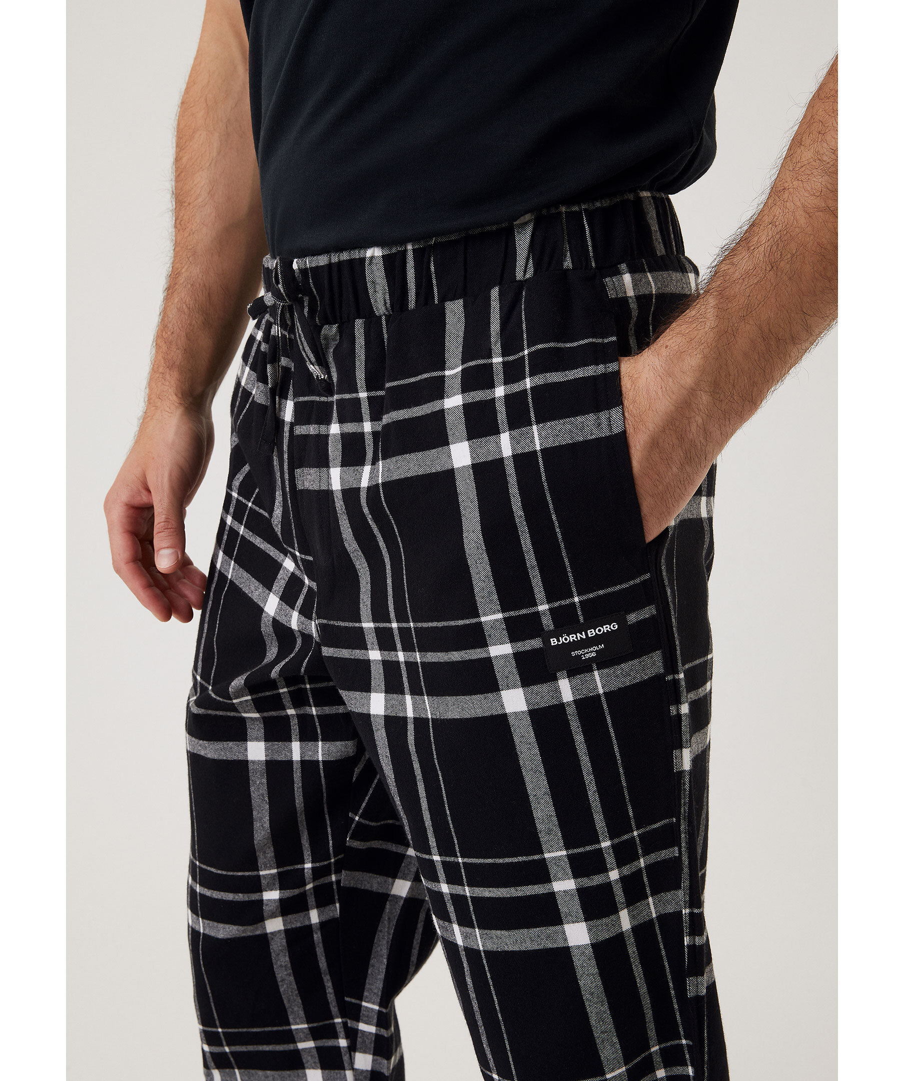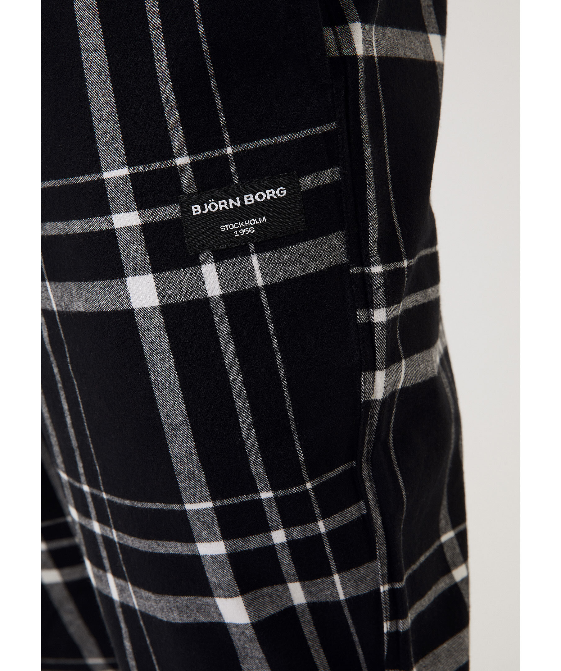 Svarta, rutiga pyjamasbyxor i flanell från Björn Borg. Byxorna har elastisk midja med snörning samt två sidfickor. Liten logotyp under ena fickan. Tillverkad i bomull.