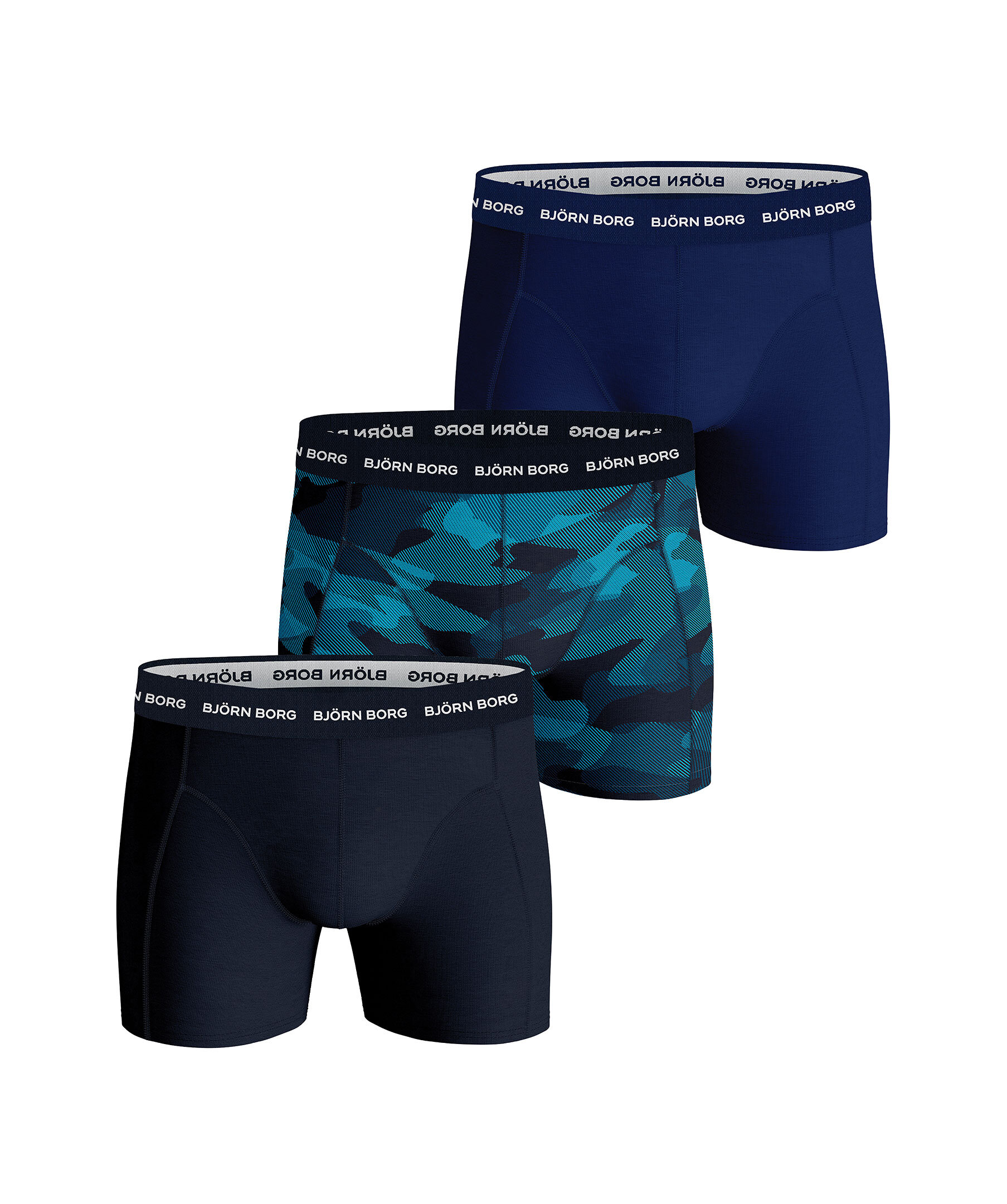 3-pack kalsonger från Björn Borg i färgerna svart och blått samt ett par mönstrade. Kalsongerna har medelhög midja med resår och logotyp. Tillverkade i en stretchig bomullsblandning.