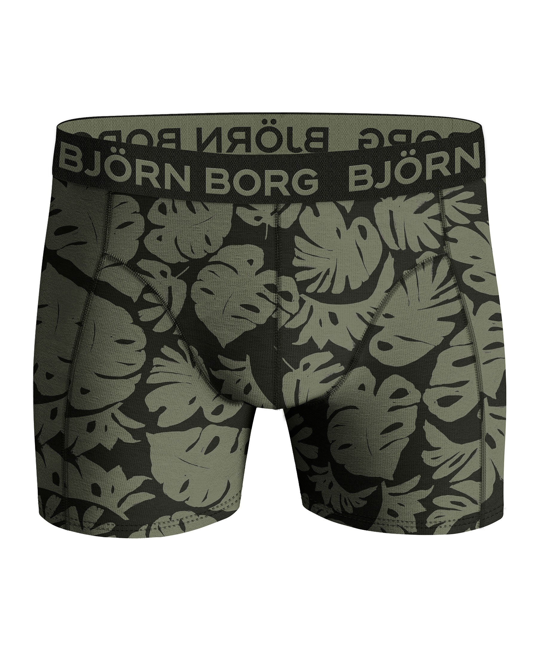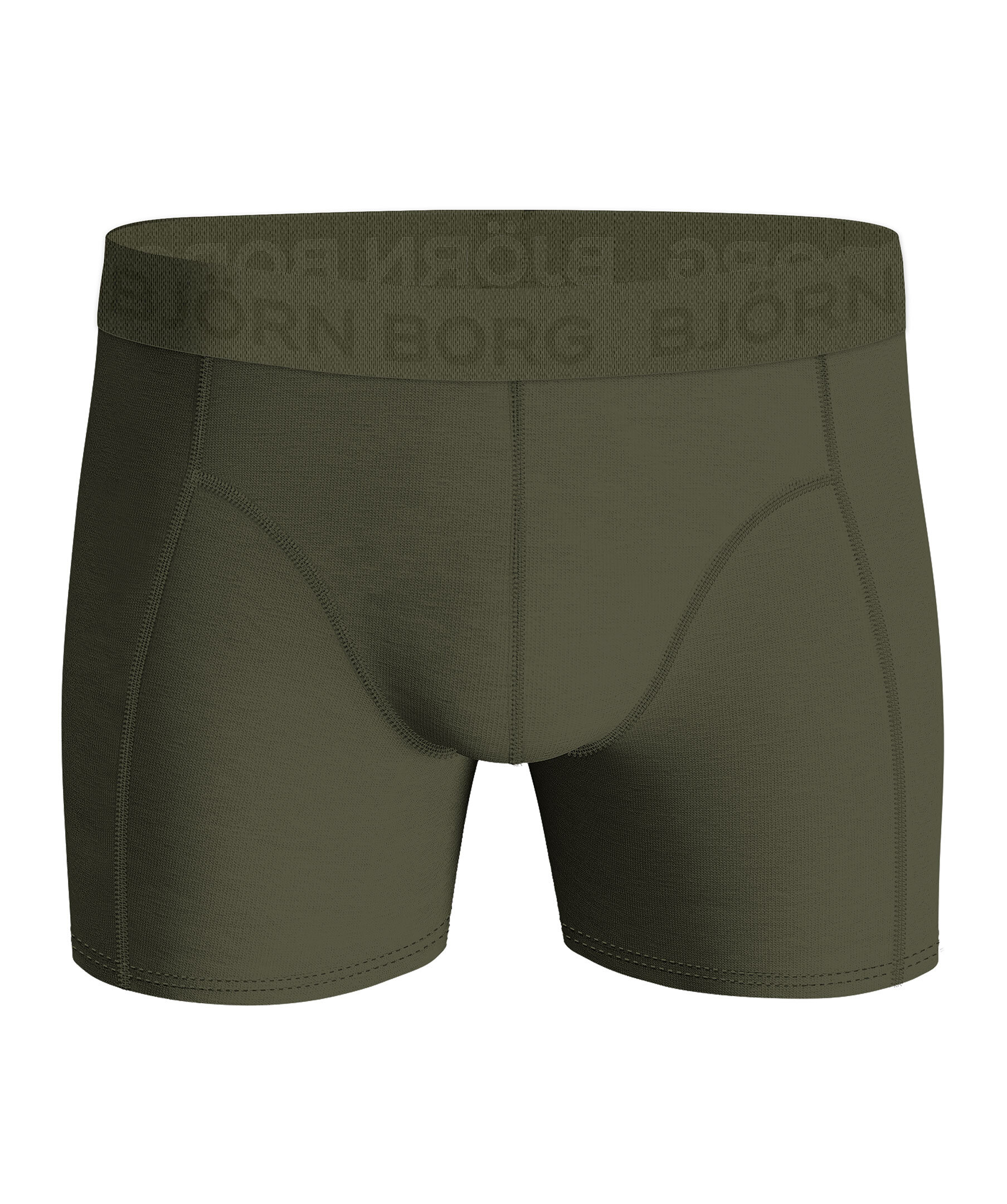 5-pack kalsonger från Björn Borg i färgerna svart och militärgrön samt ett par mönstrade. Kalsongerna har medelhög midja med resår och logotyp. Tillverkade i en stretchig bomullsblandning.