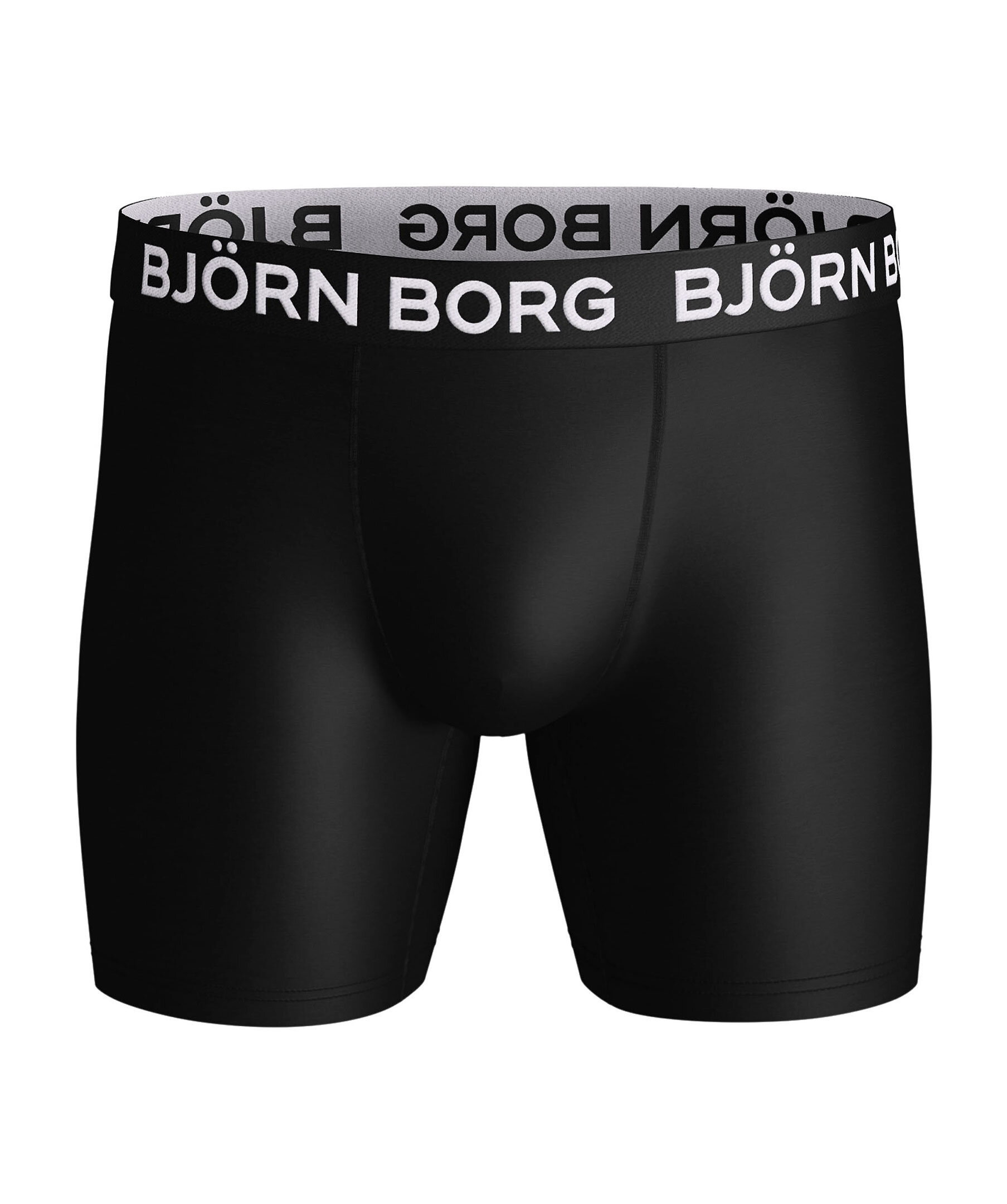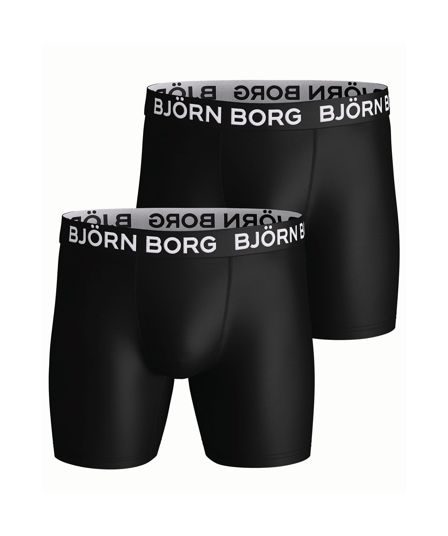 2-pack svarta kalsonger från Björn Borg. Kalsongerna är utvecklade för en maximalt bekväm träning och har medelhög midja med resår och logotyp. Tillverkade i en stretchig polyesterblandning.