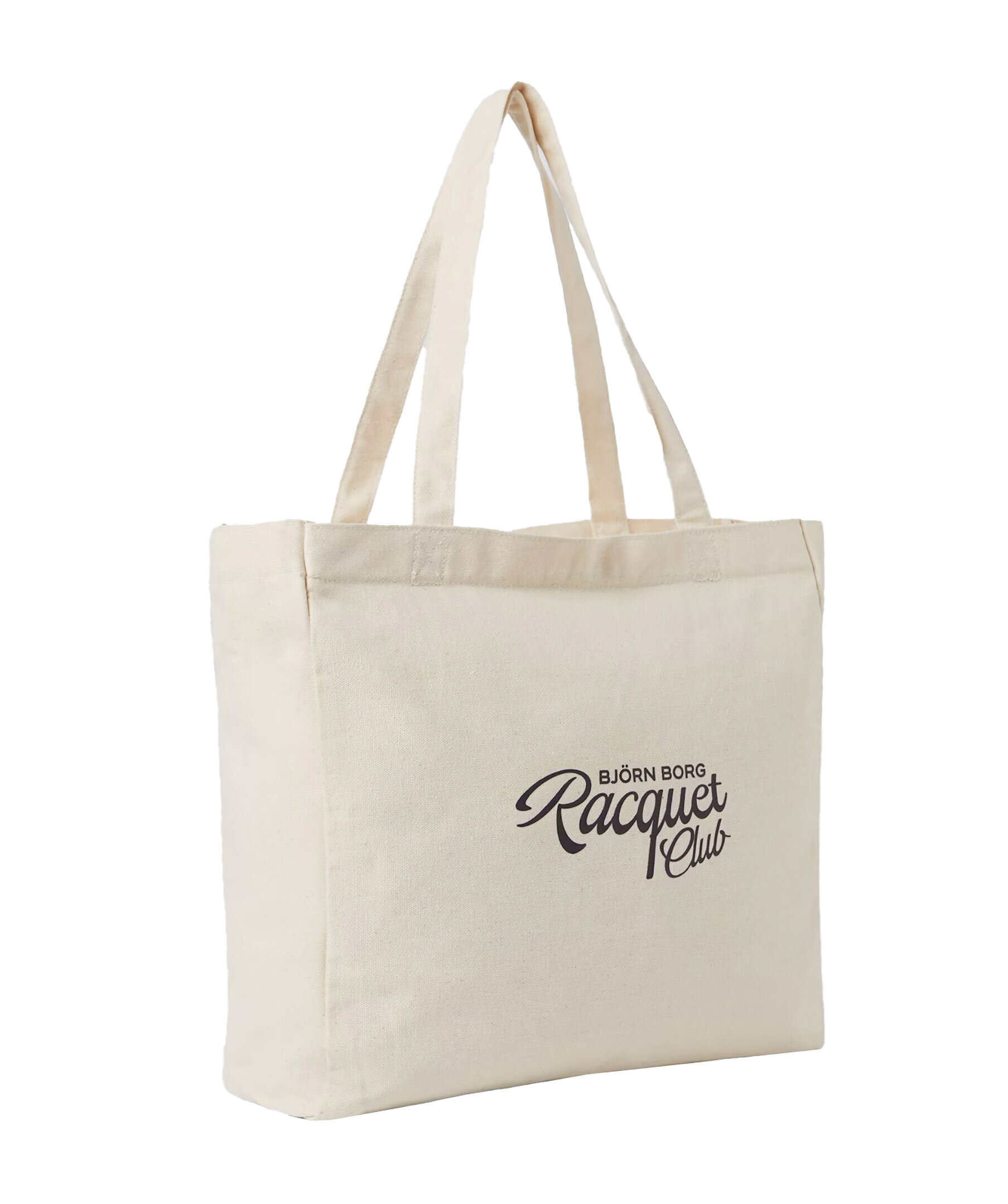 Beige tygväska från Björn Borg. Väskan stängs med dragkedja och har två långa handremmar för enkel bärning, en invändig hängande ficka med dragkedja för dina värdesaker och Racquet Club-logotypen på sidan. Rymmer 15 liter. Tillverkad i slitstarkt 100 % bomullskanvasmaterial.