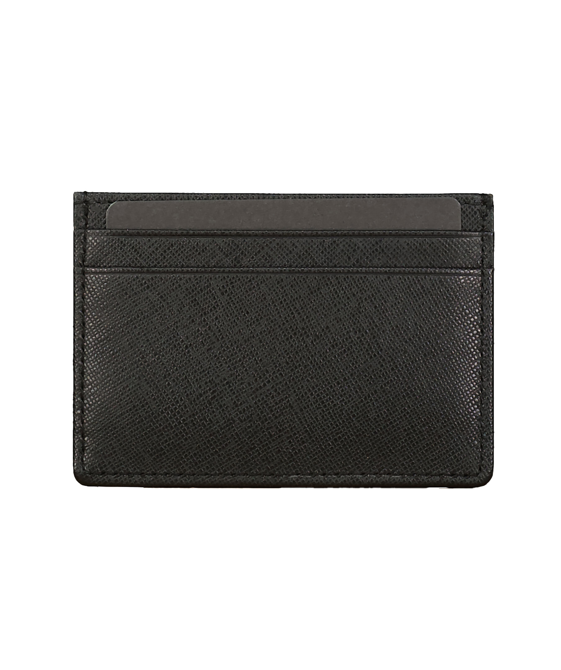 Svart korthållare i konstläder från BOSS Black med fem fack och en metallogotyp på framsidan. Mått: 10 x 1 x 6 cm
