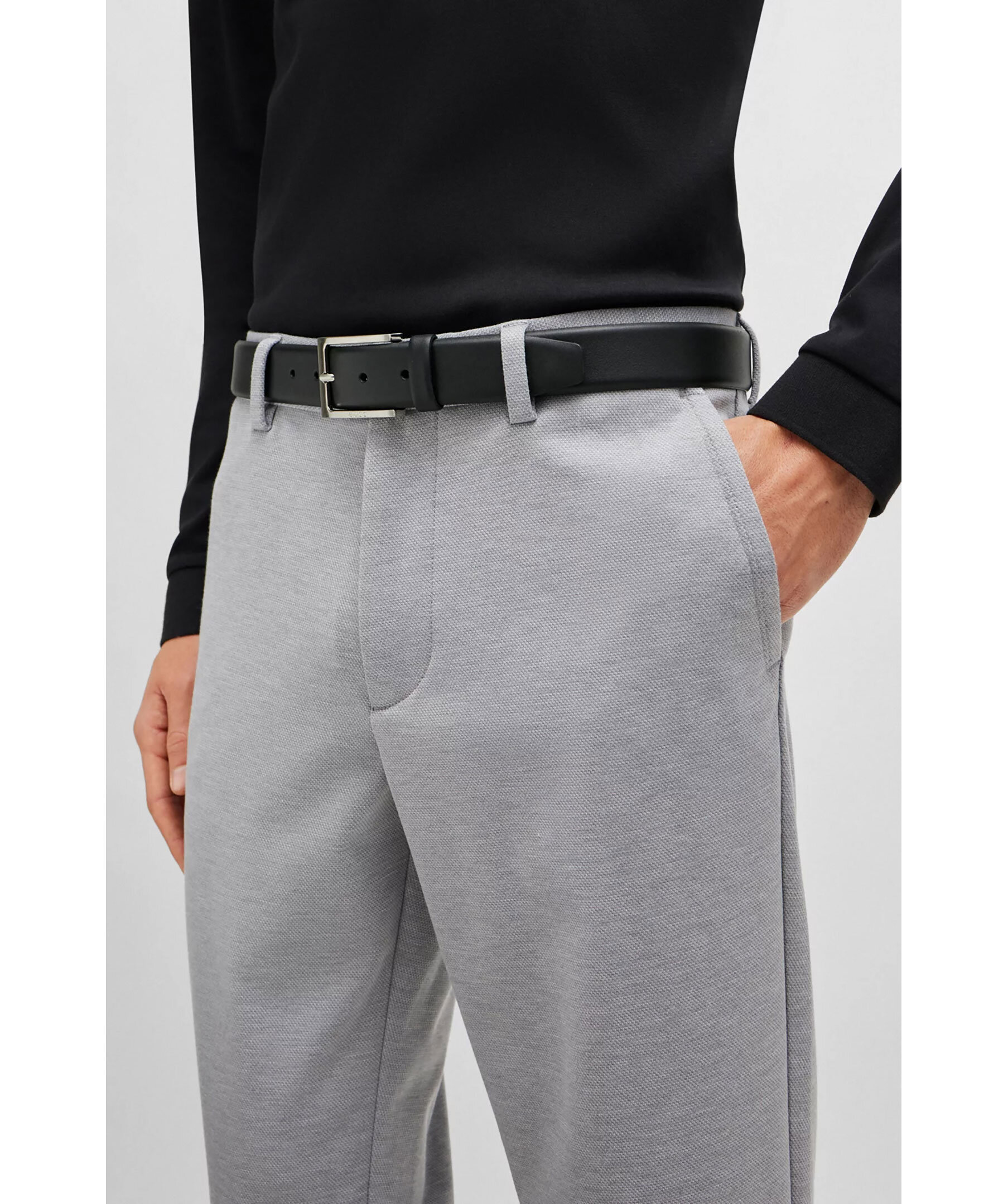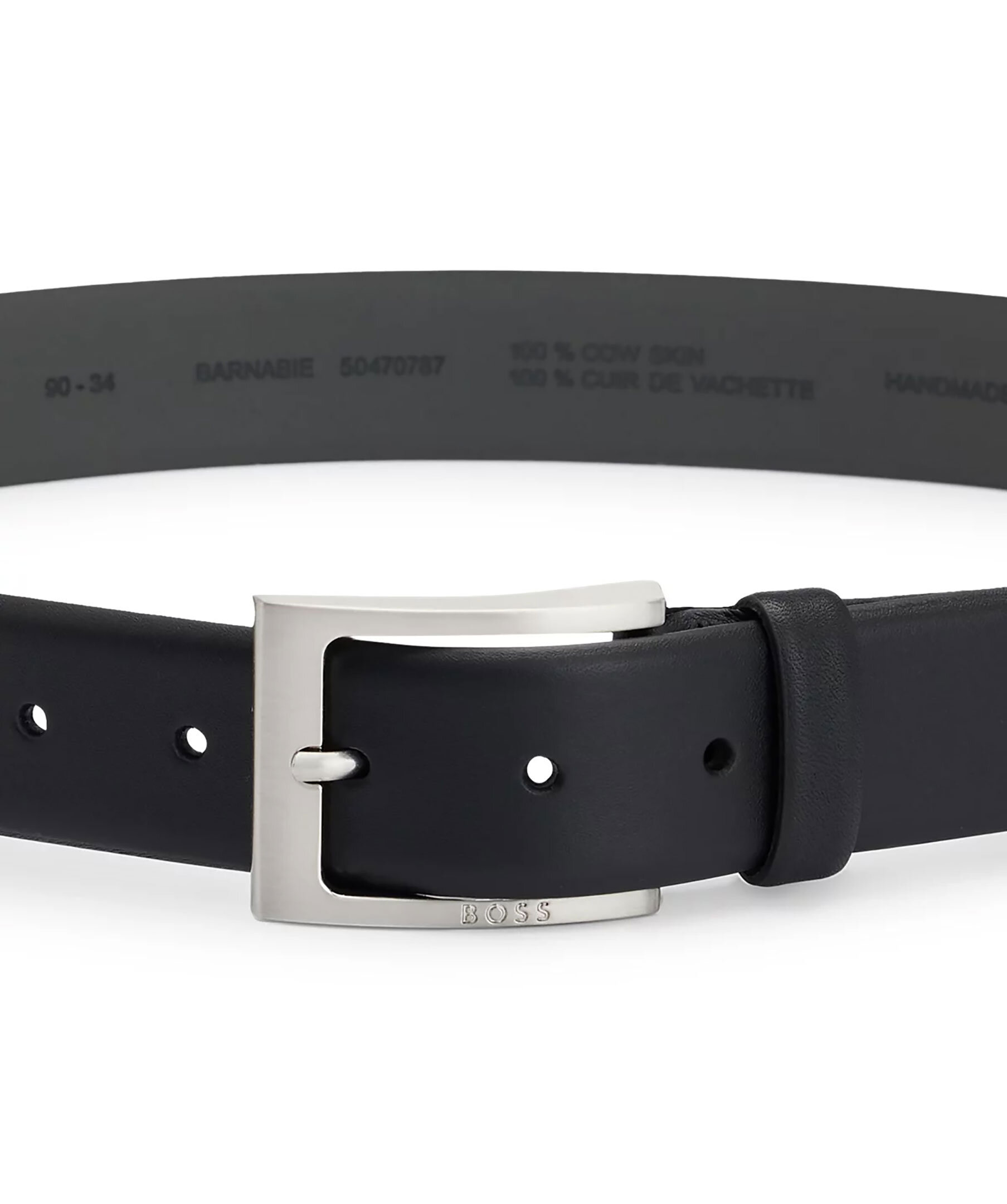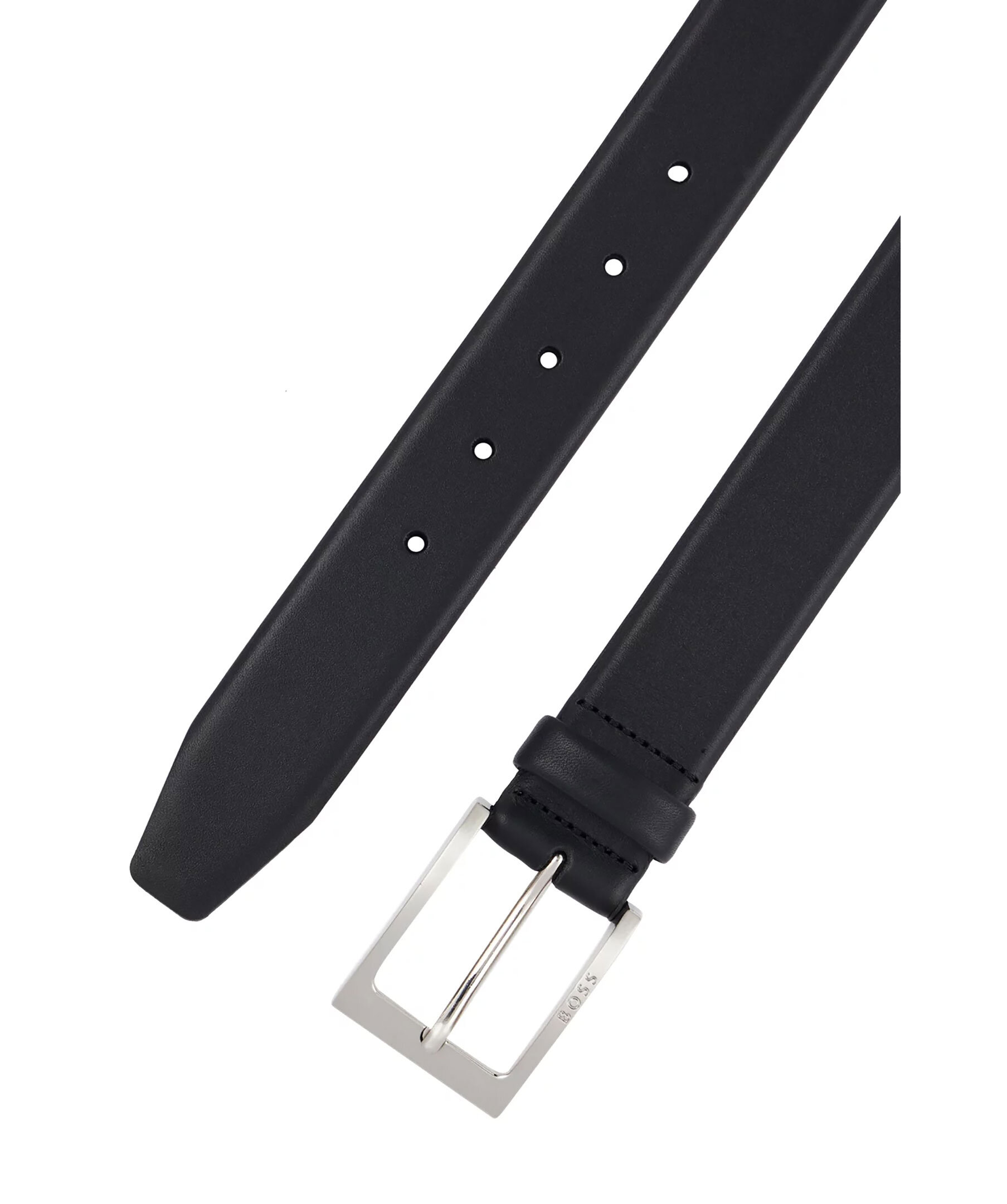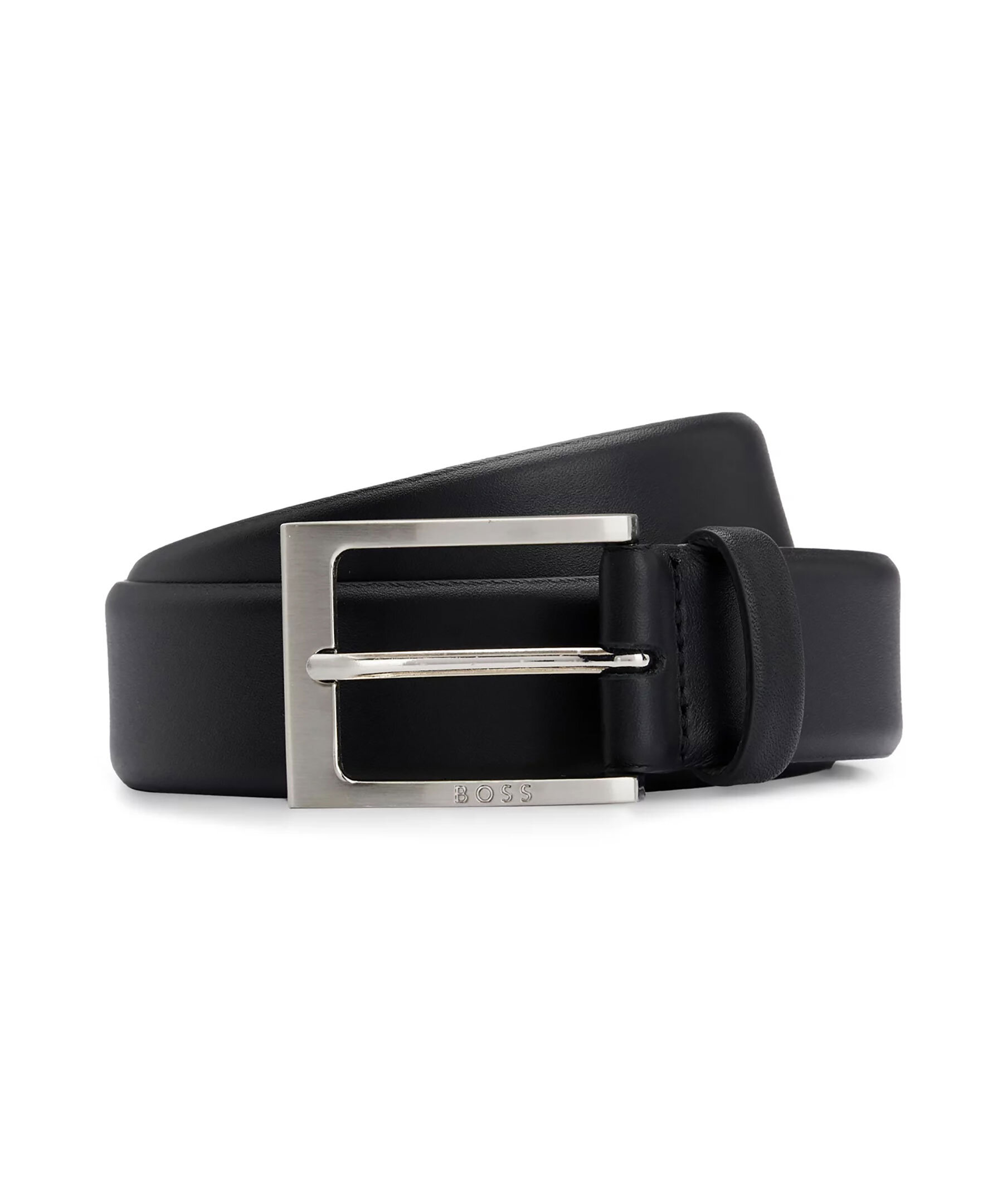 Svart läderbälte från BOSS Black. Bältet har en BOSS-logo ingraverad i det silverfärgade spännet. Mått: Bredd: 3,5cm