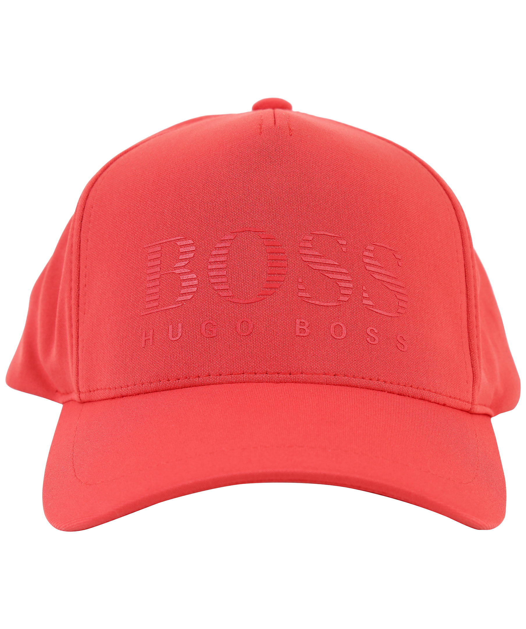 Röd keps från Hugo Boss Athleisure. Tryck logga i gummi fram och reglerbart metallspänne baktill.