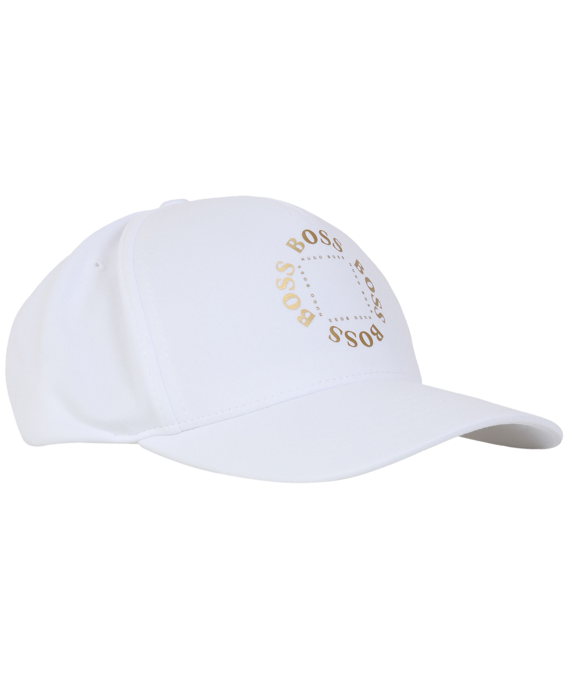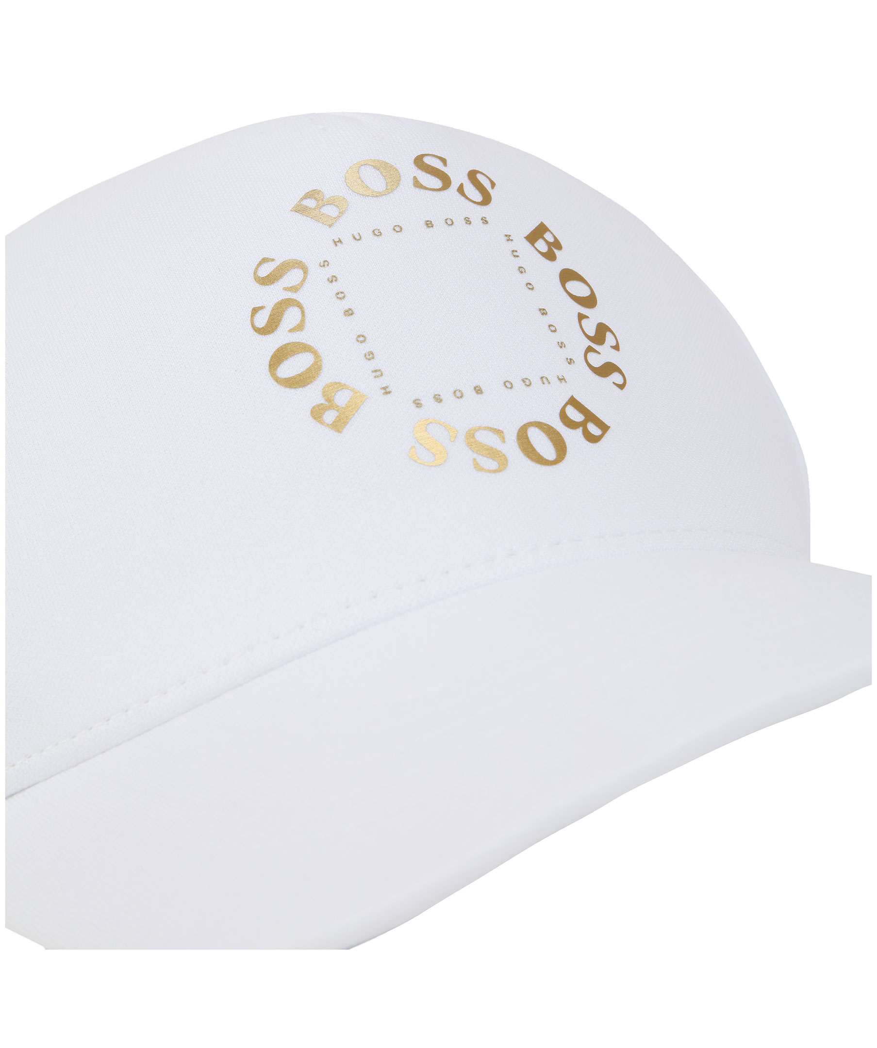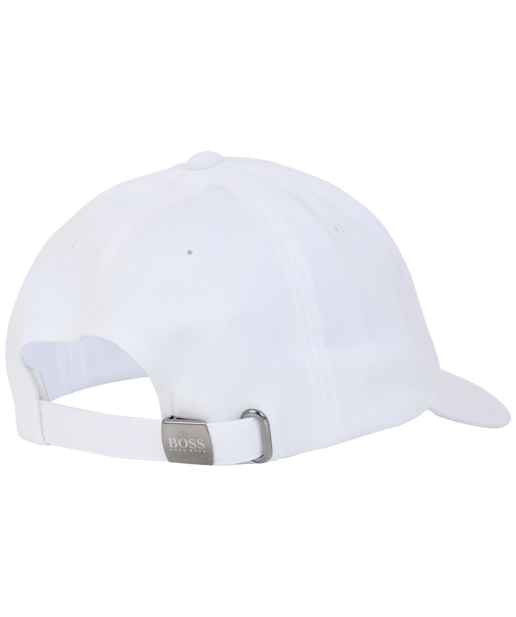 Vit keps från Hugo Boss Athleisure. Tillverkad i stretchig polyester. Runt tryck framtill med logotyper. Reglerbart spänne bak med logga på.