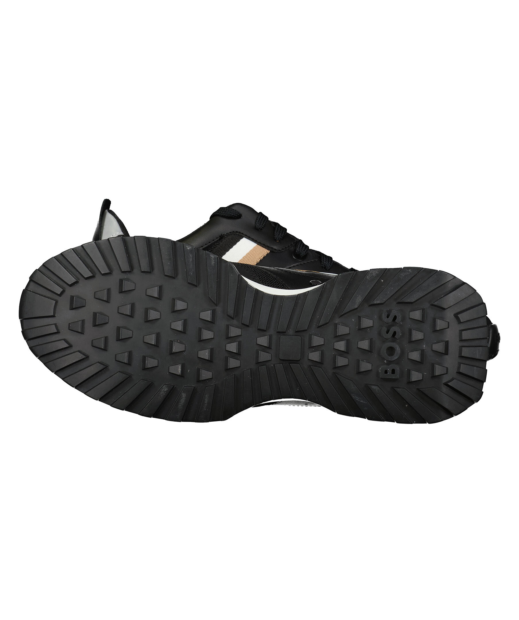 Svarta sneakers från BOSS Green. Reflexdetaljer fram och bak, svart/vit/beige detalj vid sidan och svart snörning framtill. Tillverkade i textil, gummi och regenererat läder.