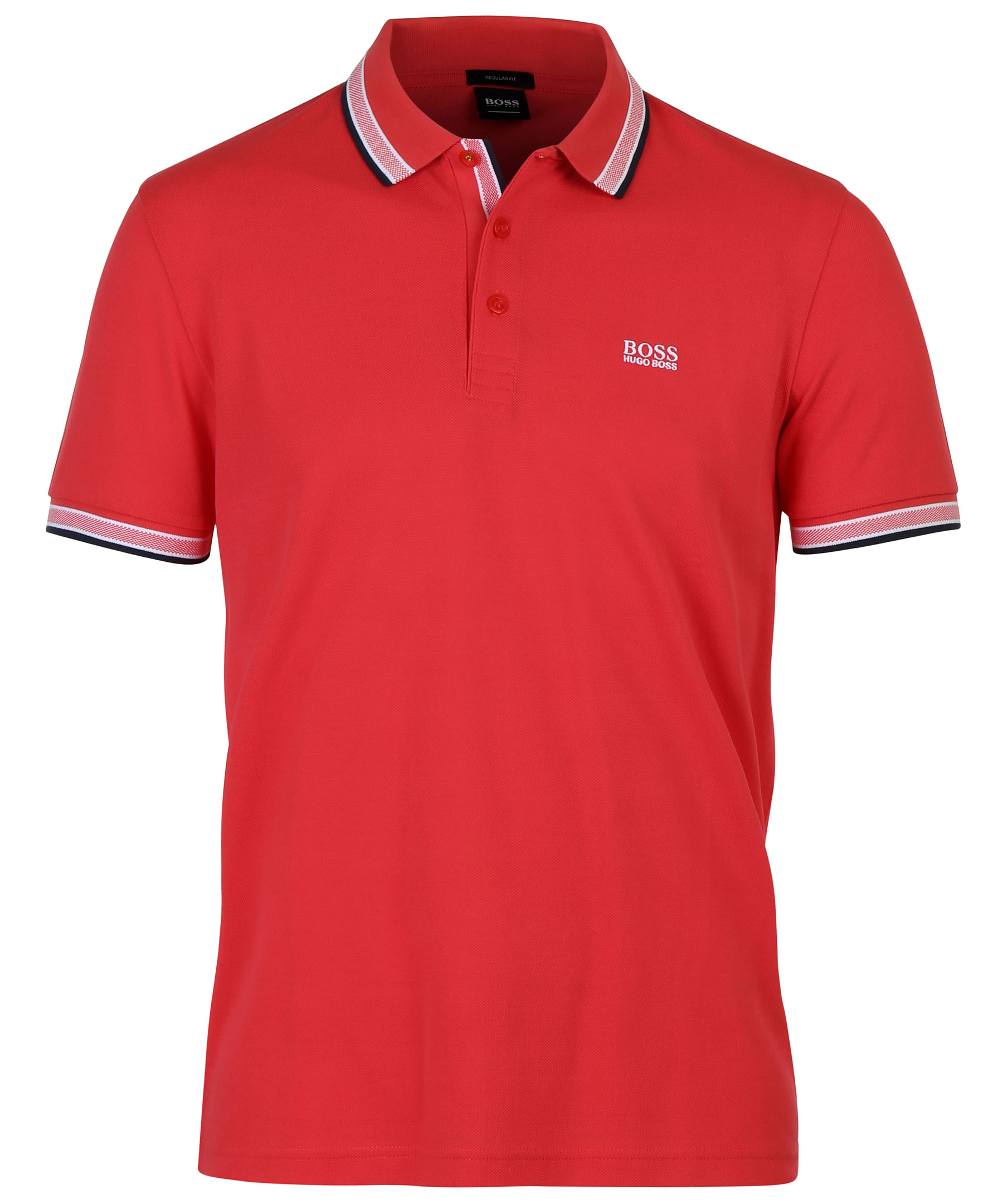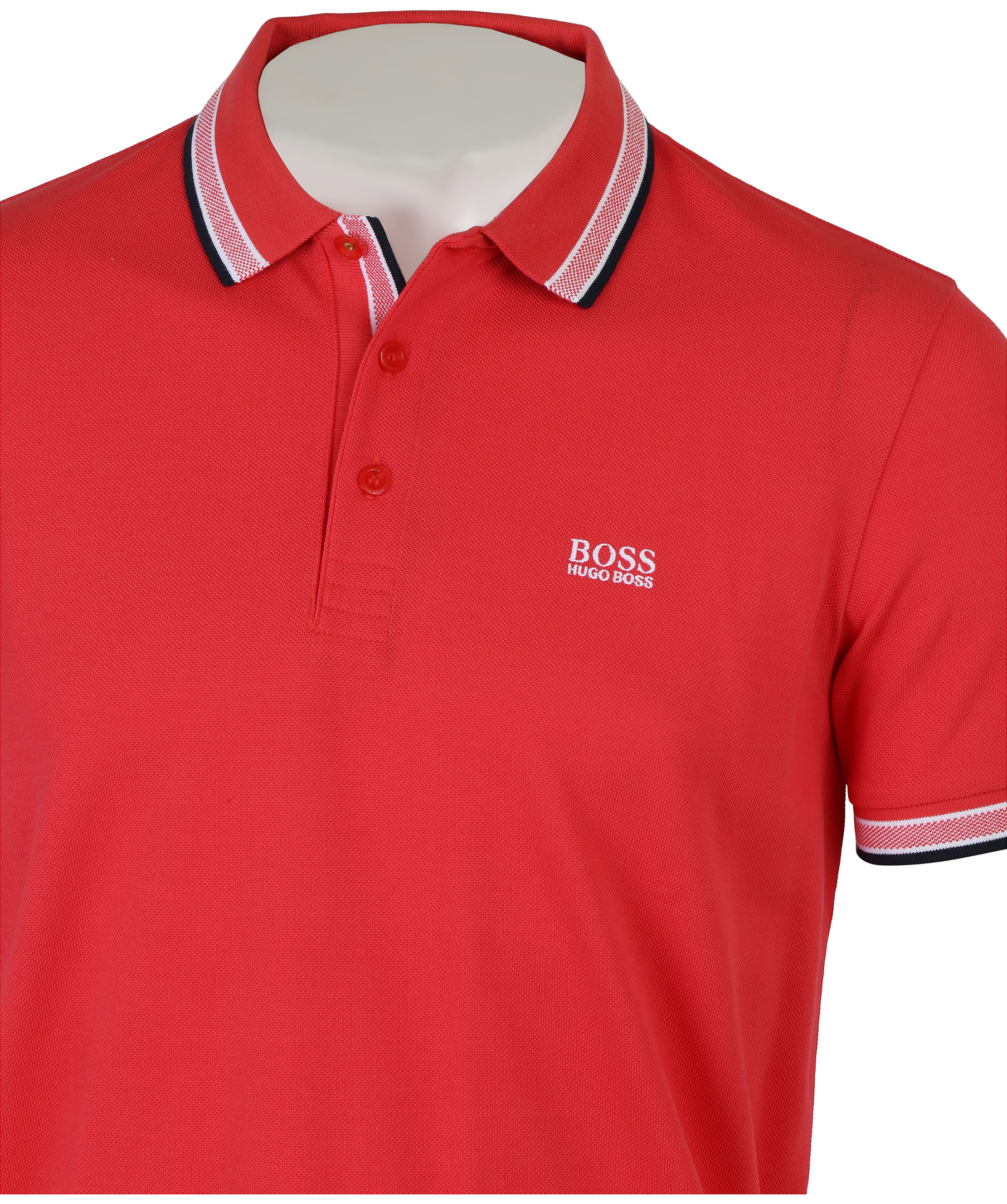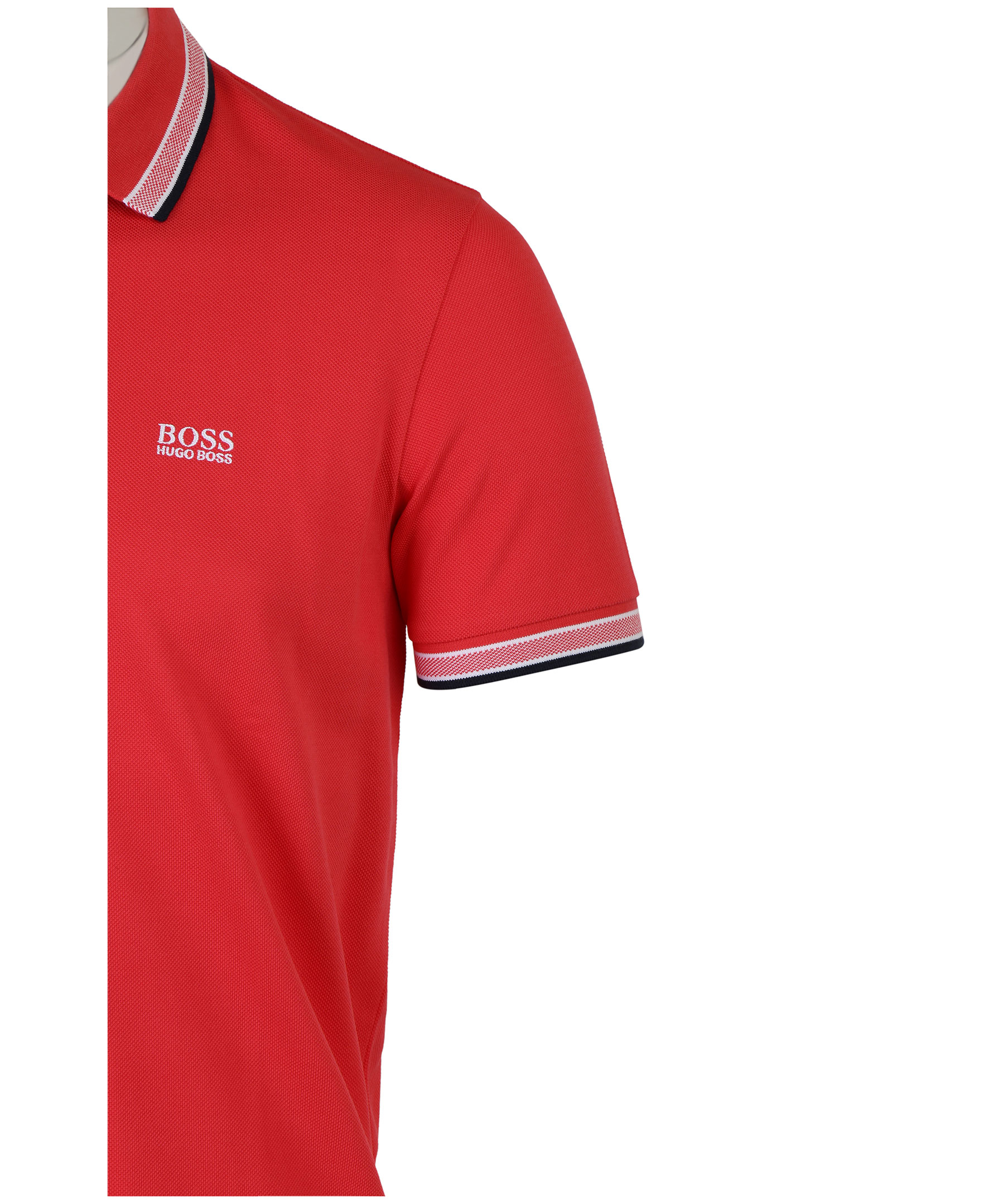 Röd kortärmad pikétröja från Hugo Boss Athleisure kollektion. Vit broderad logotyp på bröstet. Tillverkad i 100% bomull.