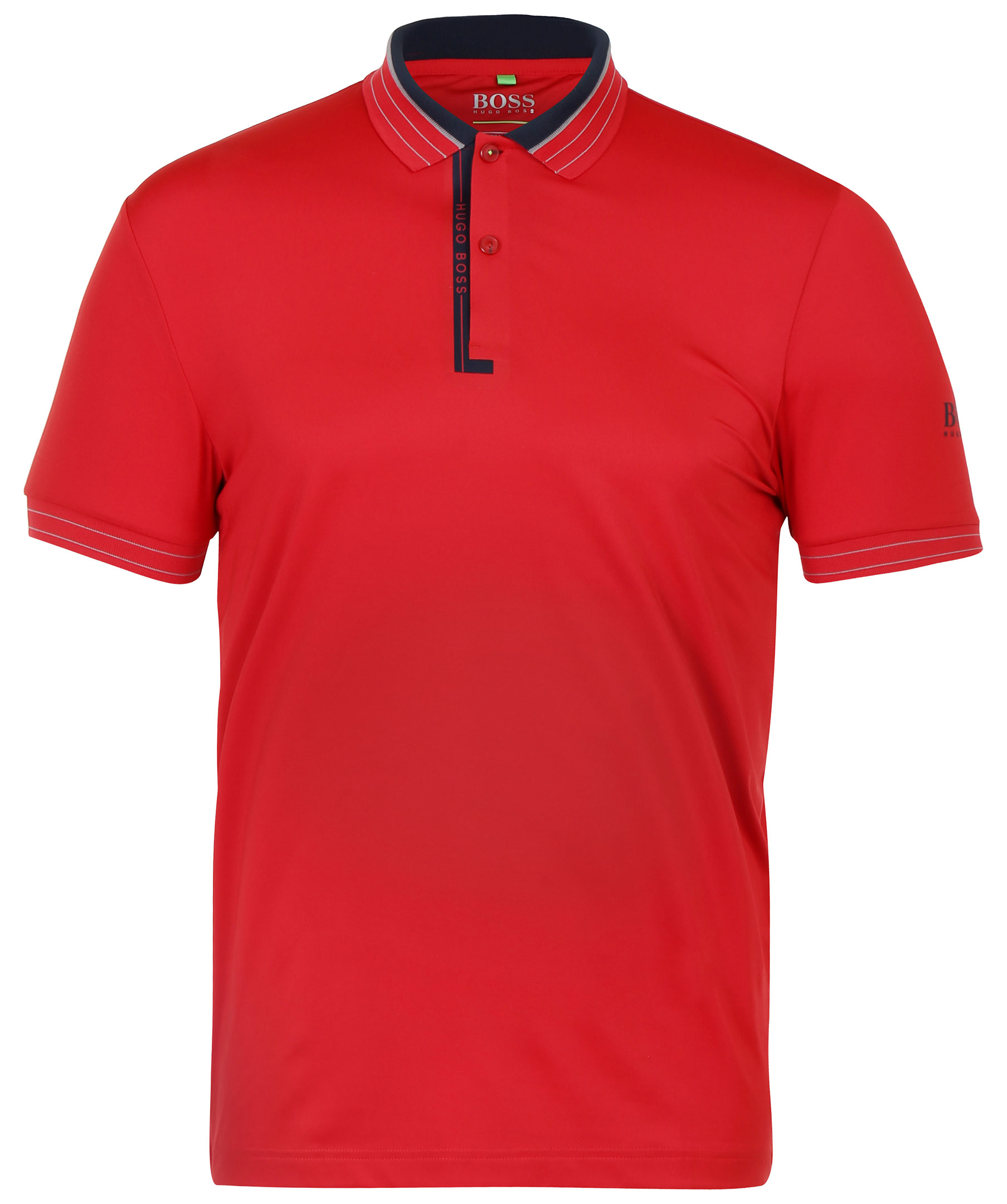 Röd kortärmad piké från Hugo Boss Athleisure. Gjord i deras moisture management tyg som håller kroppen torr och bekväm. Stretchigt material, klassisk piké krage och logga på vänster ärm. Utmärkt till exempelvis tennisträningen.