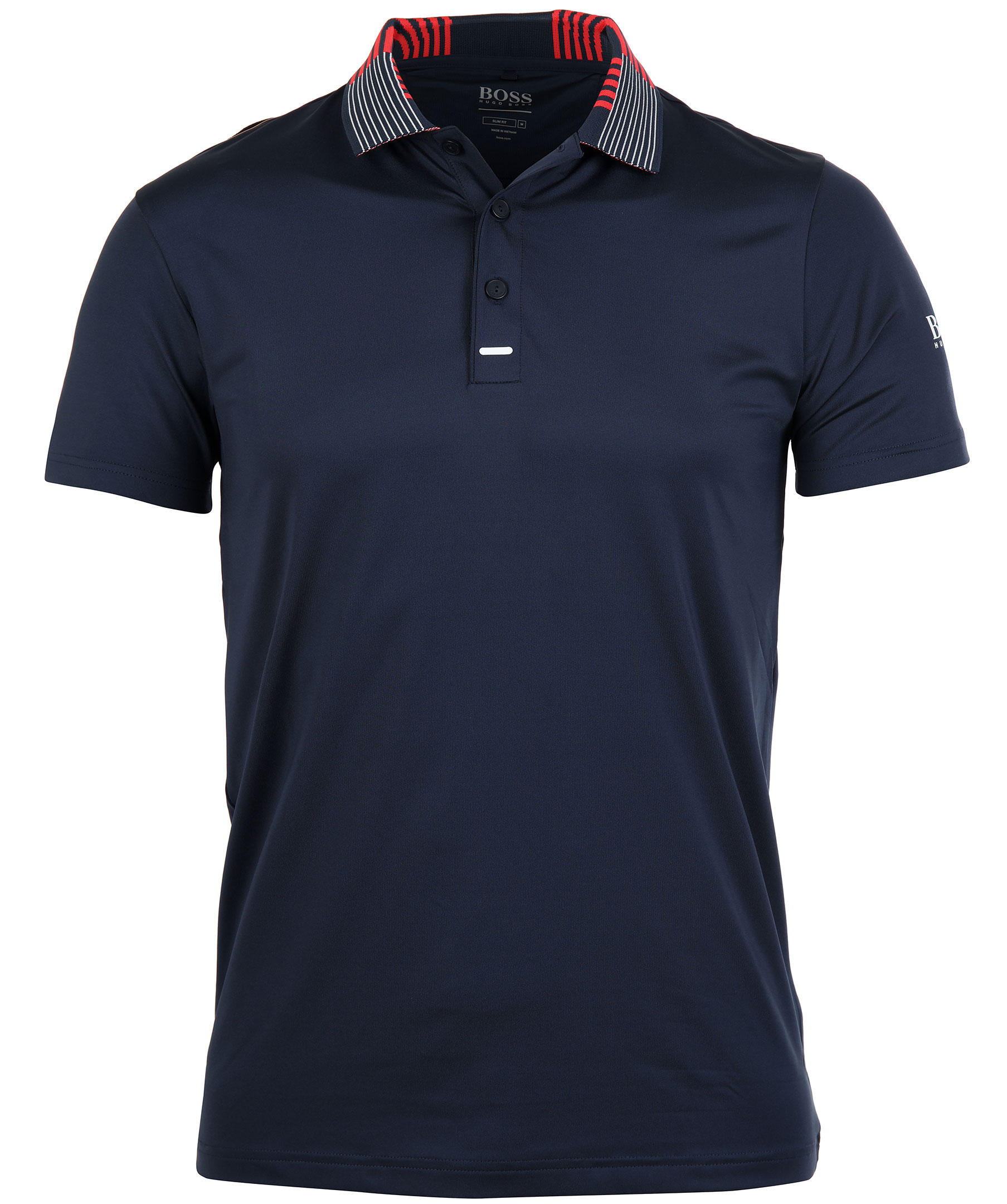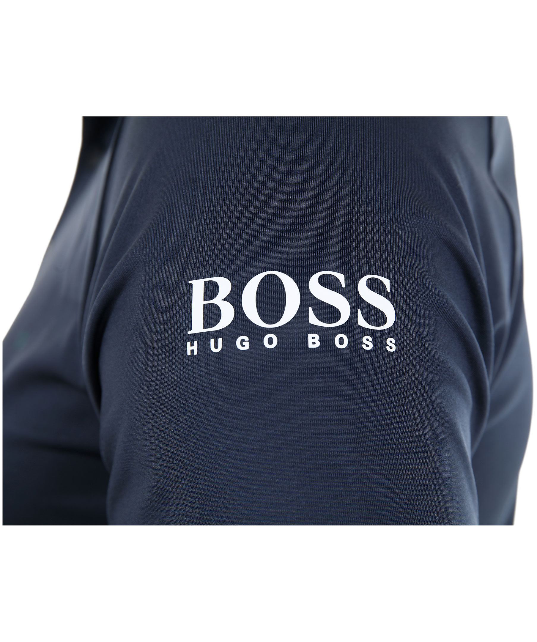 Marinblå pikétröja från Hugo Boss Athleisure. Tillverkad i funktionsmaterial. Kontrastfärgad krage, logotyp tryckt på vänster ärm.