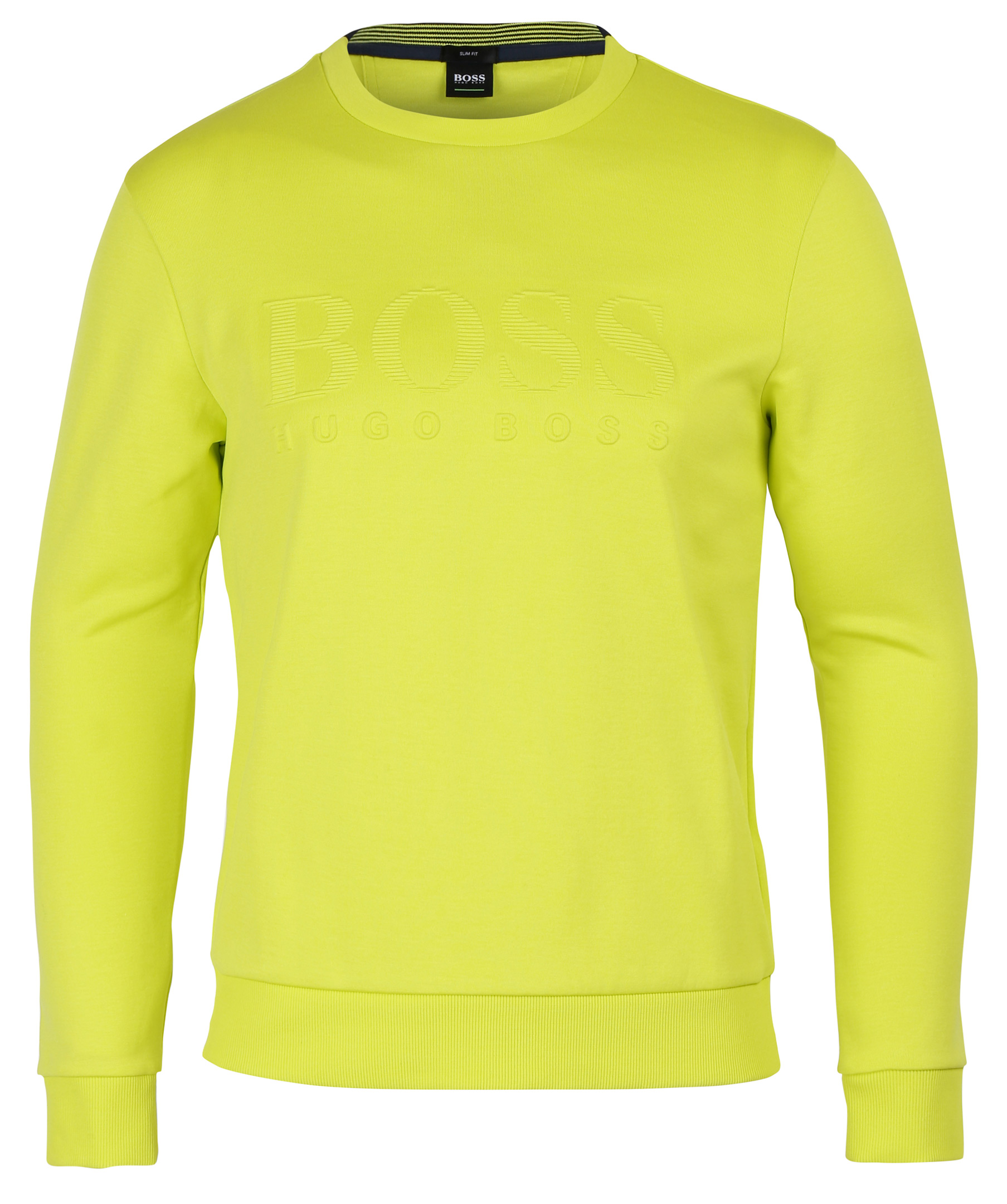 Neongul sweatshirt från Hugo Boss Athleisure kollektion. Tröjan är i slim fit modell och har ett diskret utstående tyck längst bröstet. Tillverkad i bomullsmix.