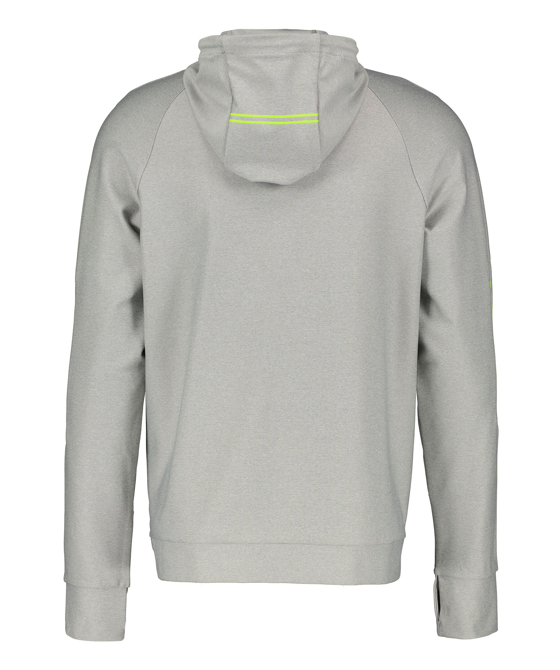 Grå hoodie från BOSS Green. Stängs framtill med dragkedja. Två fickor framtill. Luva med dragsko och neongröna detaljer. Tryckt logotyp i neongrönt, tryckt på vänster bröst.