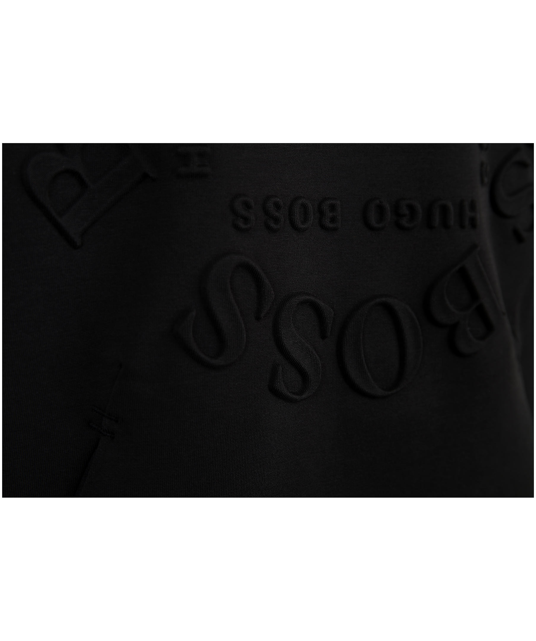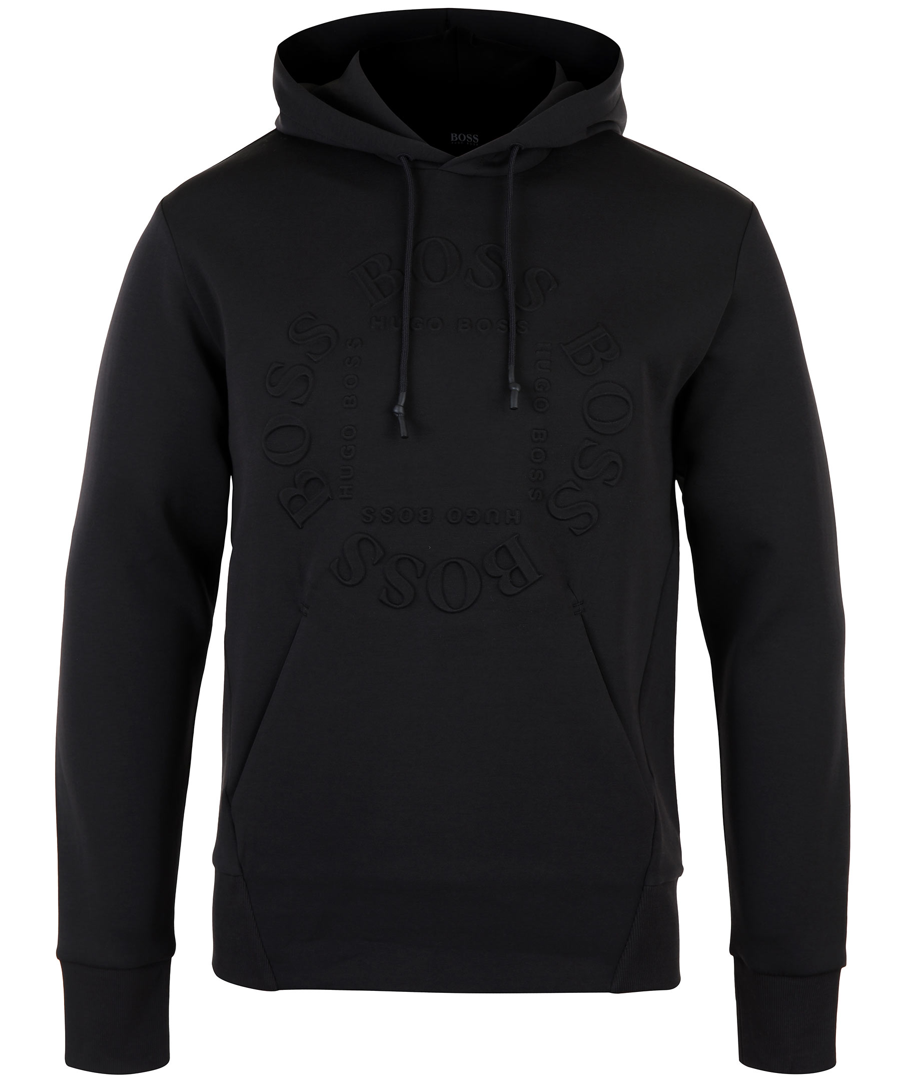 Svart luvtröja från Hugo Boss, ficka på magen samt stor logga på bröstet. Snörning i luvan och ribbade muddar i ärmslut och plaggslut. Tillverkad i bomullsblandning.