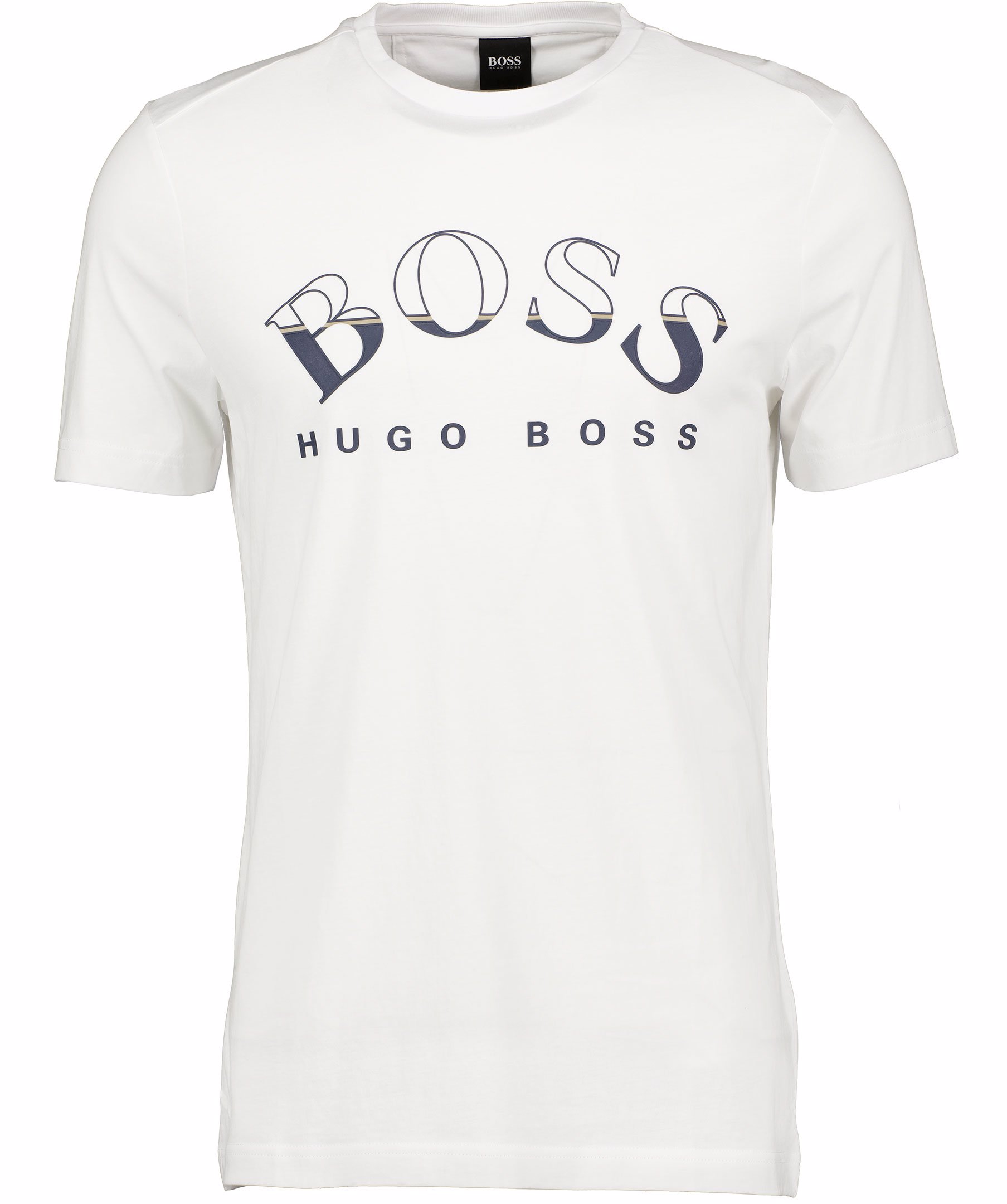 Vit t-shirt från Hugo Boss Athleisure. Gjord i ett skönt bomullstyg. Svart, utstående gummerad logotyp över bröstet med ett beige streck rakt igenom. Rundad halsringning. * Crew neck * 100% Bomull * Utstående logga