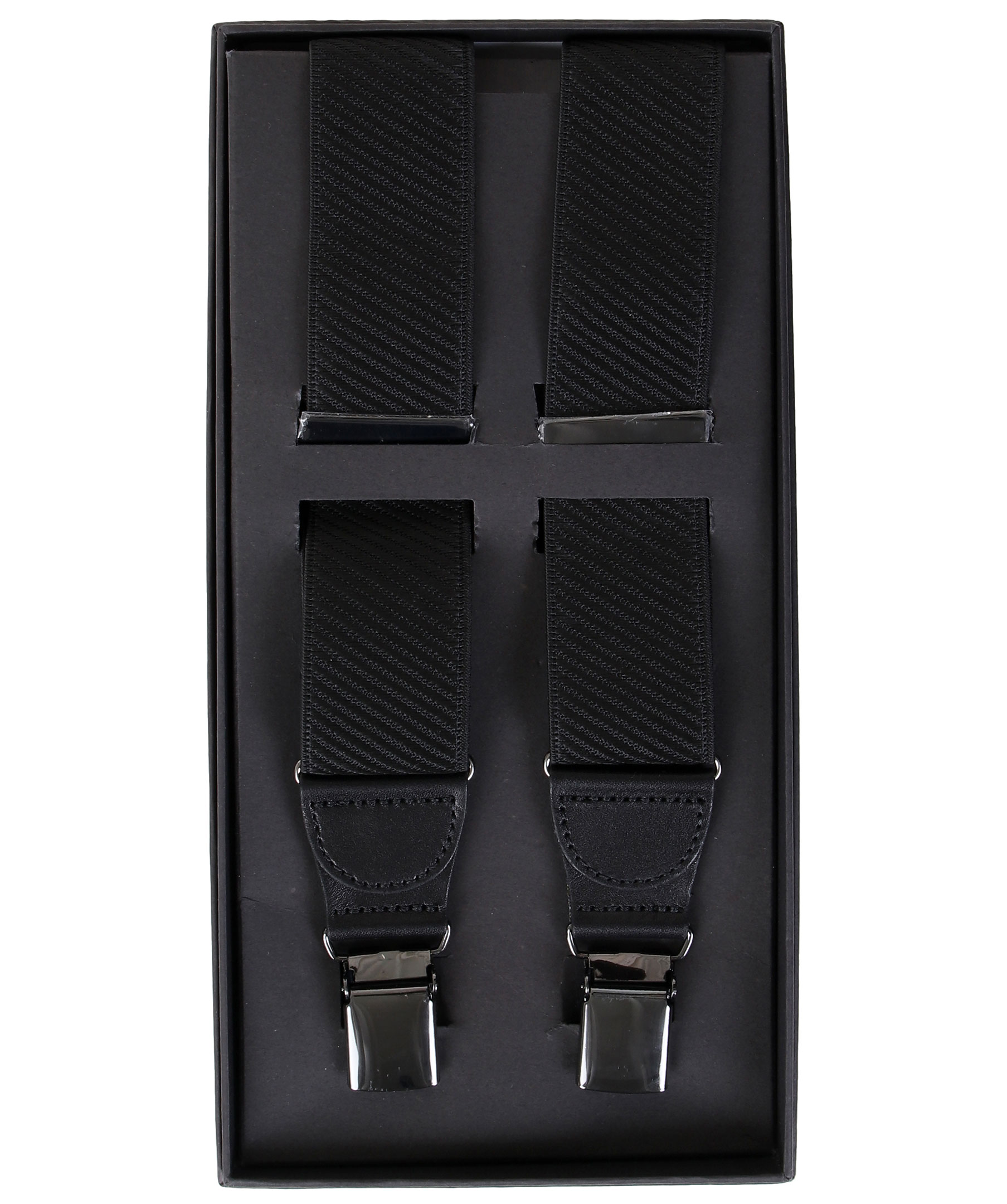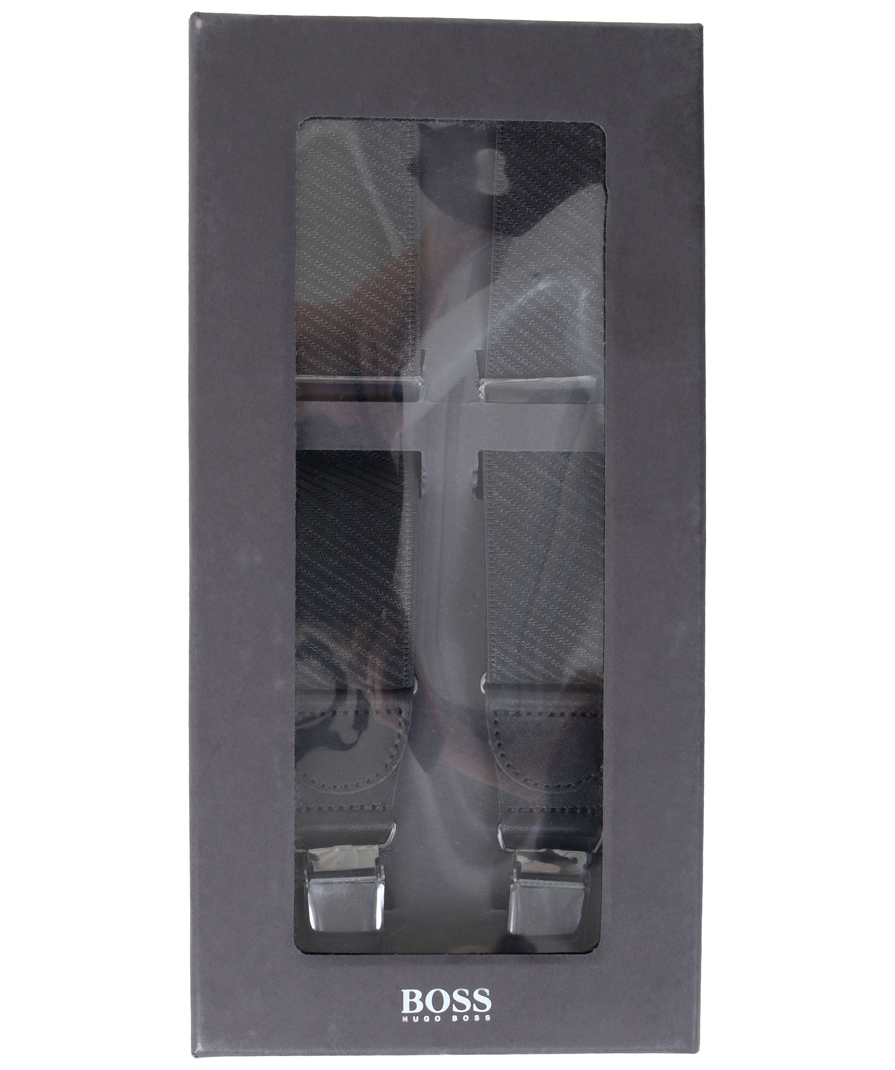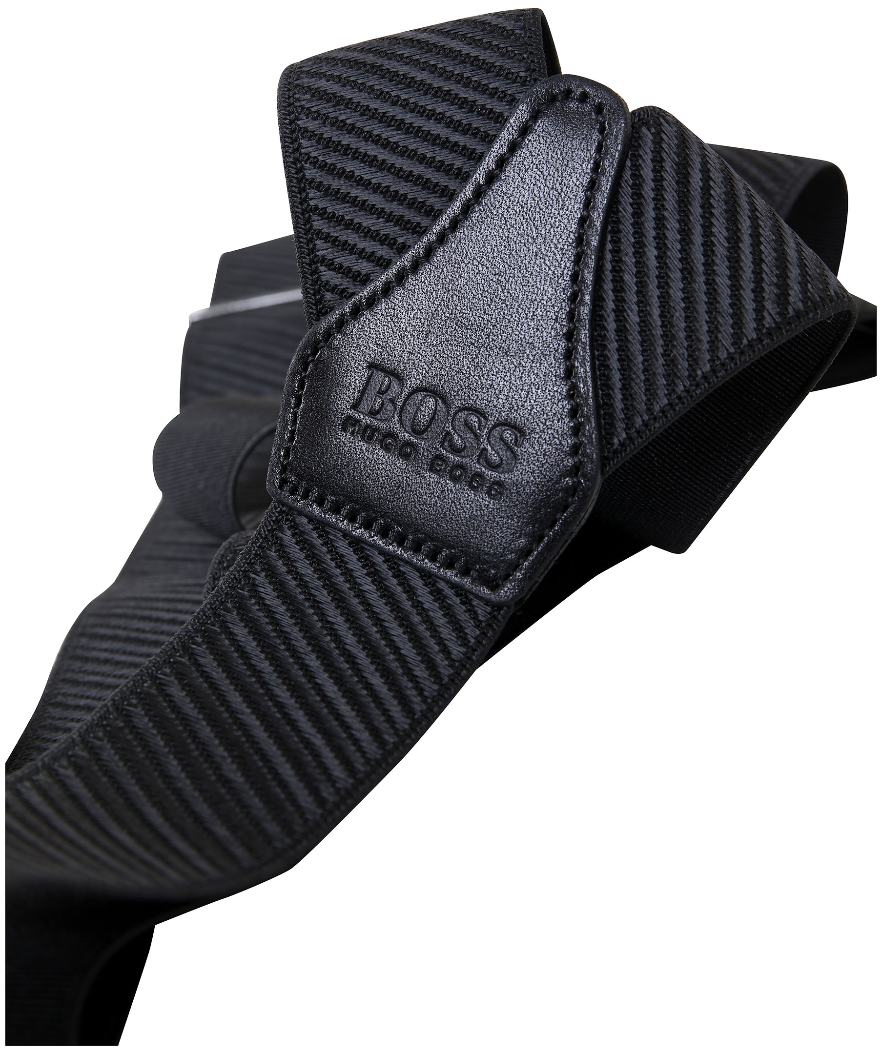 Svarta hängslen från Hugo Boss. Tillverkade i textil med detaljer i metall och läder.