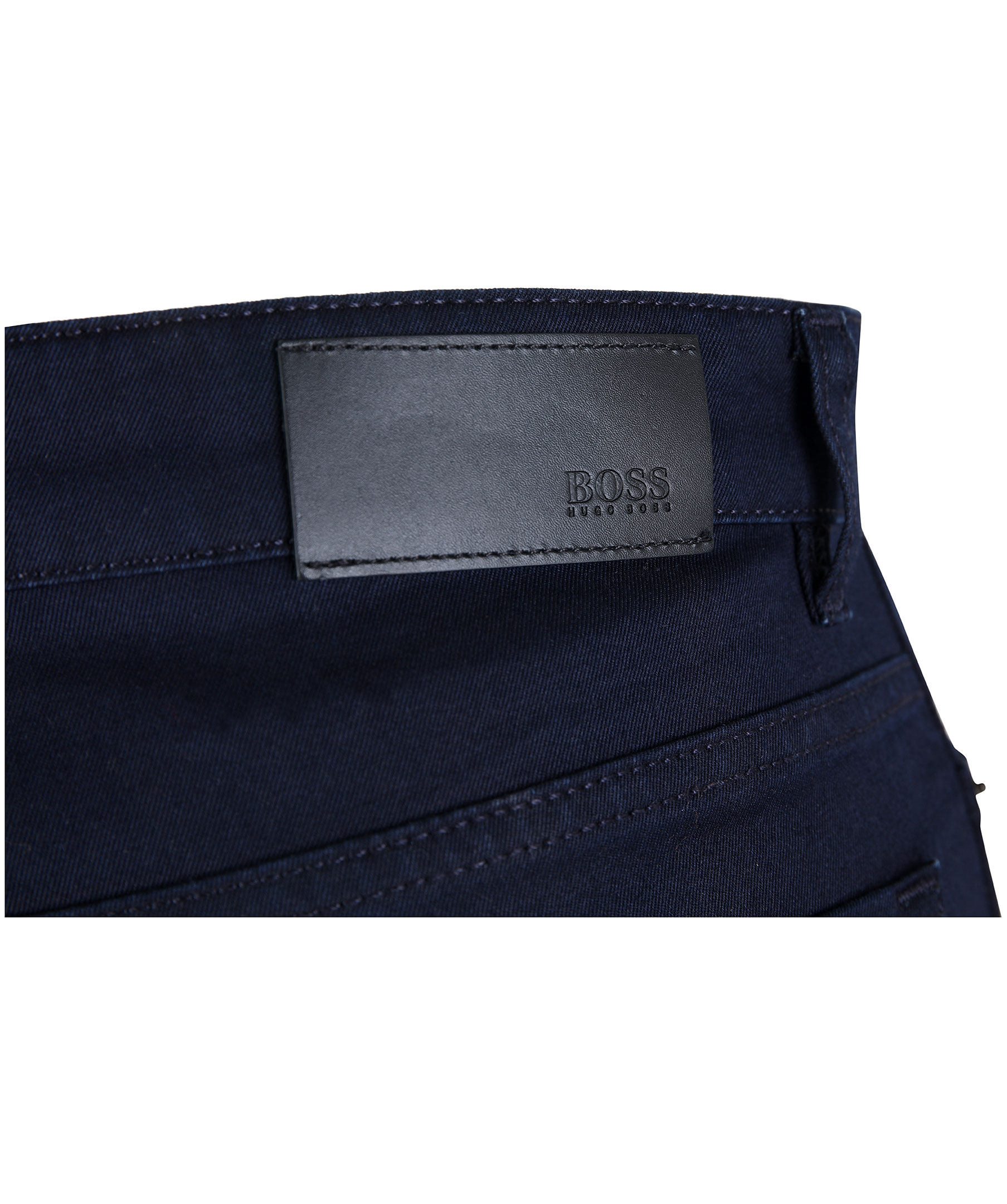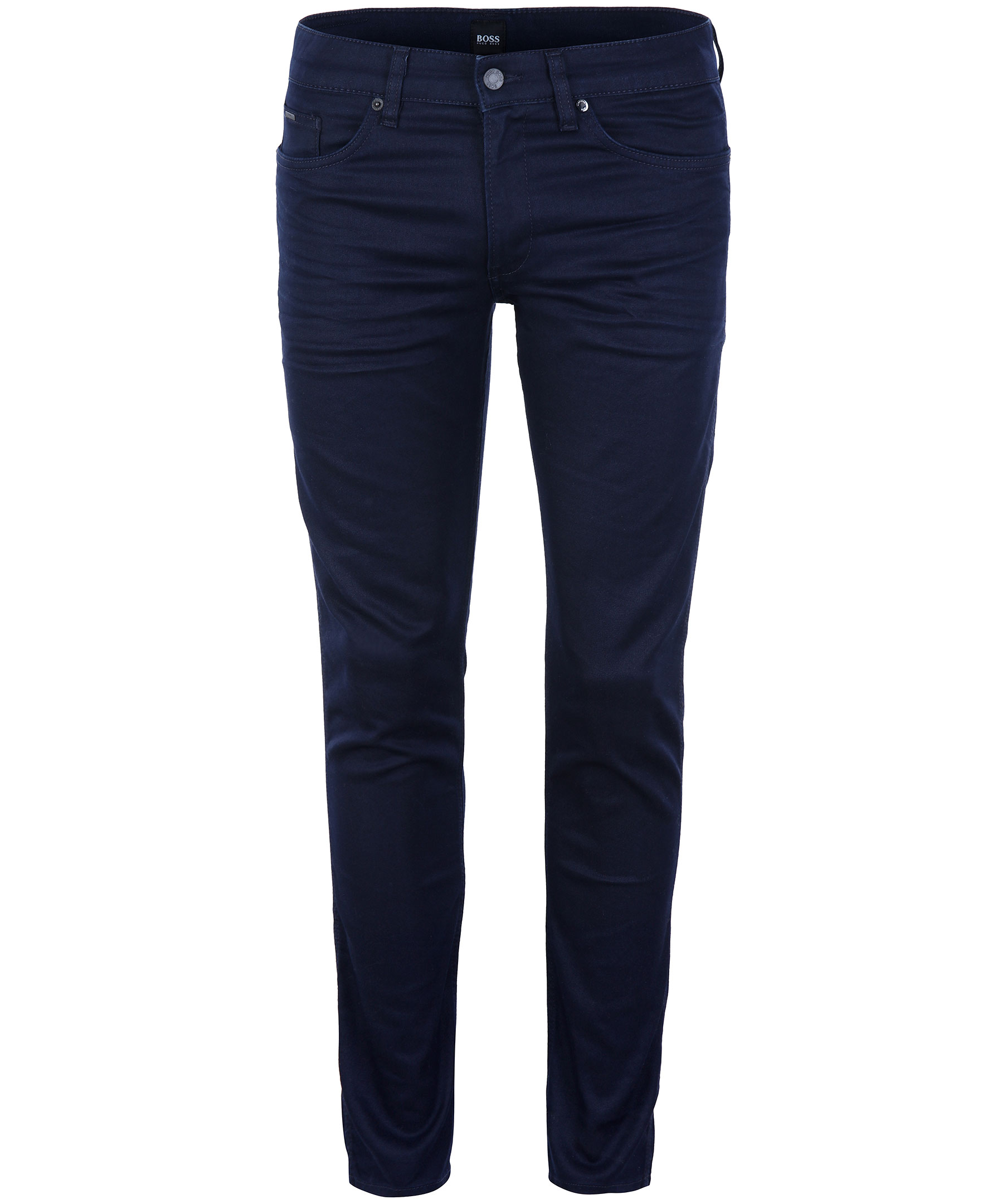 Marinblå, stretchiga jeans i extra slim fit modell från Hugo Boss. Byxorna har en mellanhög midja och smala ben. Har hällor för skärp och fem fickor.