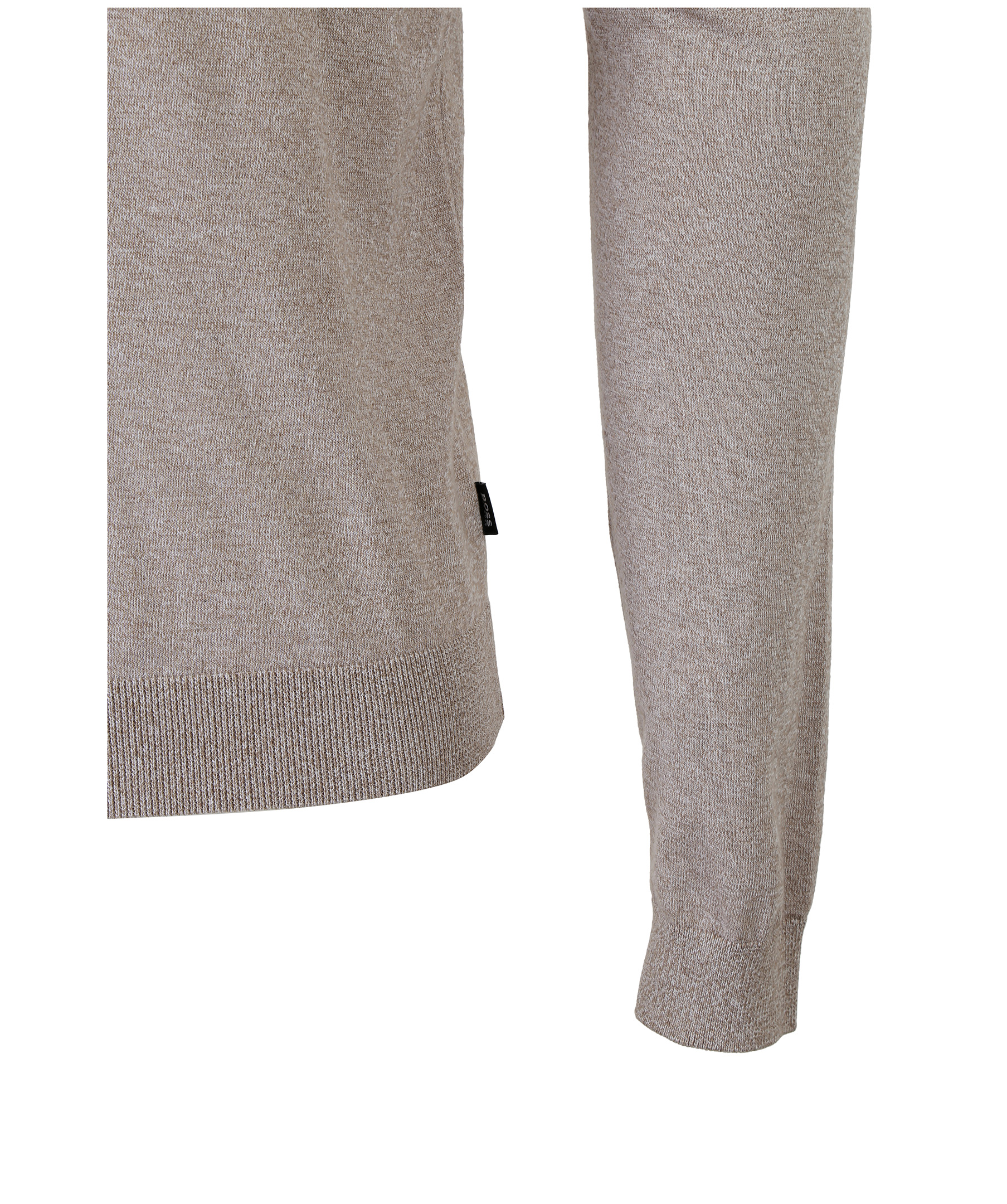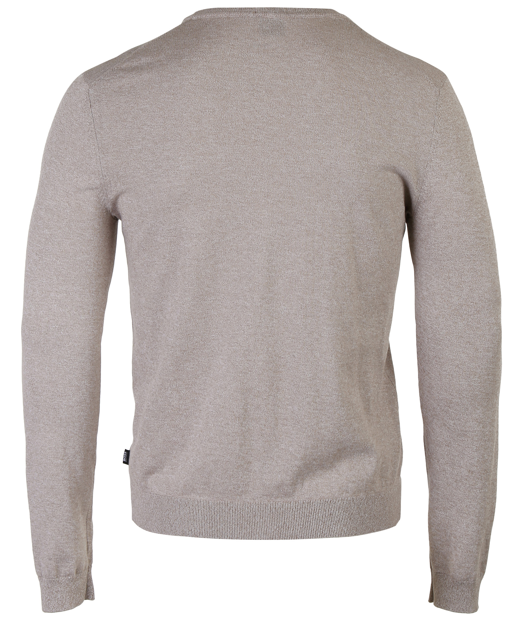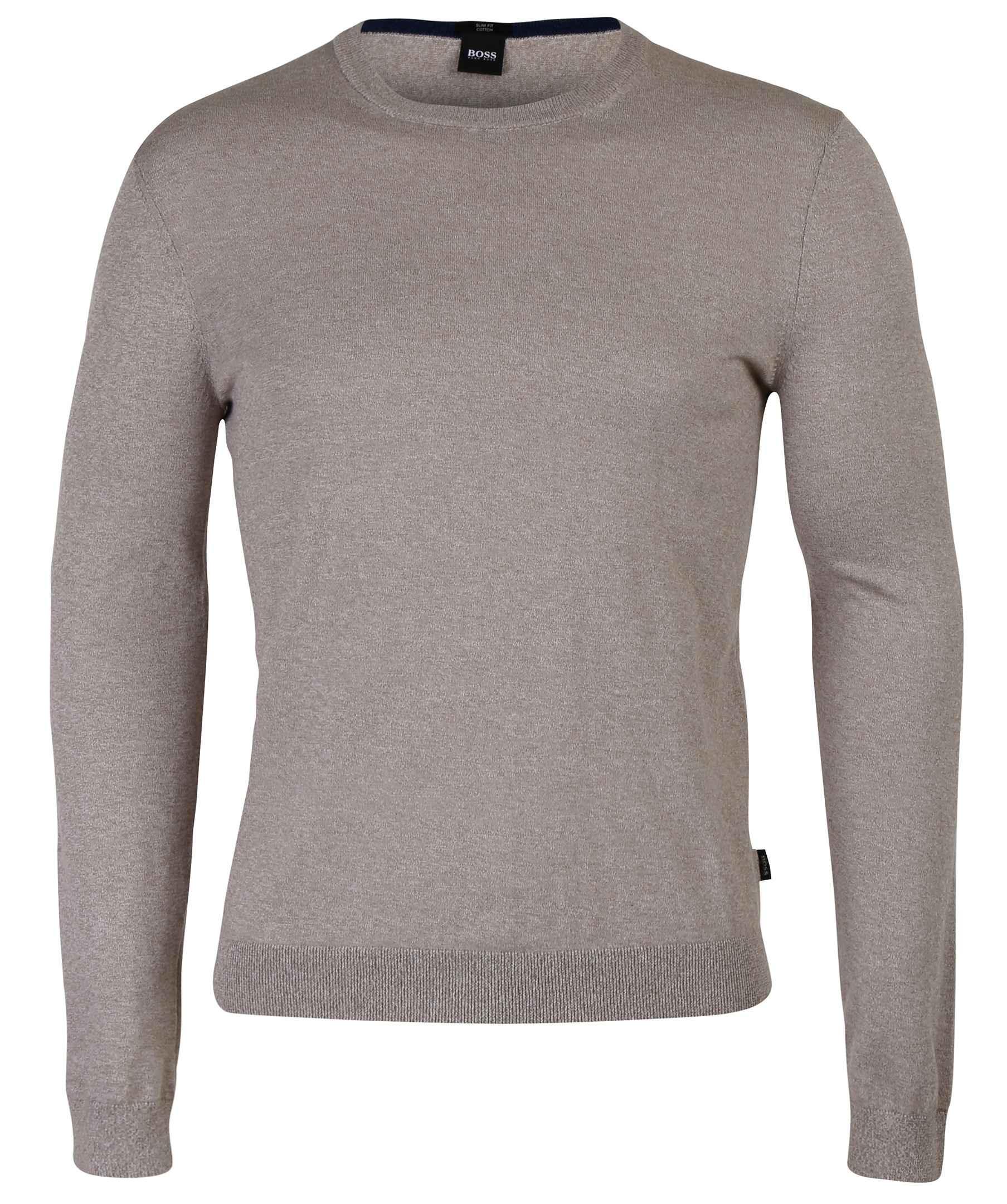 Beige finstickad pullover från Hugo Boss. Ribbstickade muddar vid halsring, ärm och plaggslut. Tillverkad i mjuk och skön bomull. Slim fit modell.