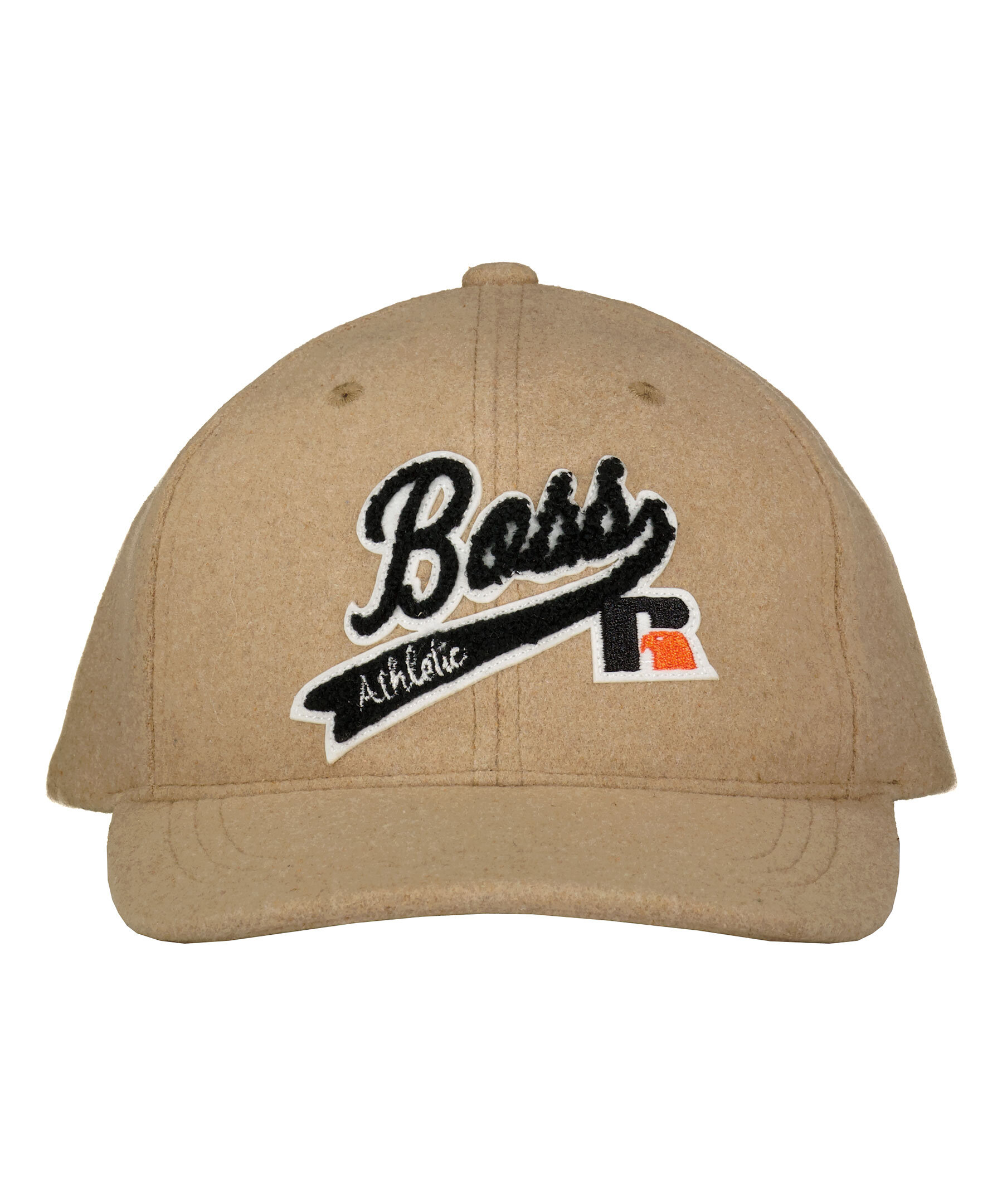 Beige keps i filtliknande material från BOSS x Russell Athletic. Tillverkad i 100% polyester. Broderad text och logotyp på framsidan och justeras med kardborreband bak.
