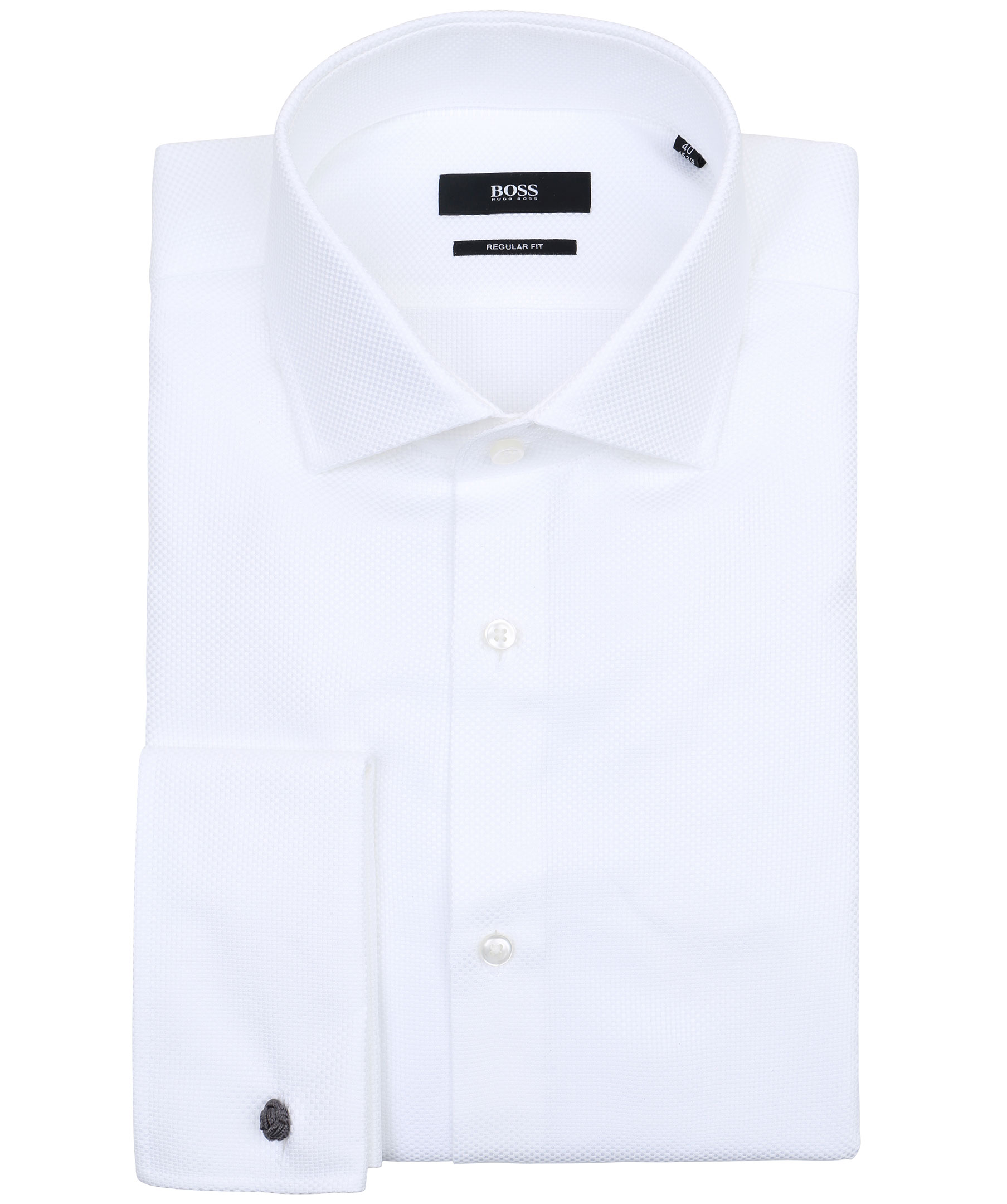 Vit skjorta från Hugo Boss i normal passform. Cutaway krage och ljusa knappar.
