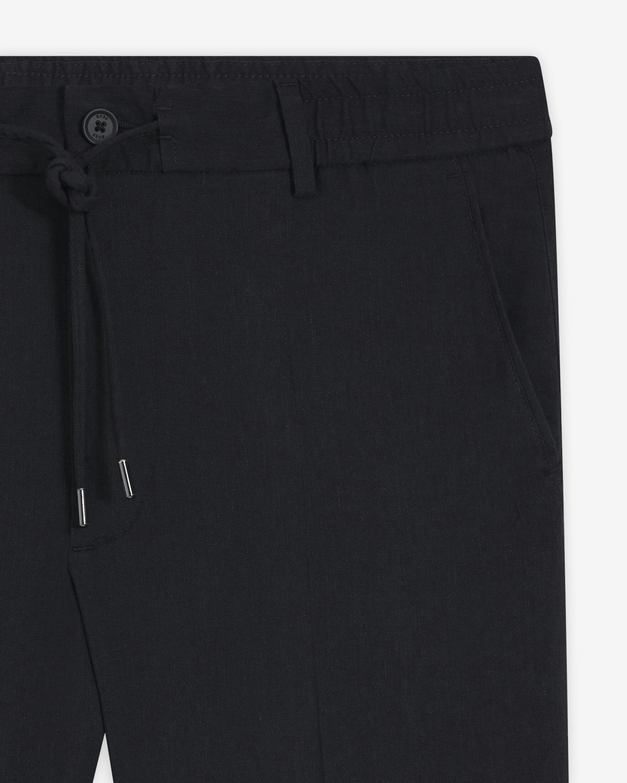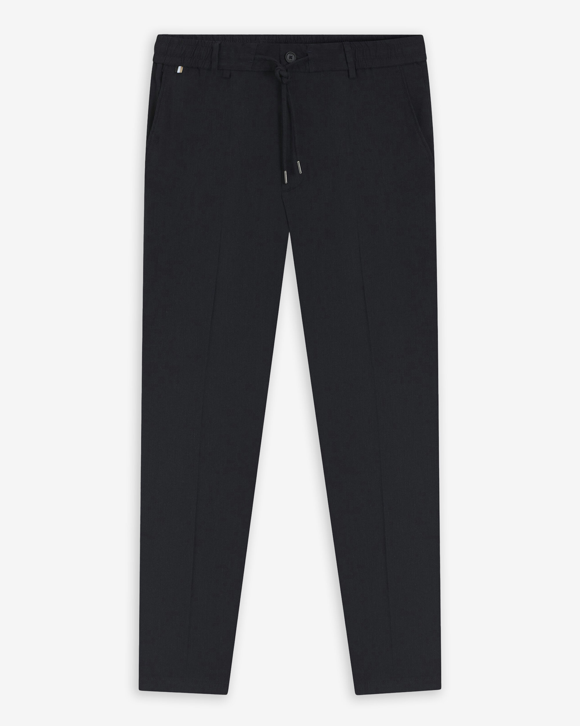 Mörkblå byxor från Boss Black, gjorda i en linneblandning. Knapp och blixtlåsstängning samt dragsko.