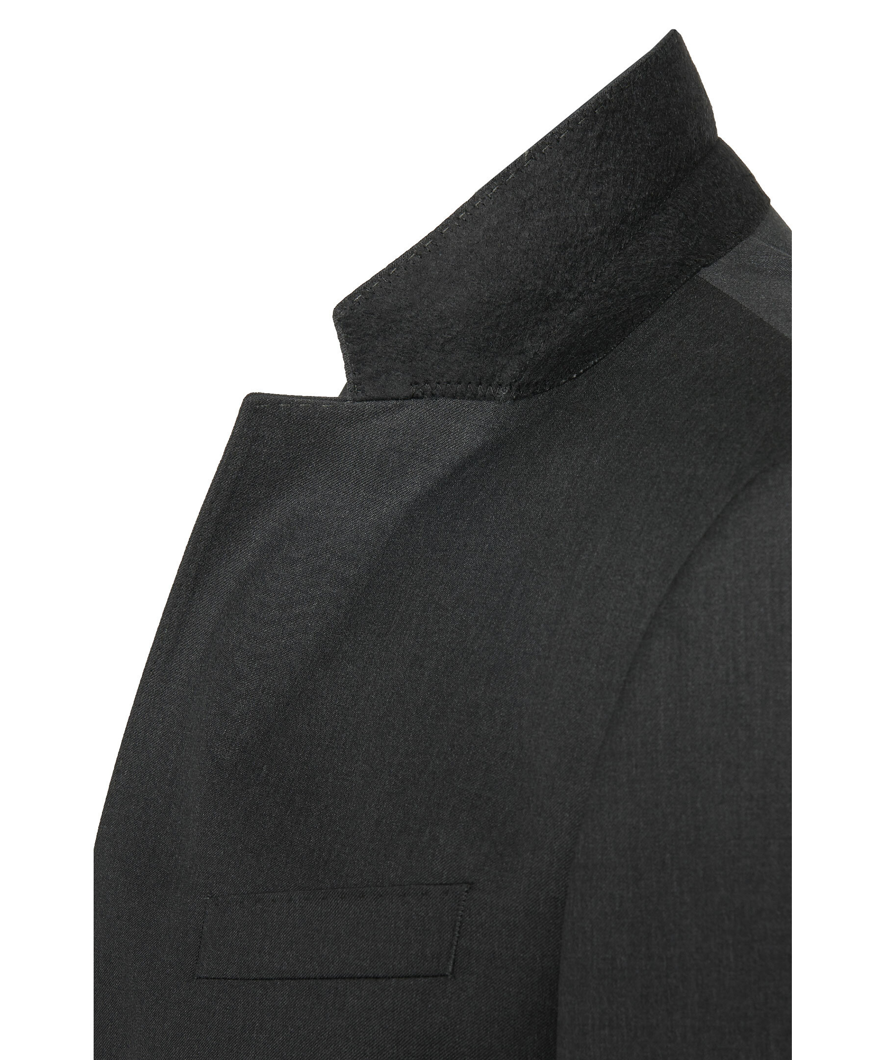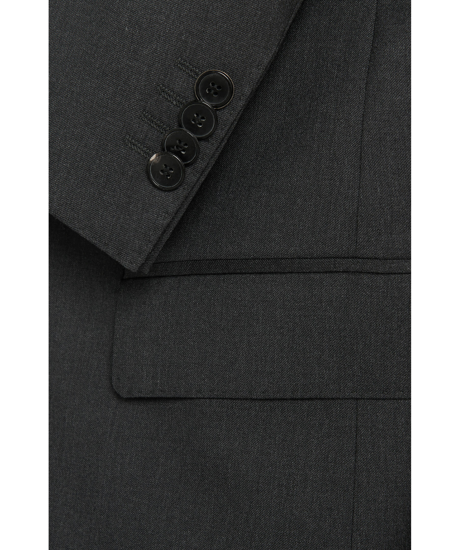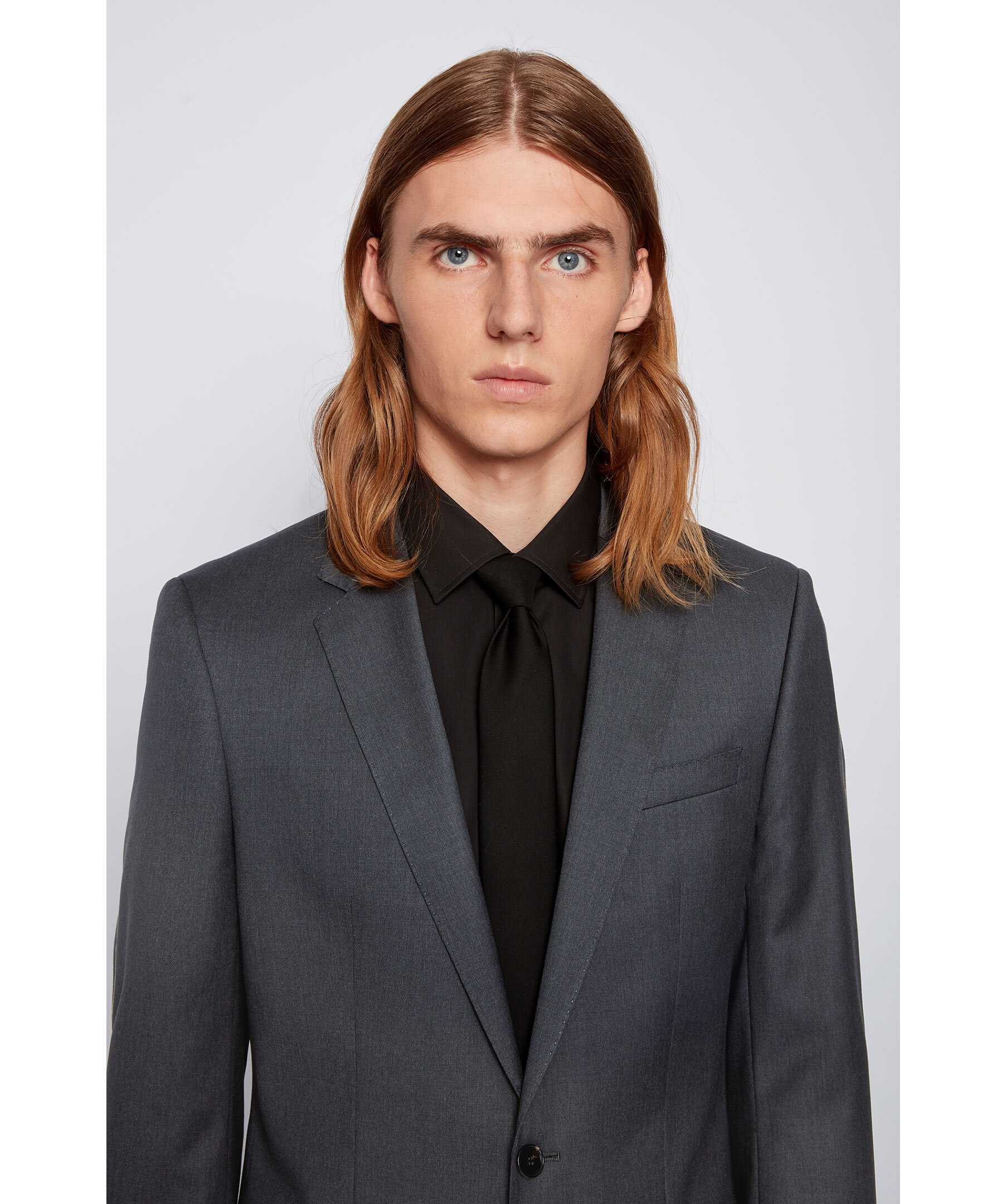 Grå kavaj från Hugo Boss. Tillverkad i 100% ull. Bröstficka, invändiga fickor, smal passform.