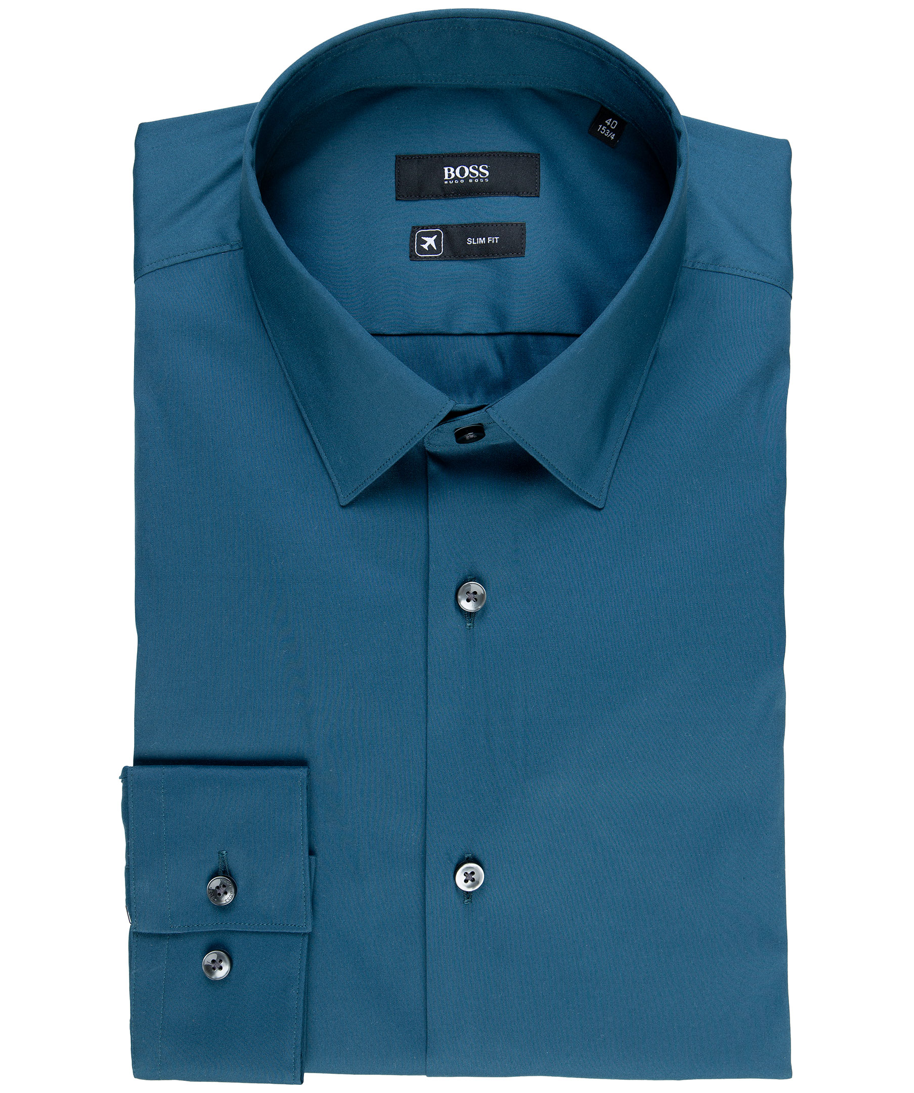 Blå skjorta från Hugo Boss i slim fit modell. Turndown krage, stretchigt material.