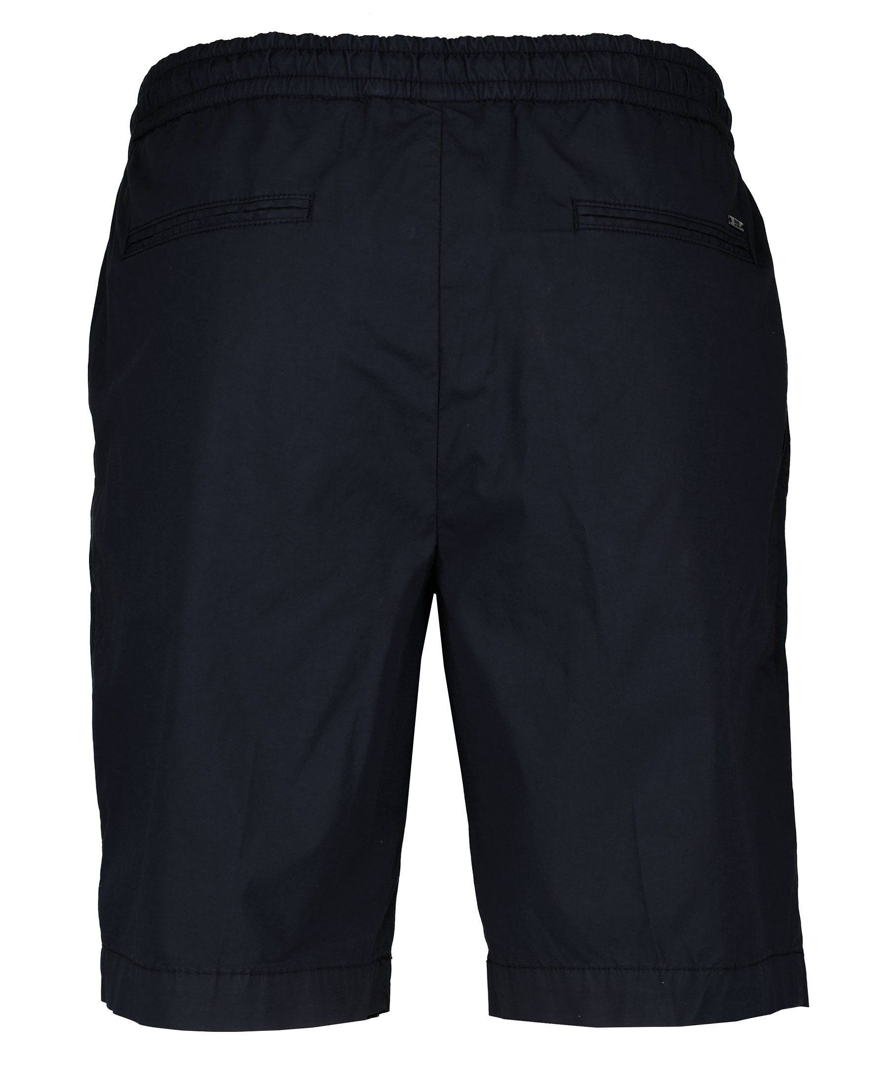 Marinblåa chinoshorts från Hugo Boss. Tillverkade i stretchig bomull. Två fickor fram, raka bakfickor och dold gylf med hake, hälla och knapp. Mudd i midjan och snörning.