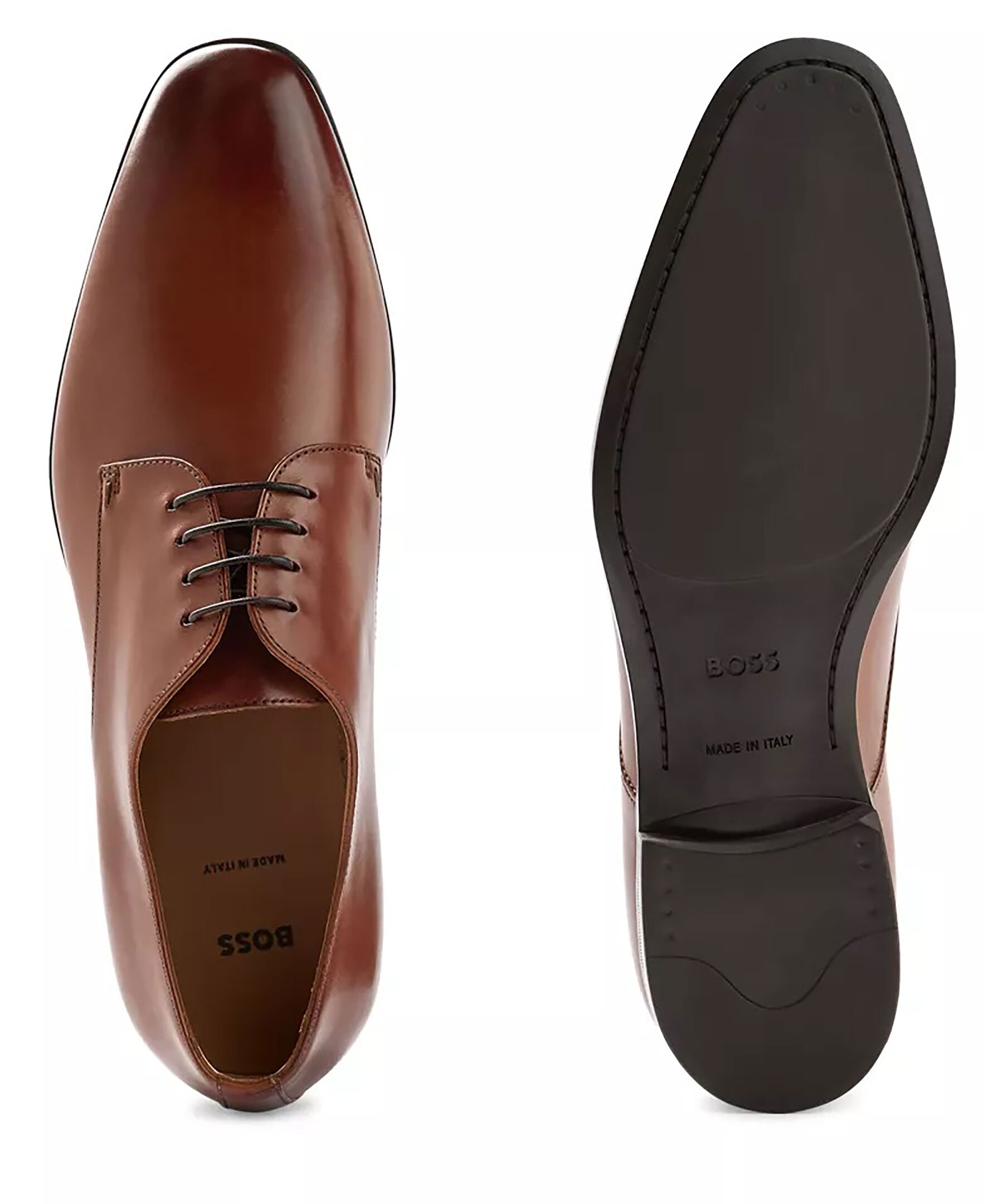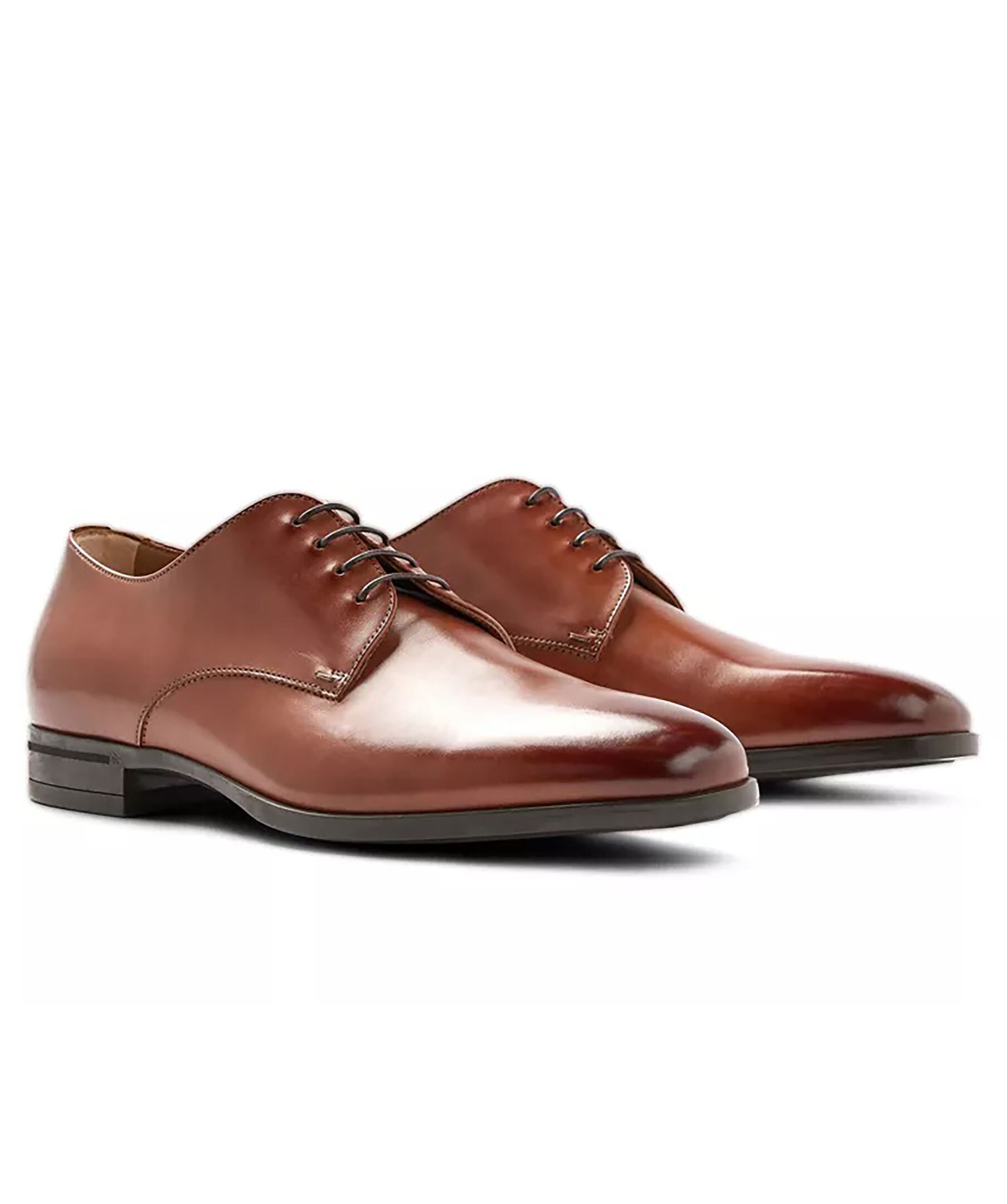 Bruna skinnskor i derbymodell från BOSS Black. Skons sula är tillverkad i gummi som ger ett bekvämt stöd. Svarta skosnören och liten klack med 2,5 cm höjd.