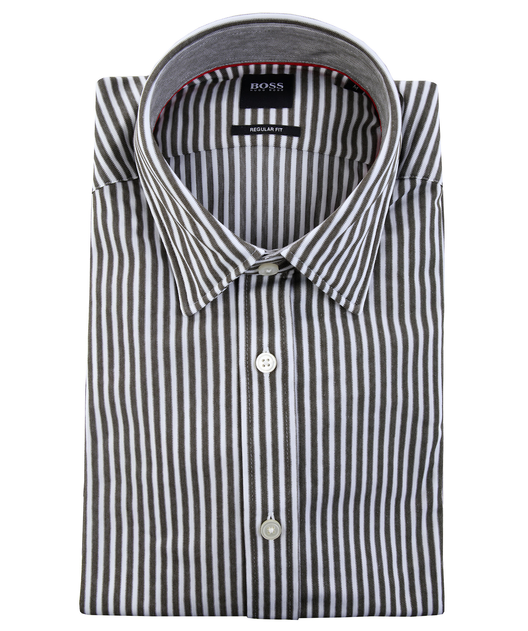 Grön/vit randig skjorta från Hugo boss i tunn och mjuk kvalitet. Klassisk krage, ljusa knappar, regular fit.