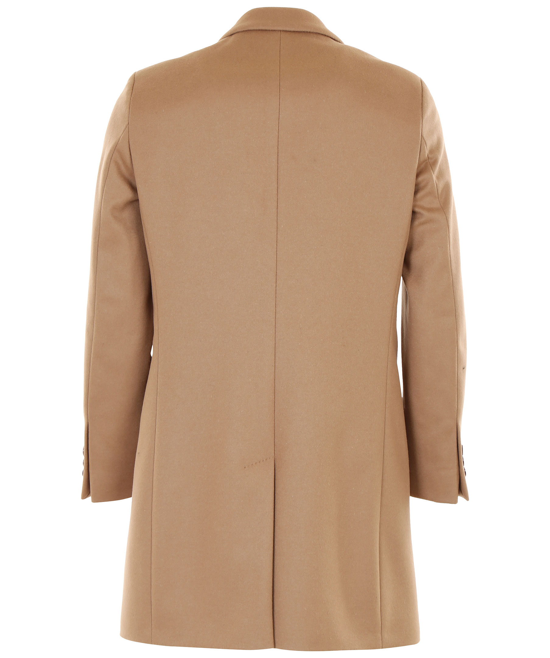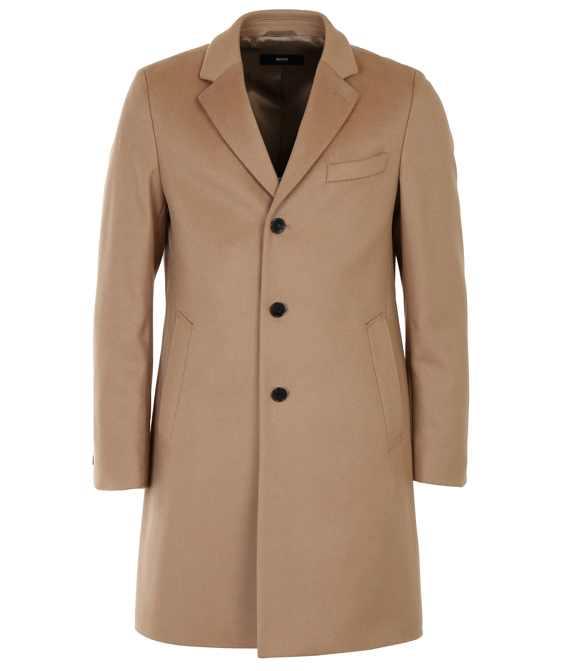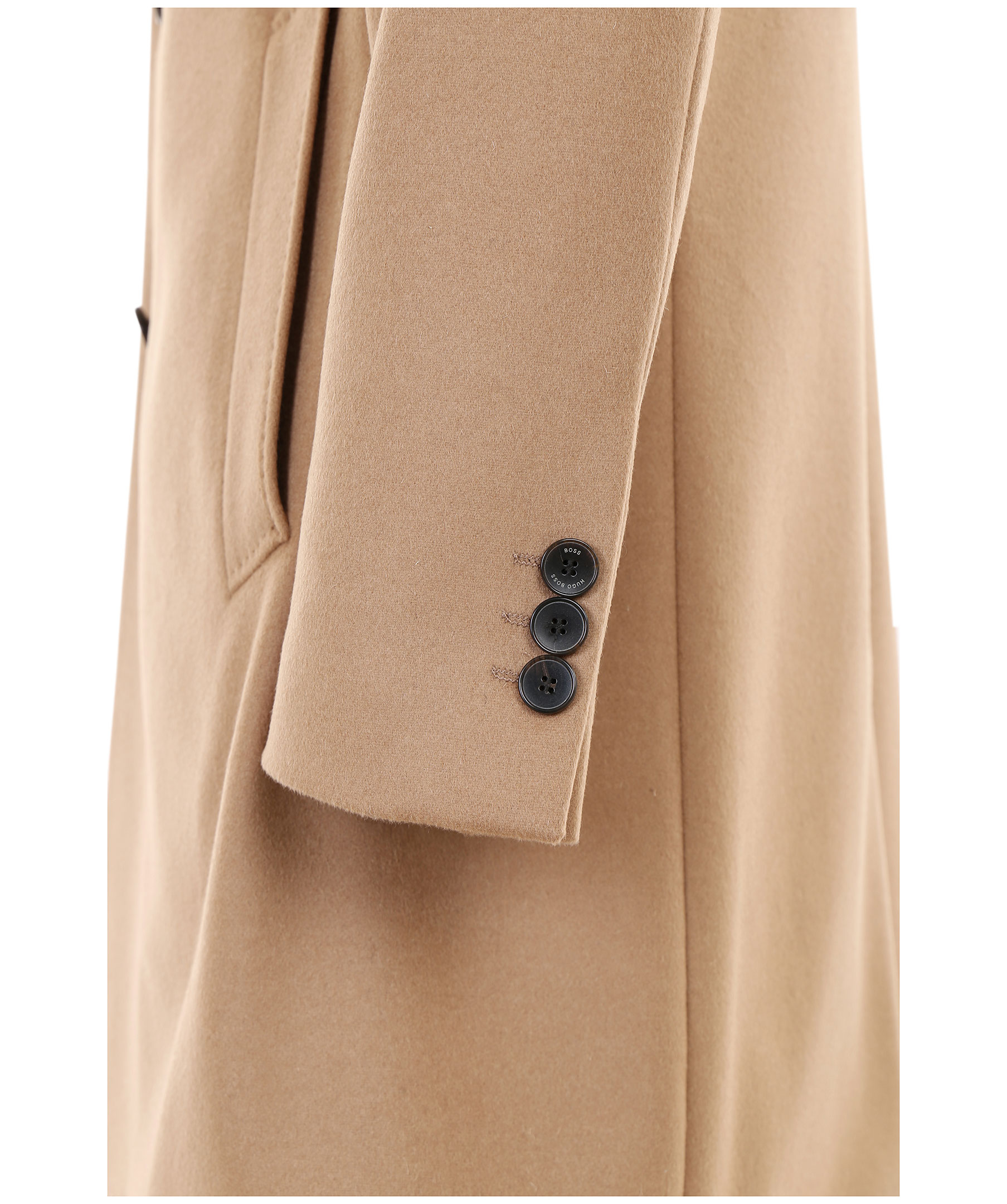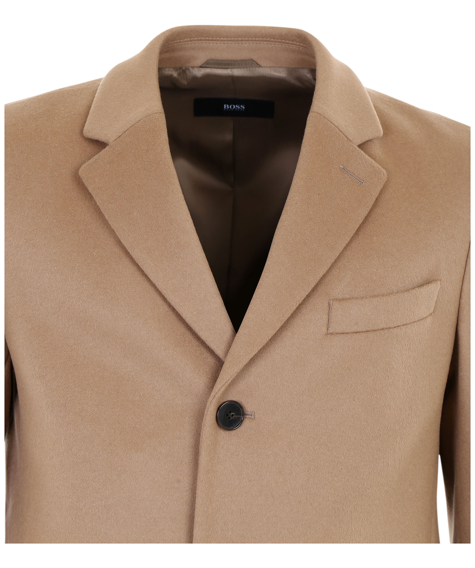 Beige rock från Hugo Boss, gjord i fin och exklusiv mix av ull och kashmir. Fickor fram, två innerfickor, fin krage och slits baktill. Stängs med knappar.