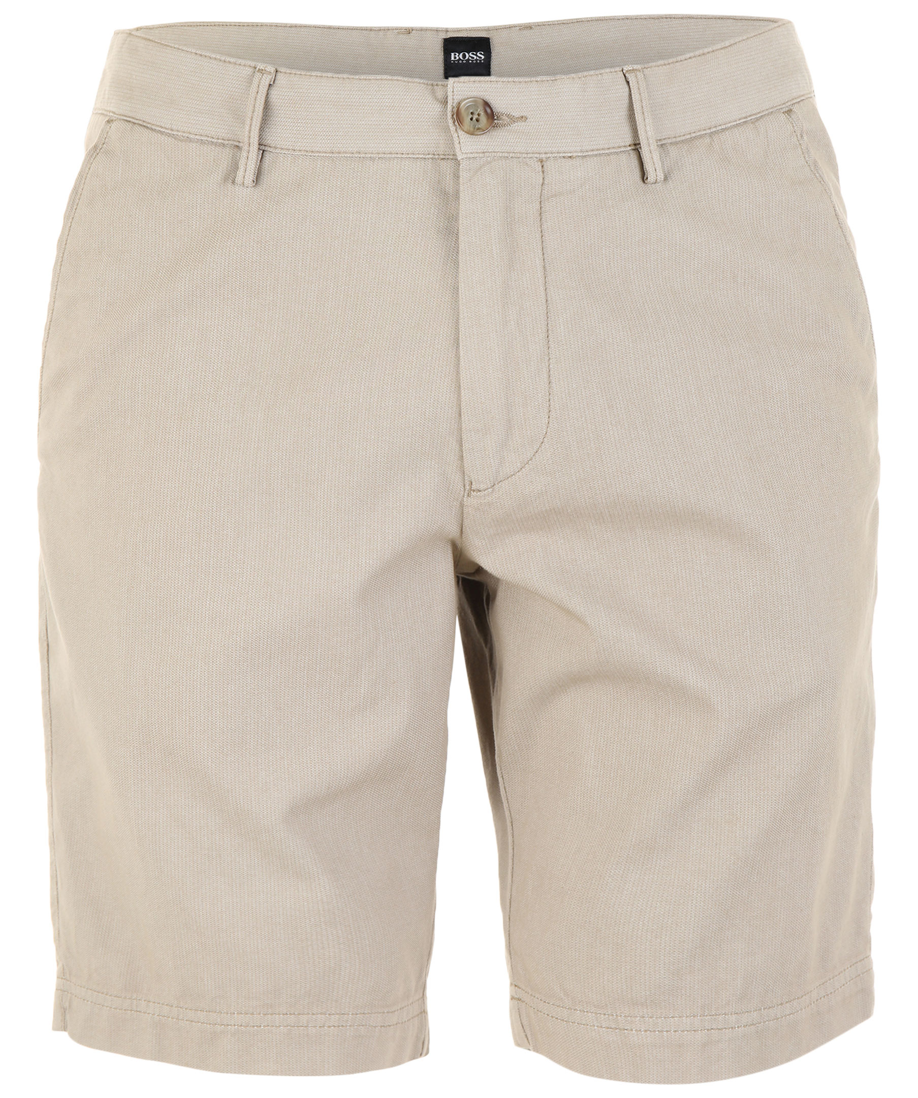 Beiga chinoshorts från Hugo Boss. Tillverkade i stretchig bomull. Två fickor fram, bakfickor med knappar, dragkedja i gylfen.
