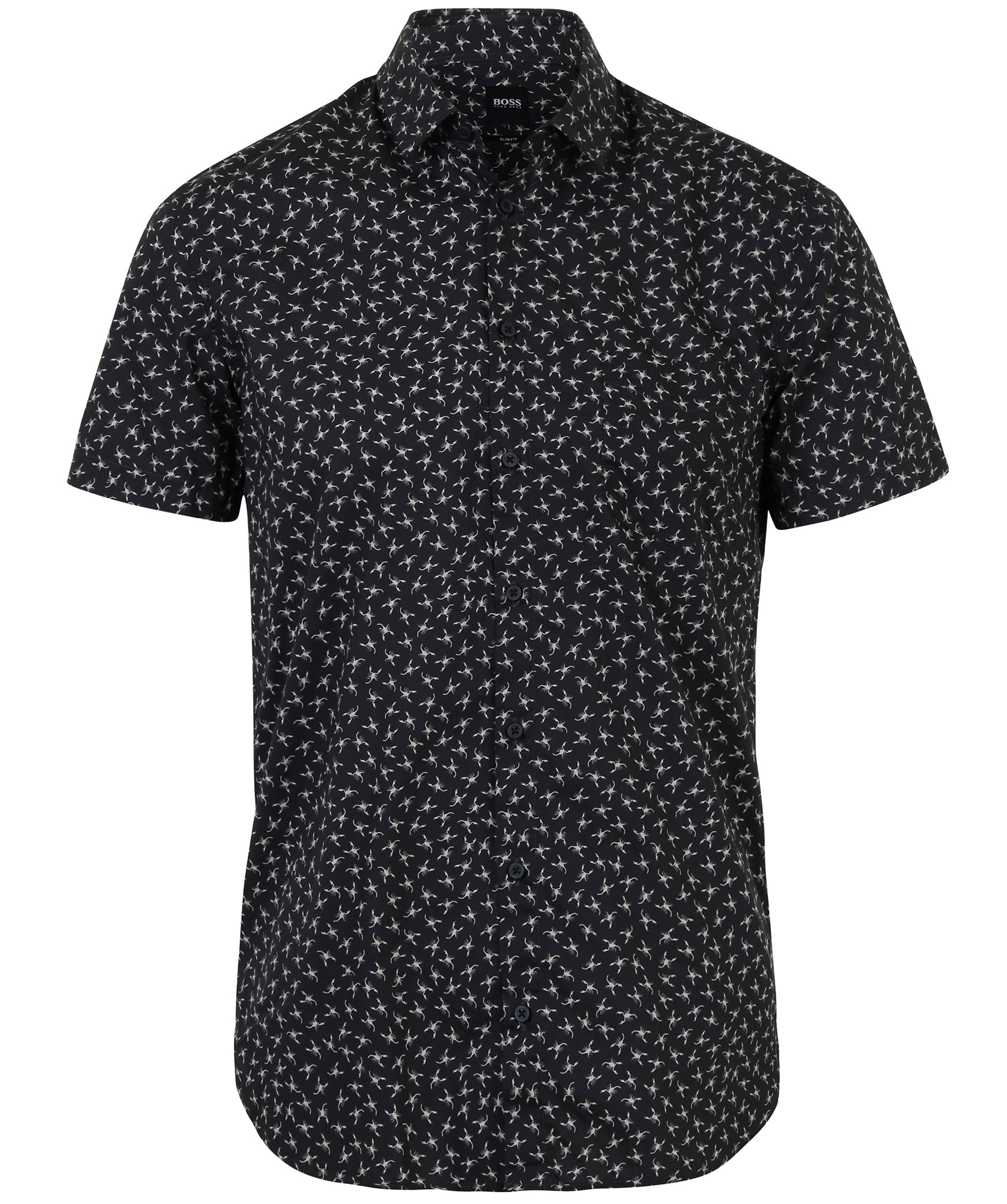 Kortärmad skjorta i härligt mönster från Hugo Boss Casual kollektion. Skjortan är i en slim-fit modell och har en klassisk krage samt en bröstficka. Passar perfekt med snygga jeans eller shorts.