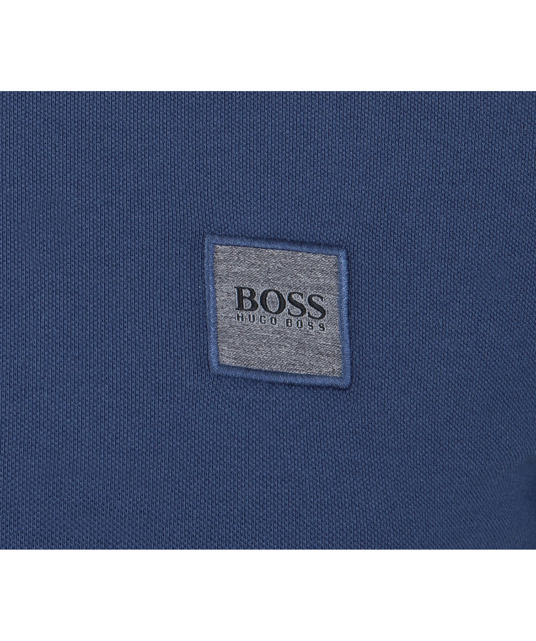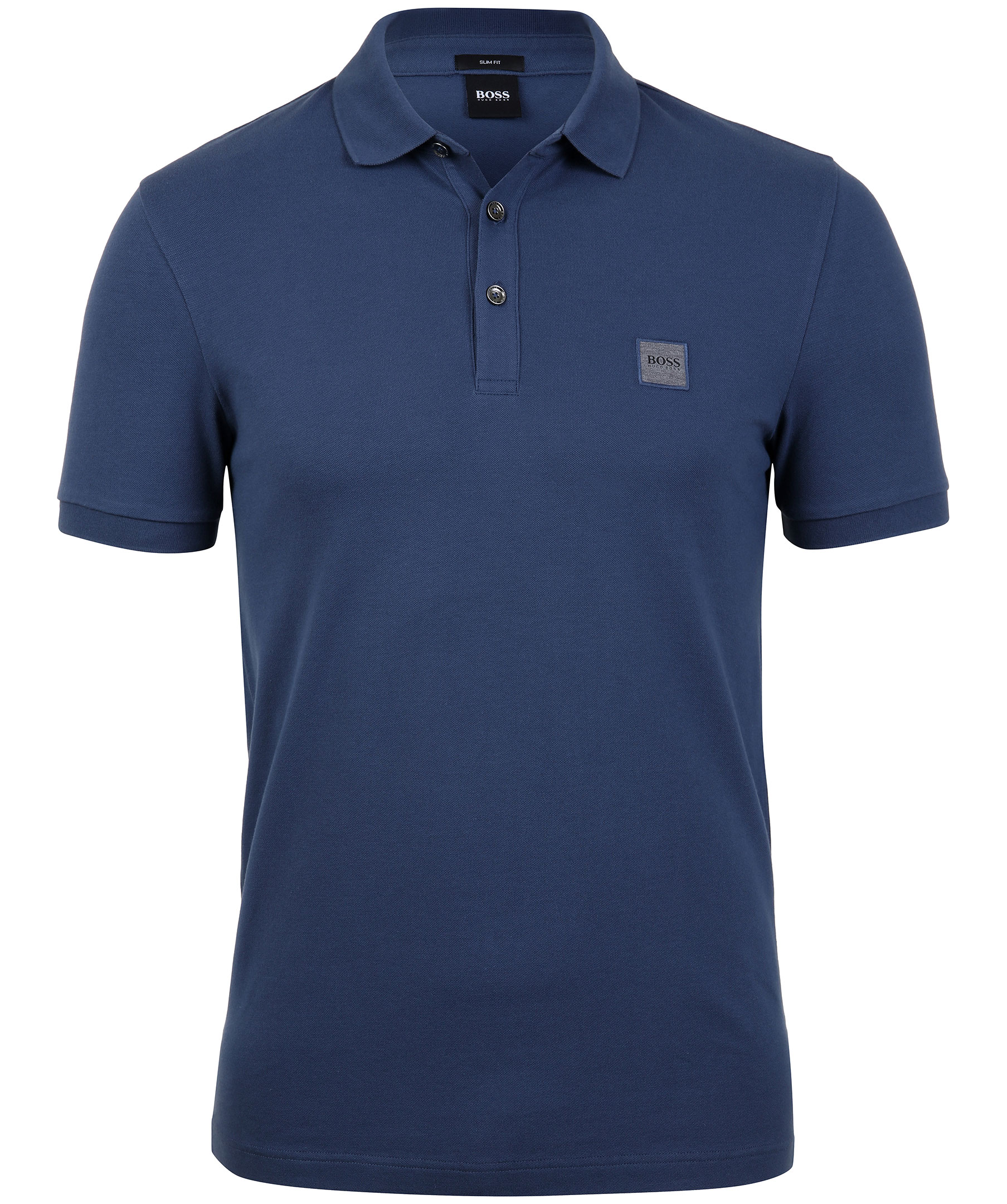 Marinblå piké från Hugo Boss. Tillverkad i en bomullsmix. Ribbstickad krage och mudd vid ärmslut. Broderad logotyp på bröstet.