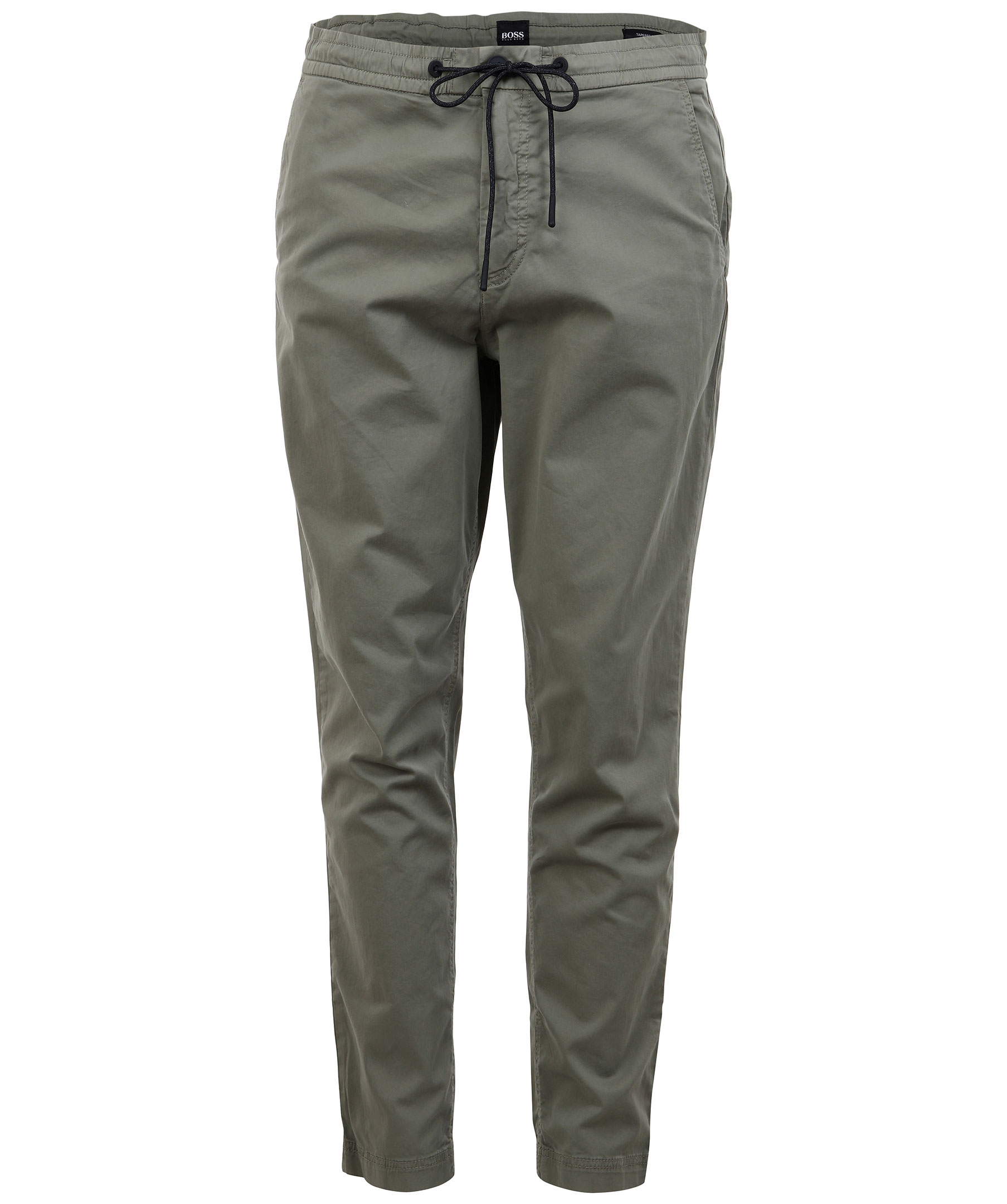 Olivgröna chinos i tapered fit från Hugo Boss. Två snedställda framfickor samt passpoalfickor bak. Dragsko med snörning i midjan samt gylf med dragkedja och knapp. Tillvcerkadde i stretchig bomull.