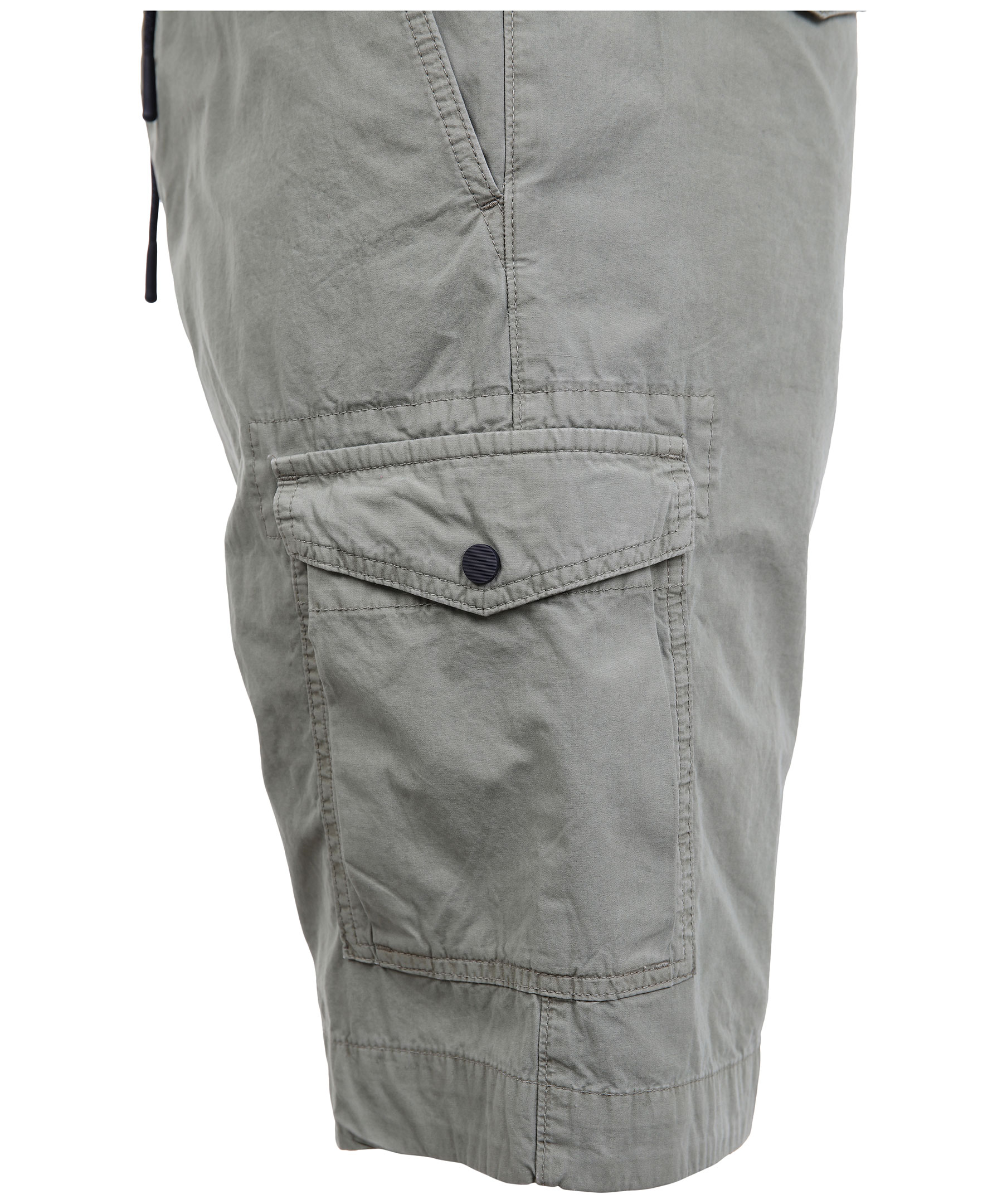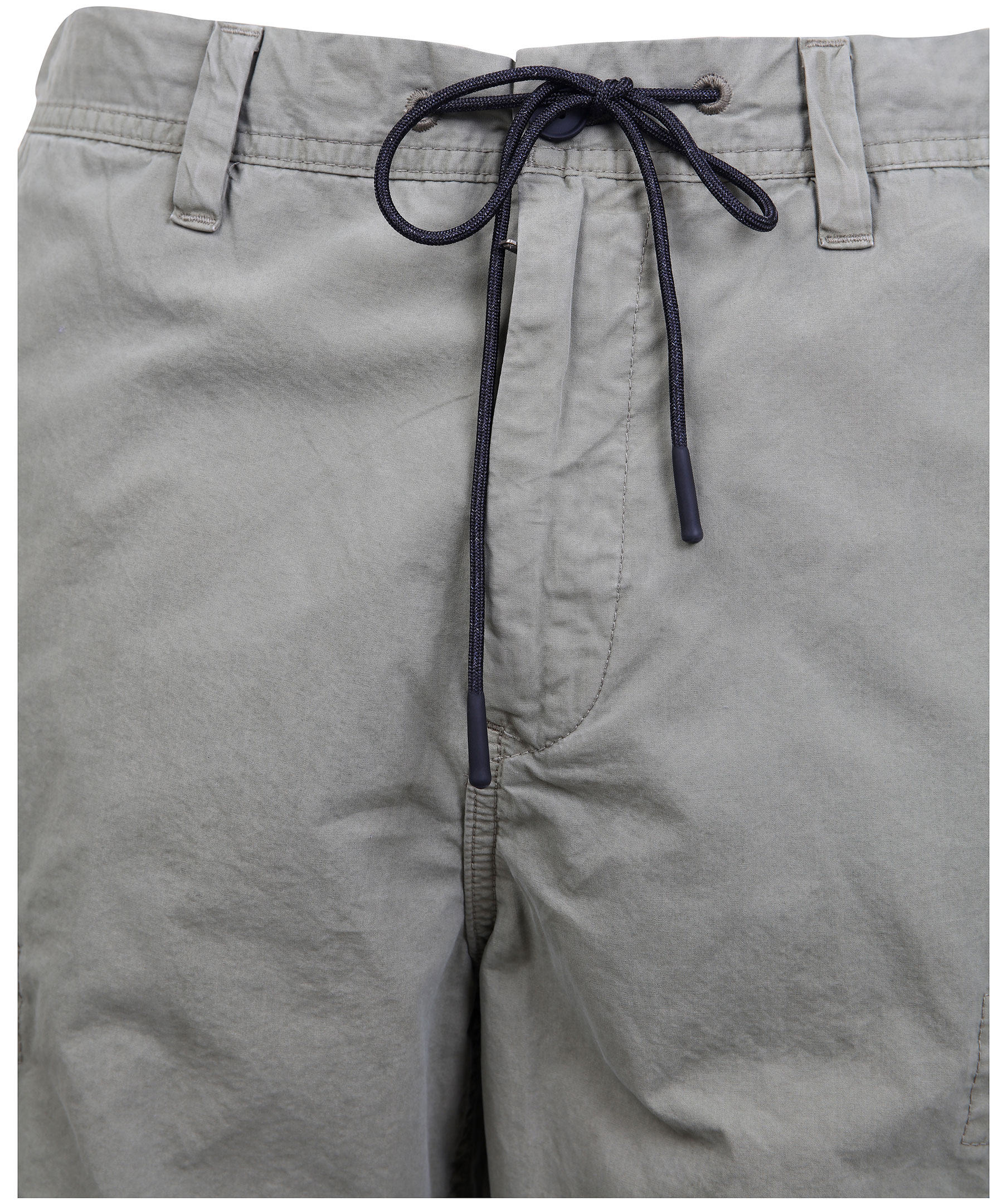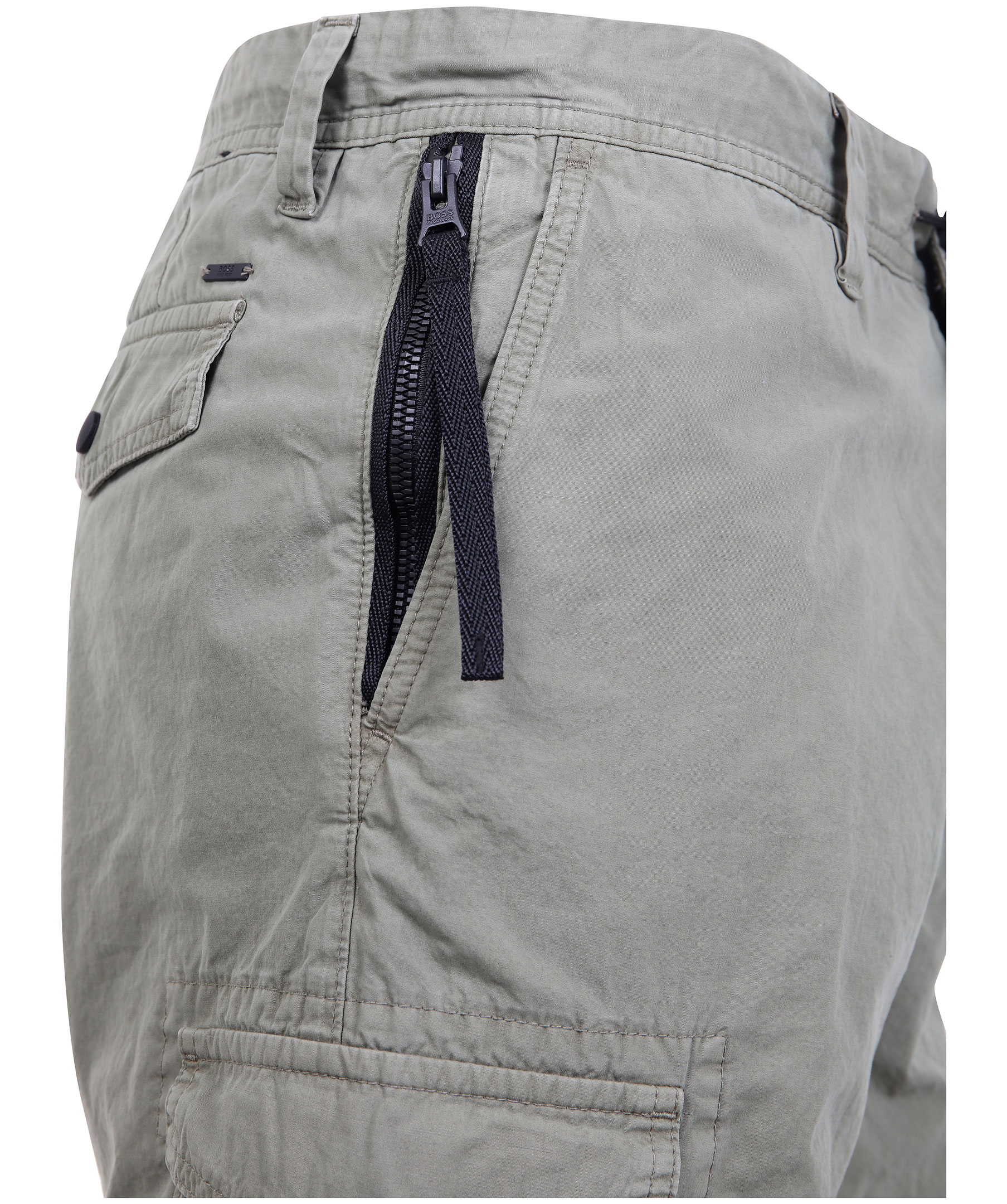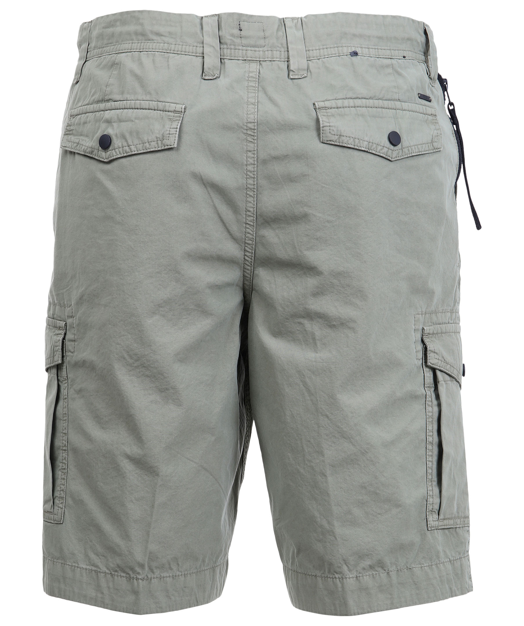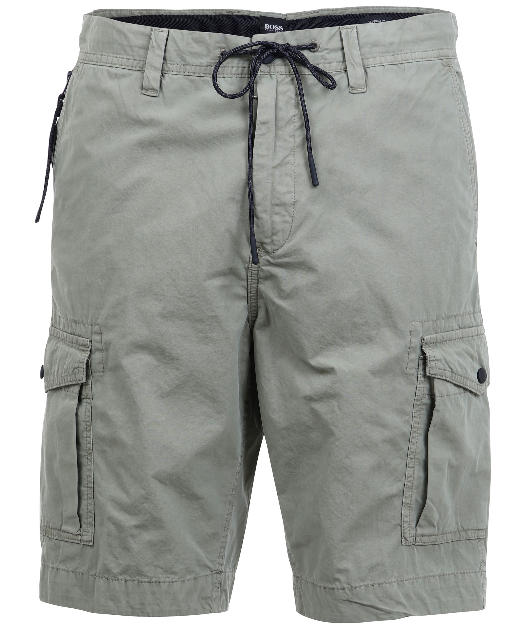 Militärgröna cargoshirts från Hugo Boss. Tillverkad i bomull med en tvättad finish. Snedställda fickor och en ficka med dragkedja fram, två fickor med tryckknappar på sidorna och två bakfickor. Dragsko med snörning i midjan och hällor för bälte. Gylf med dragkedja och knapp. Liten metallbricka med logotyp över höger bakficka.