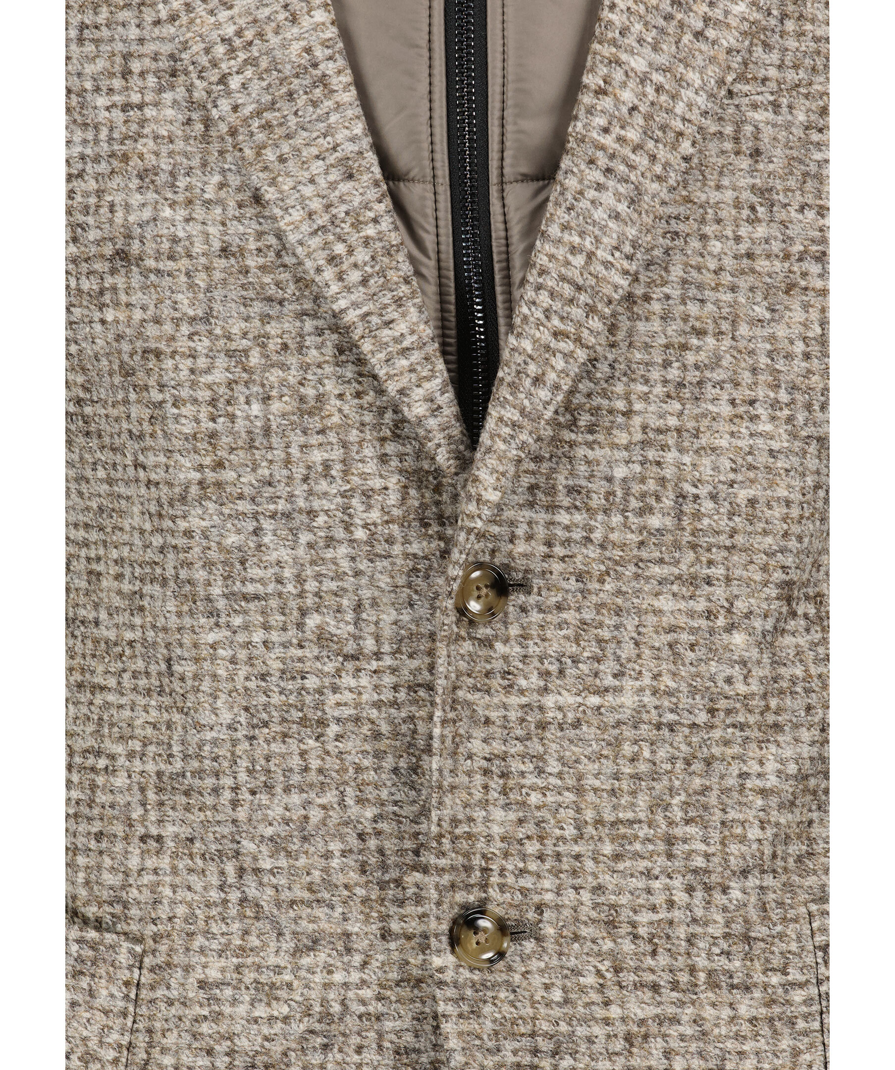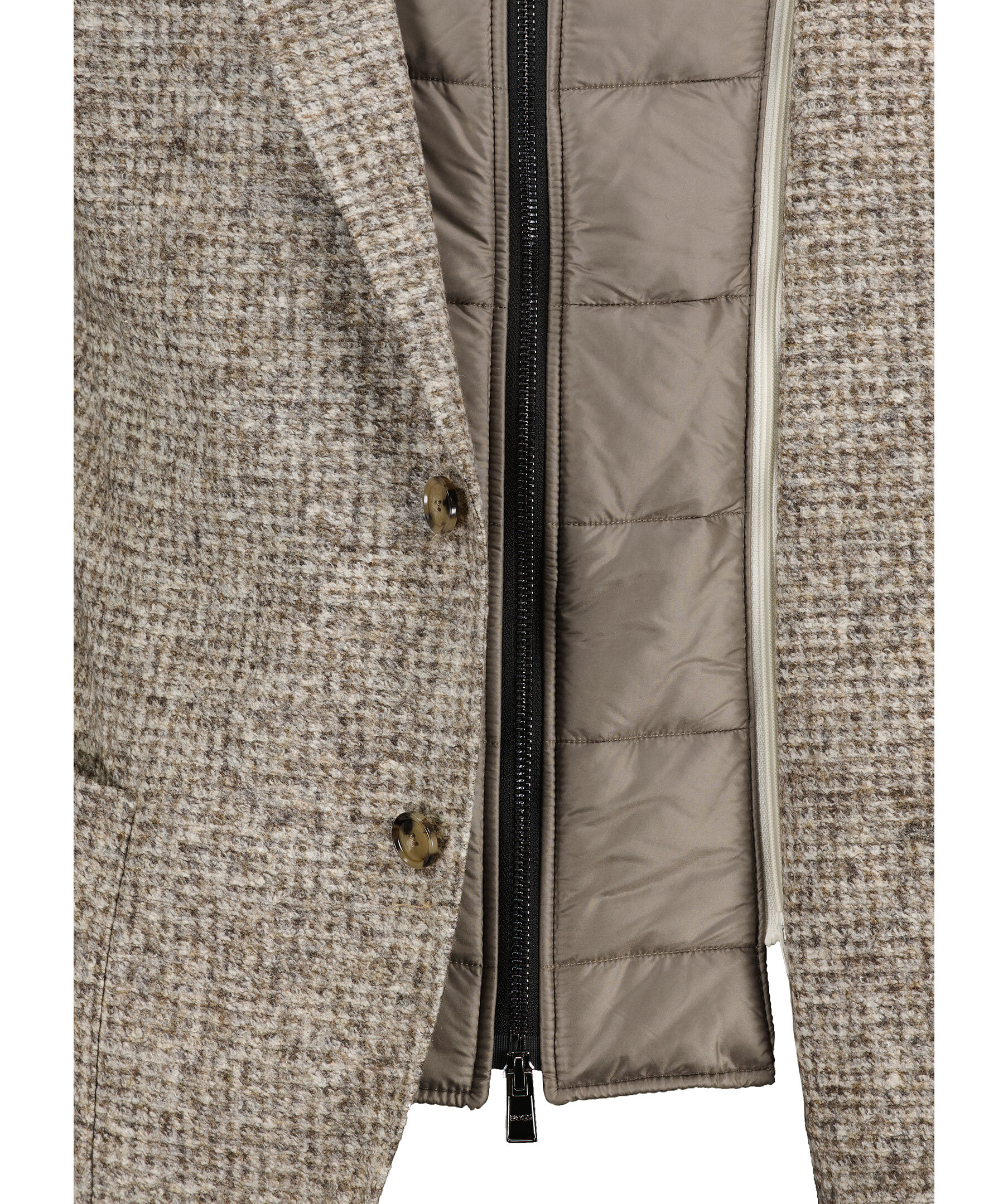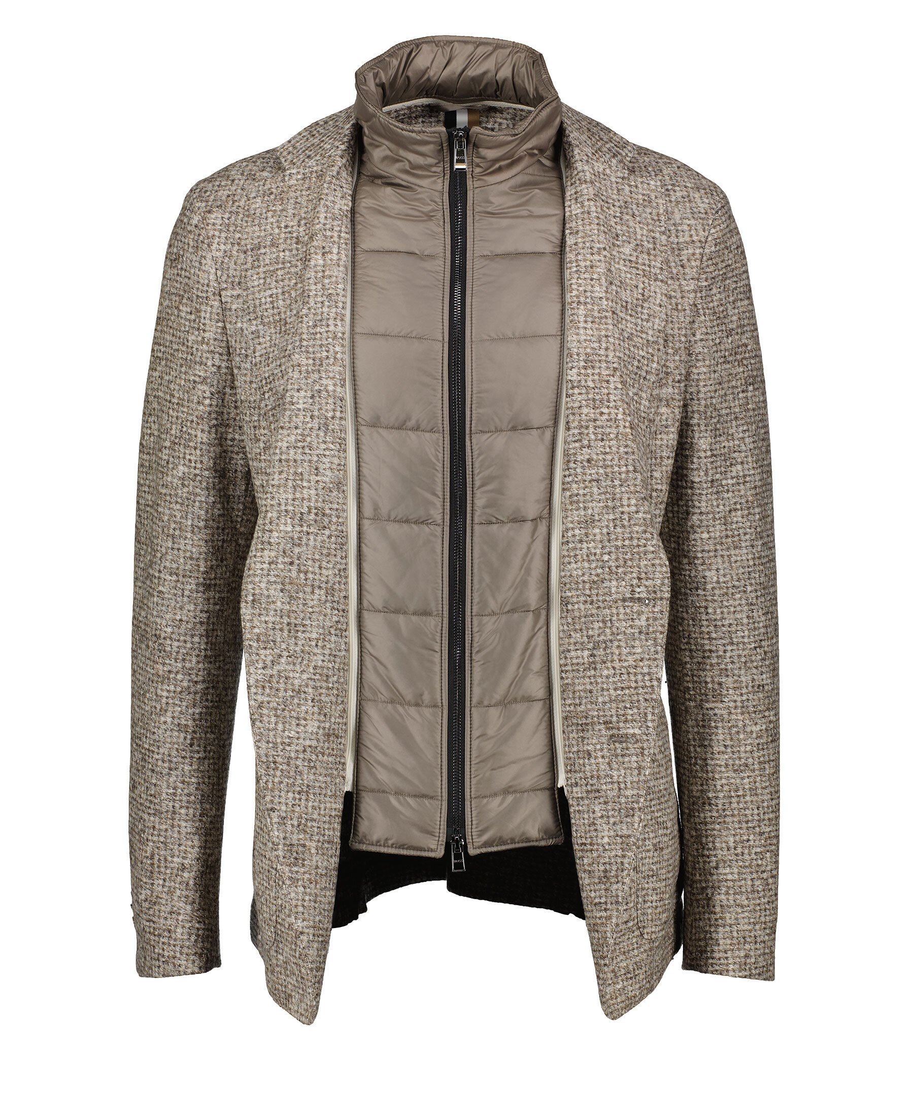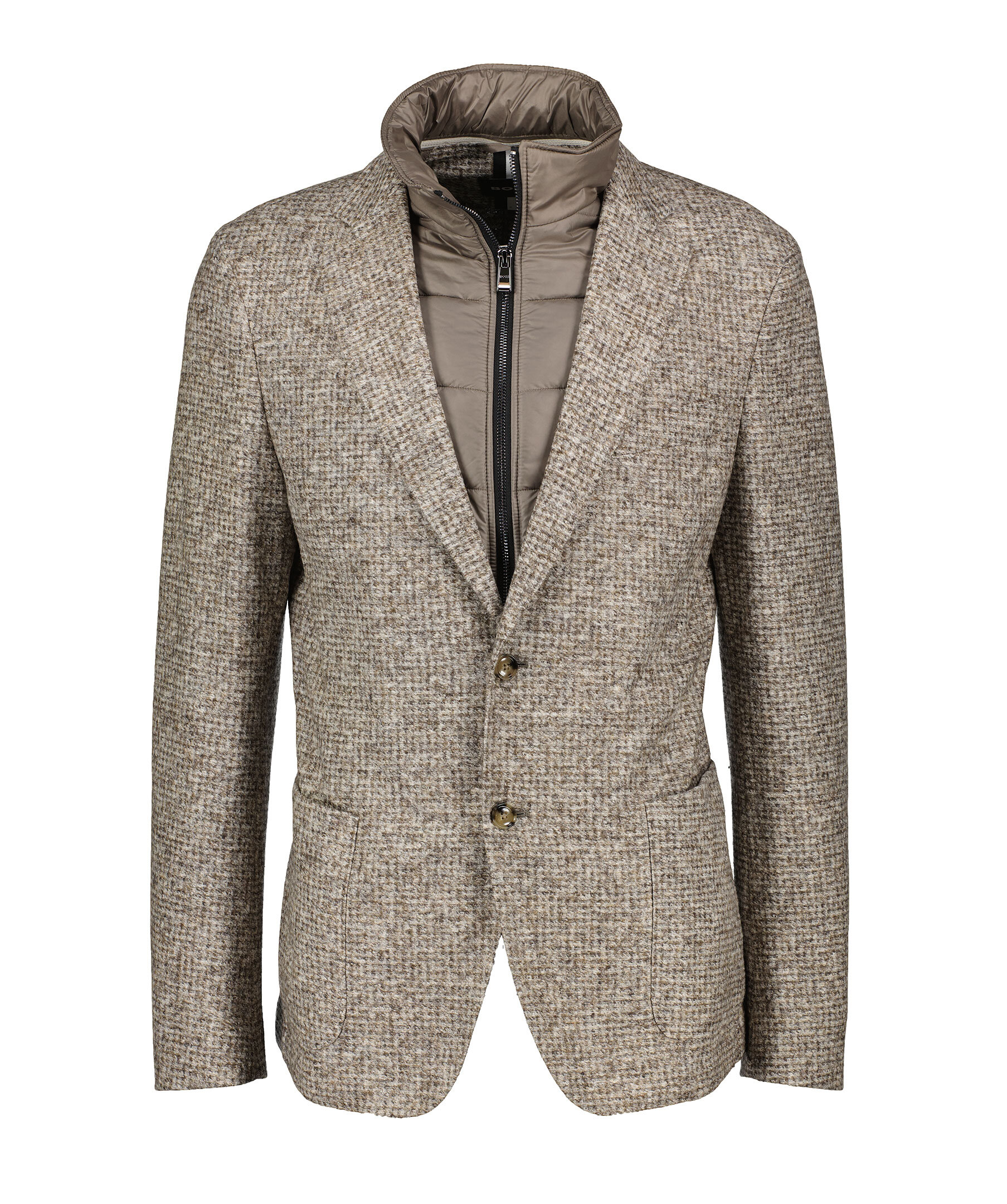 Beige kavaj från BOSS Black. En raffinerad kavaj med ståkrage och dragkedja på insidan. Stängs med knappar framtill och har två påsydda fickor. Kavajen är tillverkad i en ull- och polyesterblandning.